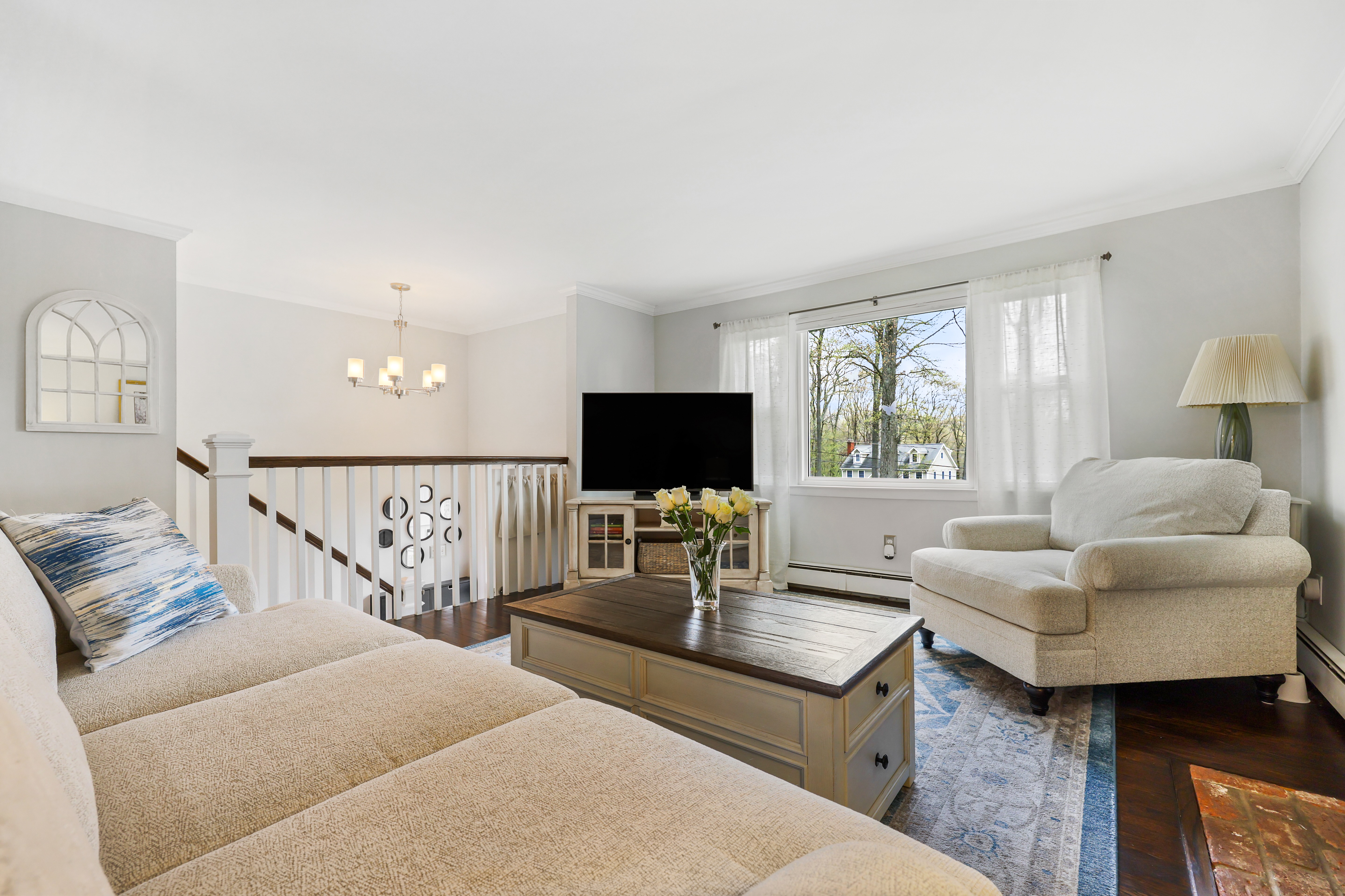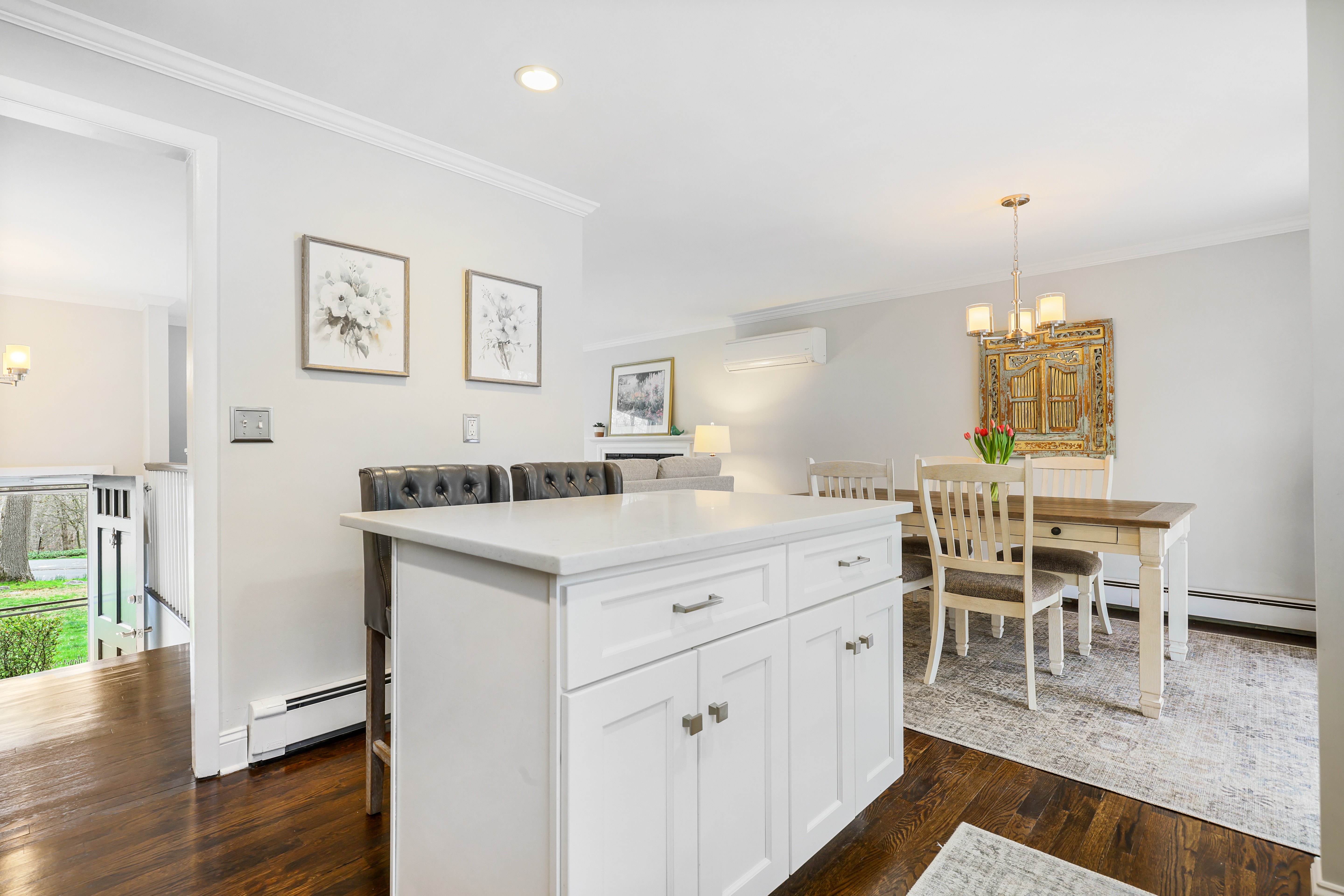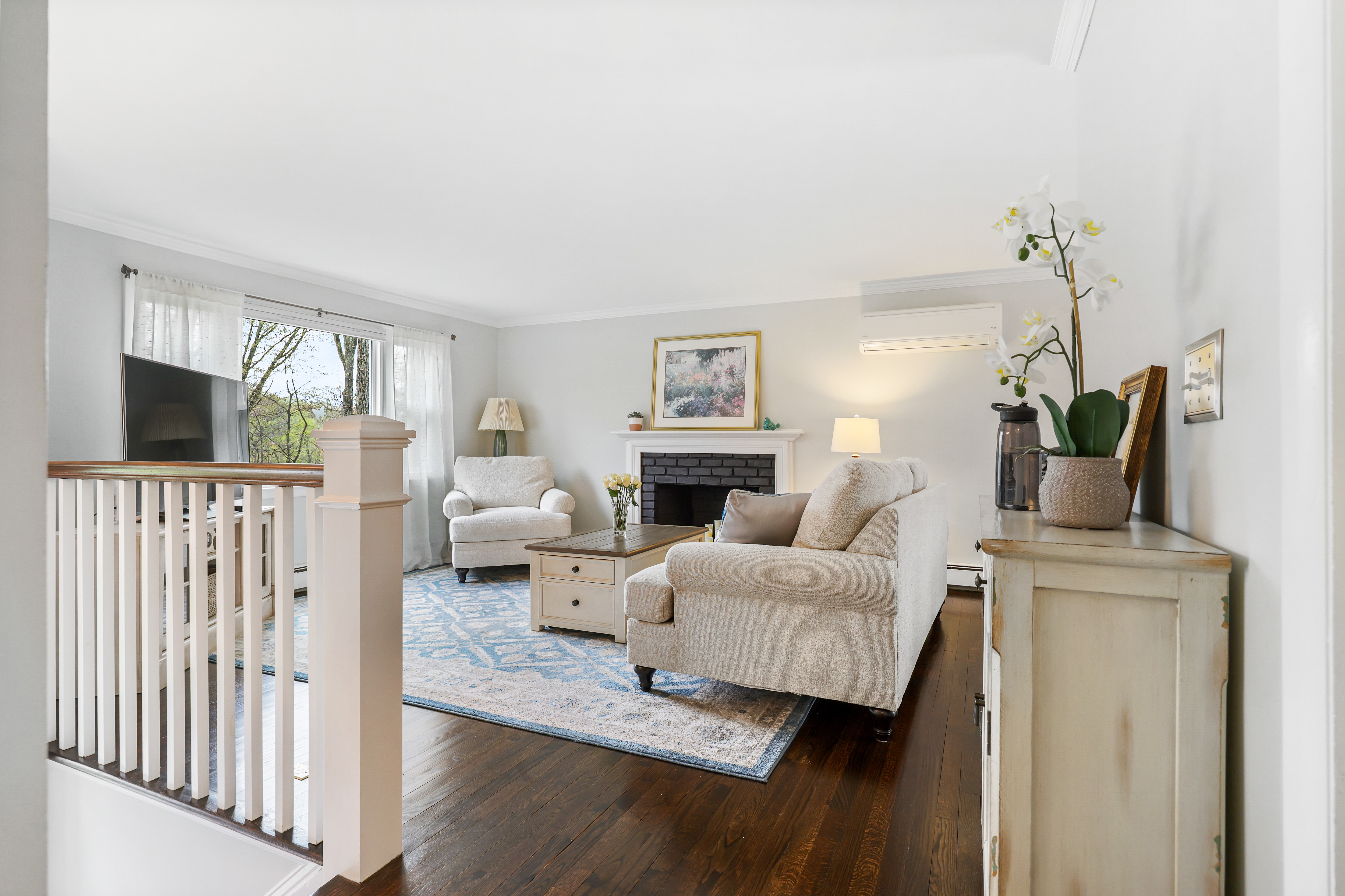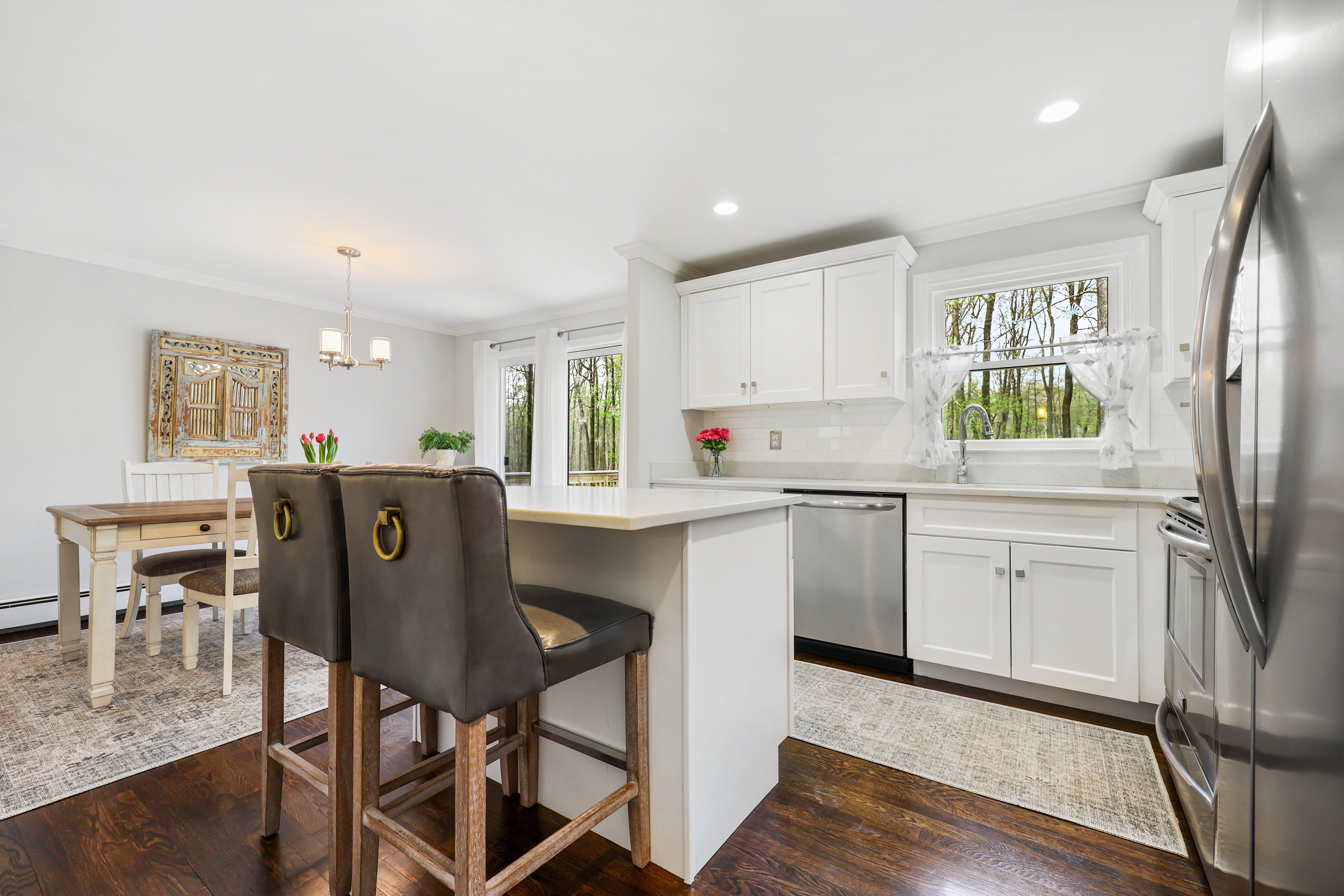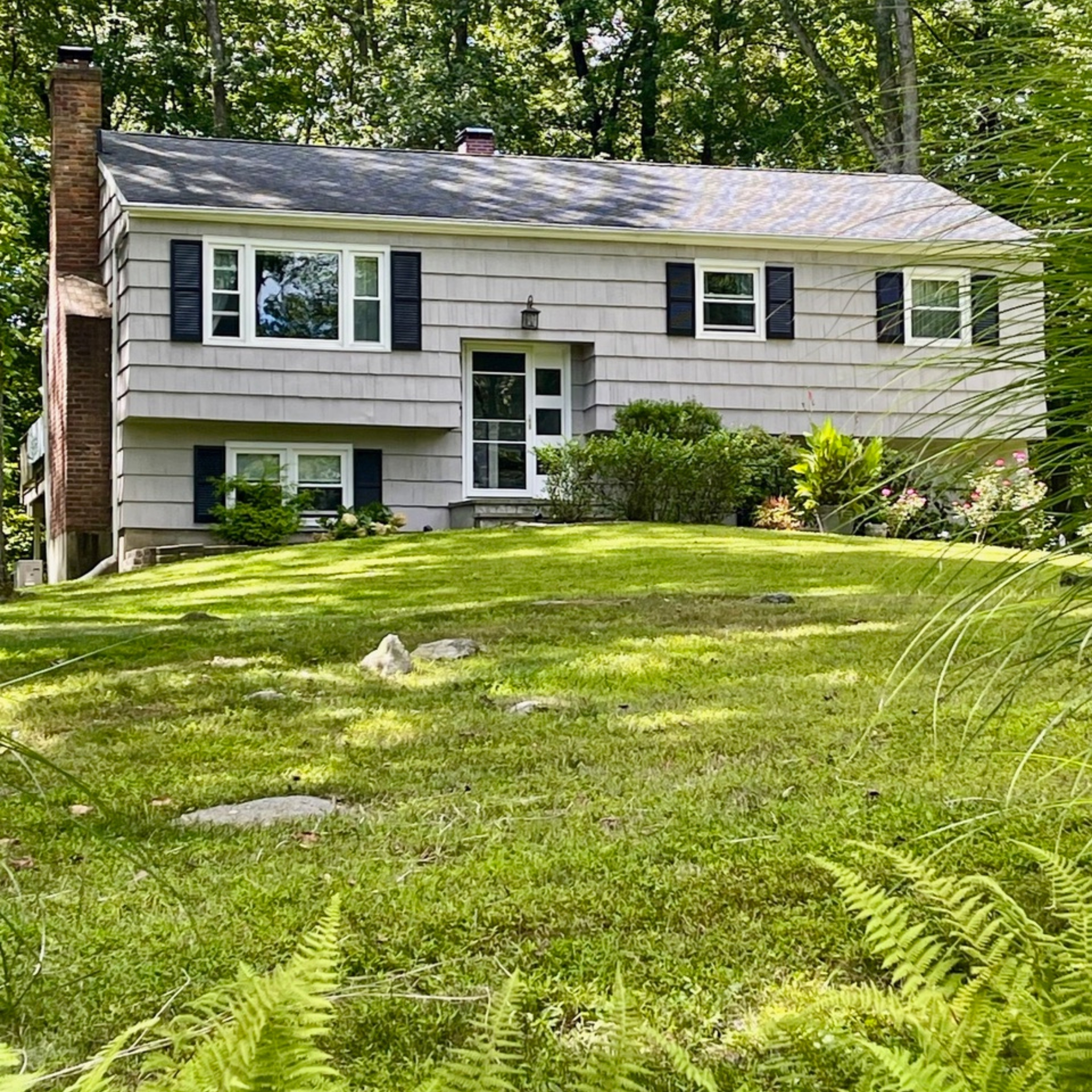 A commuter's dream! Located on a peaceful cul-de-sac street directly on the NY/South Salem border for easy access to the Katonah train, New Canaan, Stamford, etc., and it's just minutes to downtown Ridgefield! Fully updated in 2017 by Sturges Bros., this home has hardwood floors, freshly painted walls inside, a stunning white kitchen with an island. An open floor plan on the main level is great for entertaining! Step outside onto the deck and enjoy a huge yard with beautiful plantings, trees, and plenty of space for activities and more gardening. The three bedrooms are well-sized and share a spacious bathroom with tub. Downstairs, the family room has a bathroom with a shower, laundry, and offers room to work out, watch TV, play games - the possibilities are endless! The immaculate garage offers lots of extra storage and plenty of room to park your cars. Come and enjoy easy living in this fantastic home! It won't last!