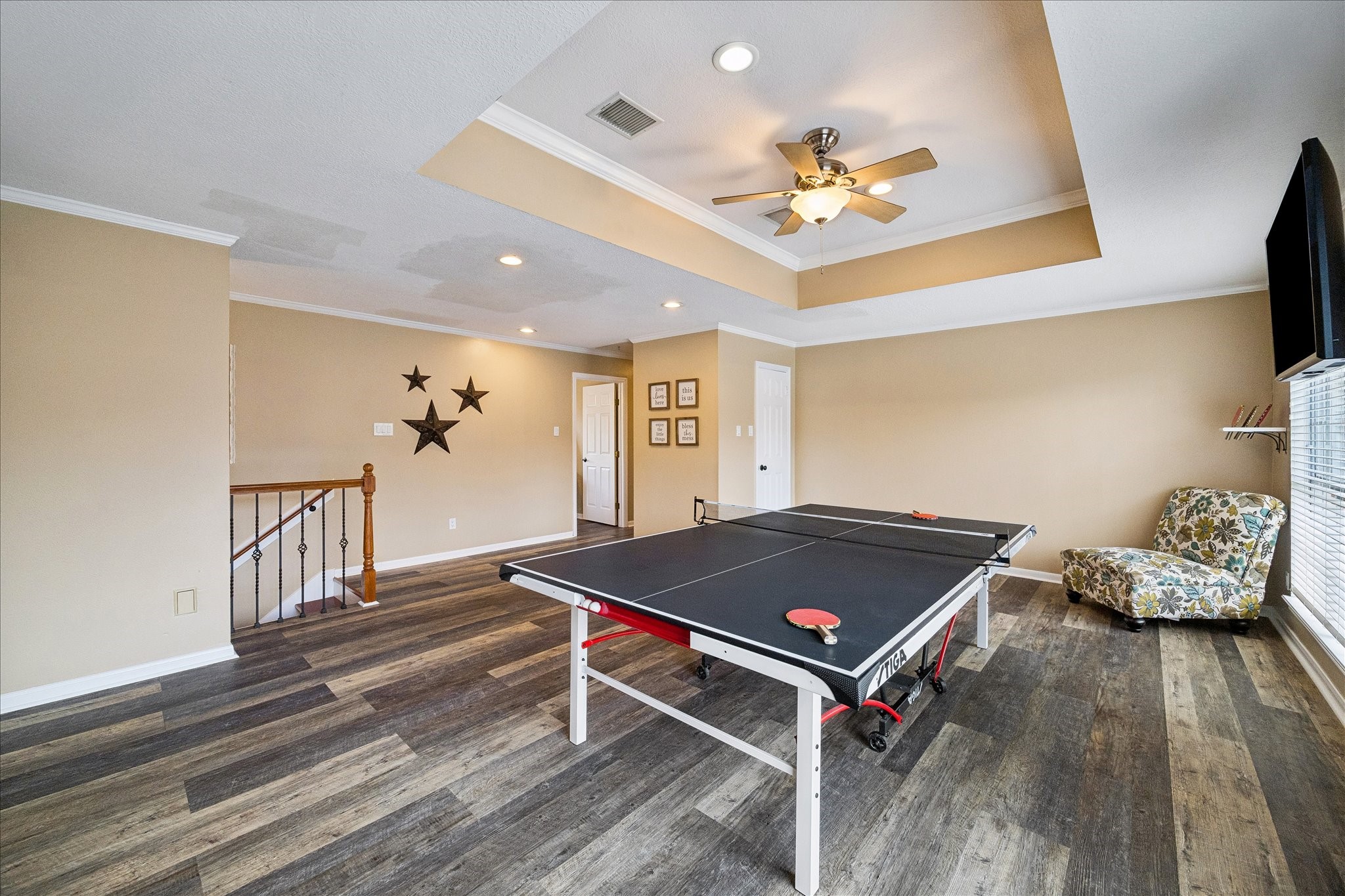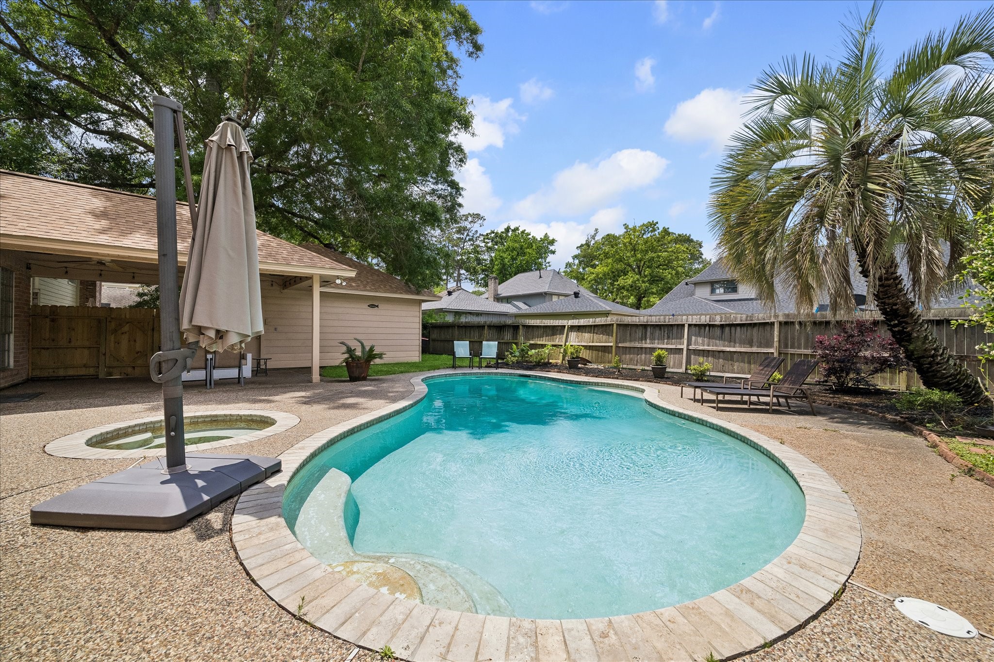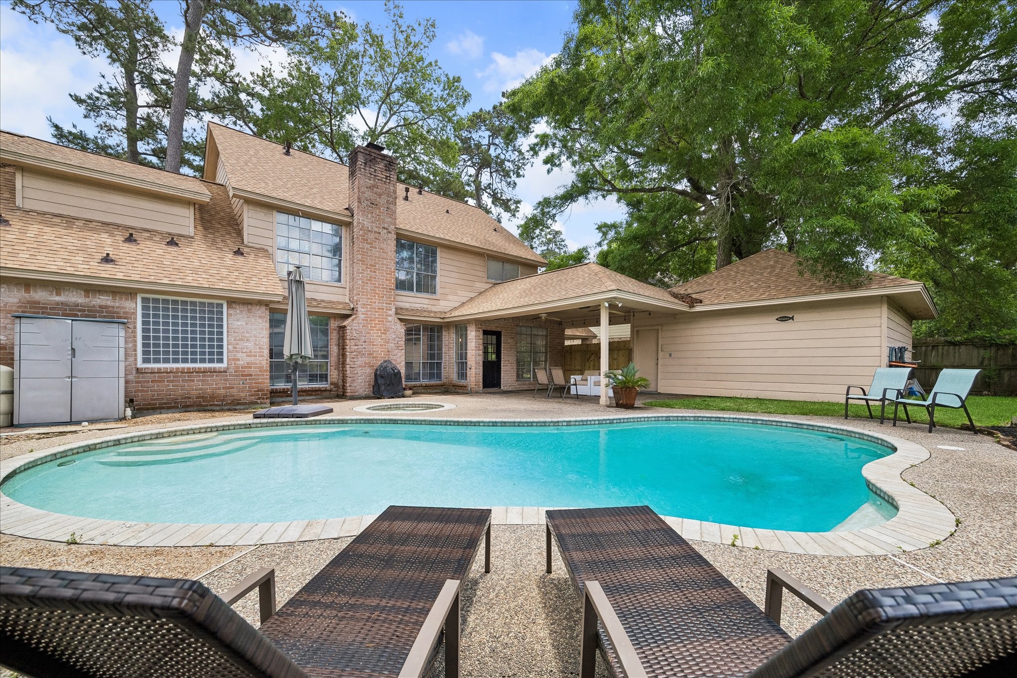 Beautifully maintained 5-bedroom home with a sparkling pool, located in the highly coveted Sand Creek subdivision of Kingwood! Enjoy the ultimate convenience of walking to the Elementary School—skip the car lines forever. Nature lovers will appreciate easy access to the famous Kingwood greenbelt trails, offering miles of scenic paths throughout the community. Upstairs features four large secondary bedrooms and an expansive game room, perfect for family living and entertaining. Downstairs, the formal dining room is currently being used as a pool/game room but could easily transform into a private home office with elegant French doors. A major bonus—no carpet anywhere in the home, making it both stylish and low maintenance! This home offers space, flexibility, and an unbeatable location, all at a fantastic price. Don’t miss this incredible opportunity—schedule your showing today!