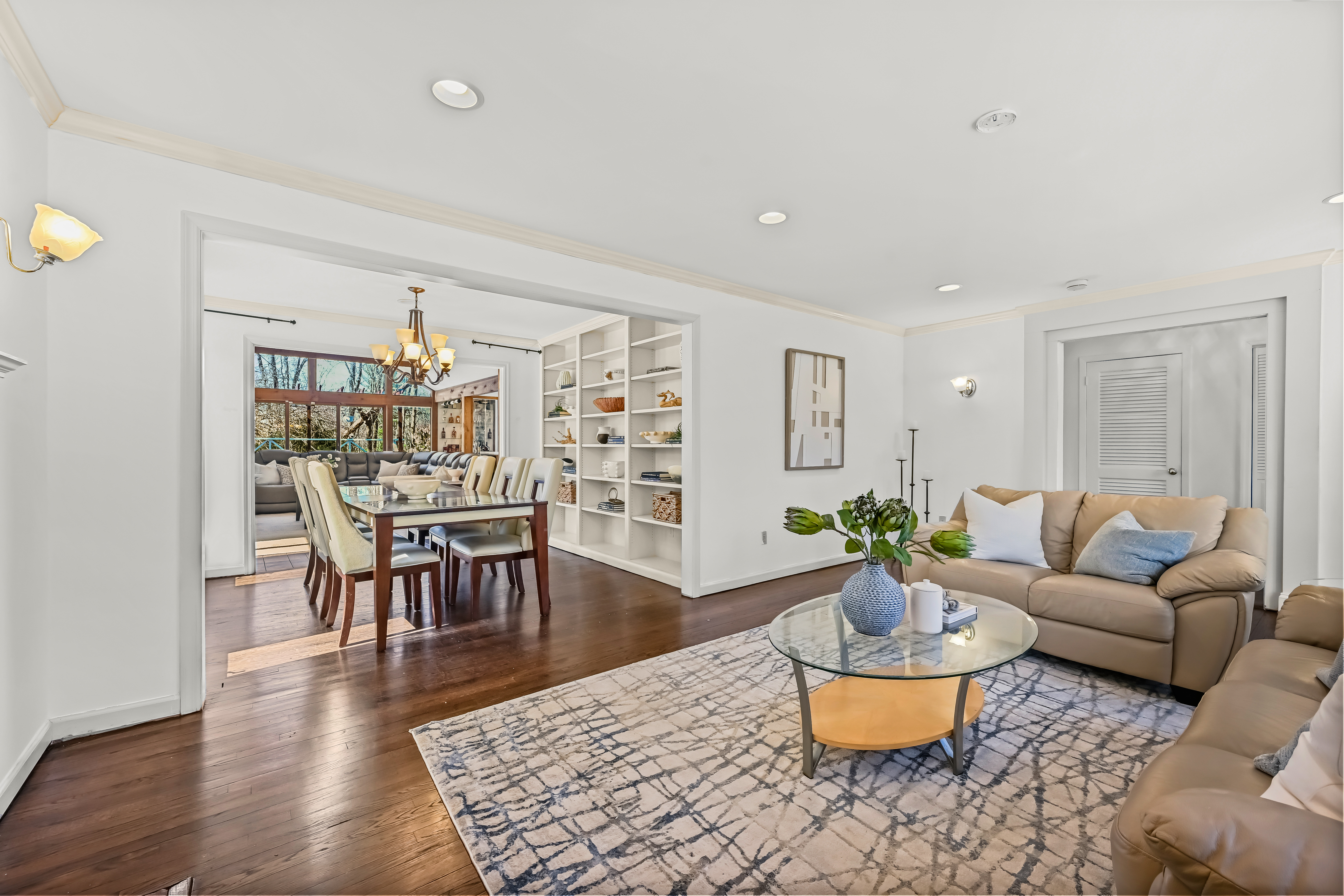 Discover the perfect balance of comfort and convenience with this unique split-level residence that sits on 1.70 private acres, gracefully set back from the road to offer outstanding privacy and tranquility. Step inside to experience spacious, light-filled interiors with an open floor plan, expansive picture windows, and beautiful hardwood floors that seamlessly connect the living spaces-ideal for both everyday living and entertaining. The home boasts a brand new roof with a transferable warranty and a full house generator for uninterrupted peace of mind. Entertain effortlessly with spacious front and back decks, a built-in bar, and a unique theater room featuring stadium seating for unforgettable movie nights. The home includes an updated main floor powder room and a dedicated private home office with custom built-in cabinetry and shelving, making working from home a breeze. Enjoy the comfort of 5 bedrooms and 5 & 1/2 bathrooms, including three en suite bedrooms. One suite offers a private entrance, perfect for an au pair/multigenerational living. Upstairs, the expansive primary suite provides a serene retreat with a charming bay window and built-in bench. Additional living space offers versatility for a variety of lifestyle needs. Outdoor amenities are designed for family fun and relaxation, featuring a hot tub, zip line, trampoline, and two tree swings. The decks overlook the serene, private setting, providing the ideal backdrop for gatherings large and small.