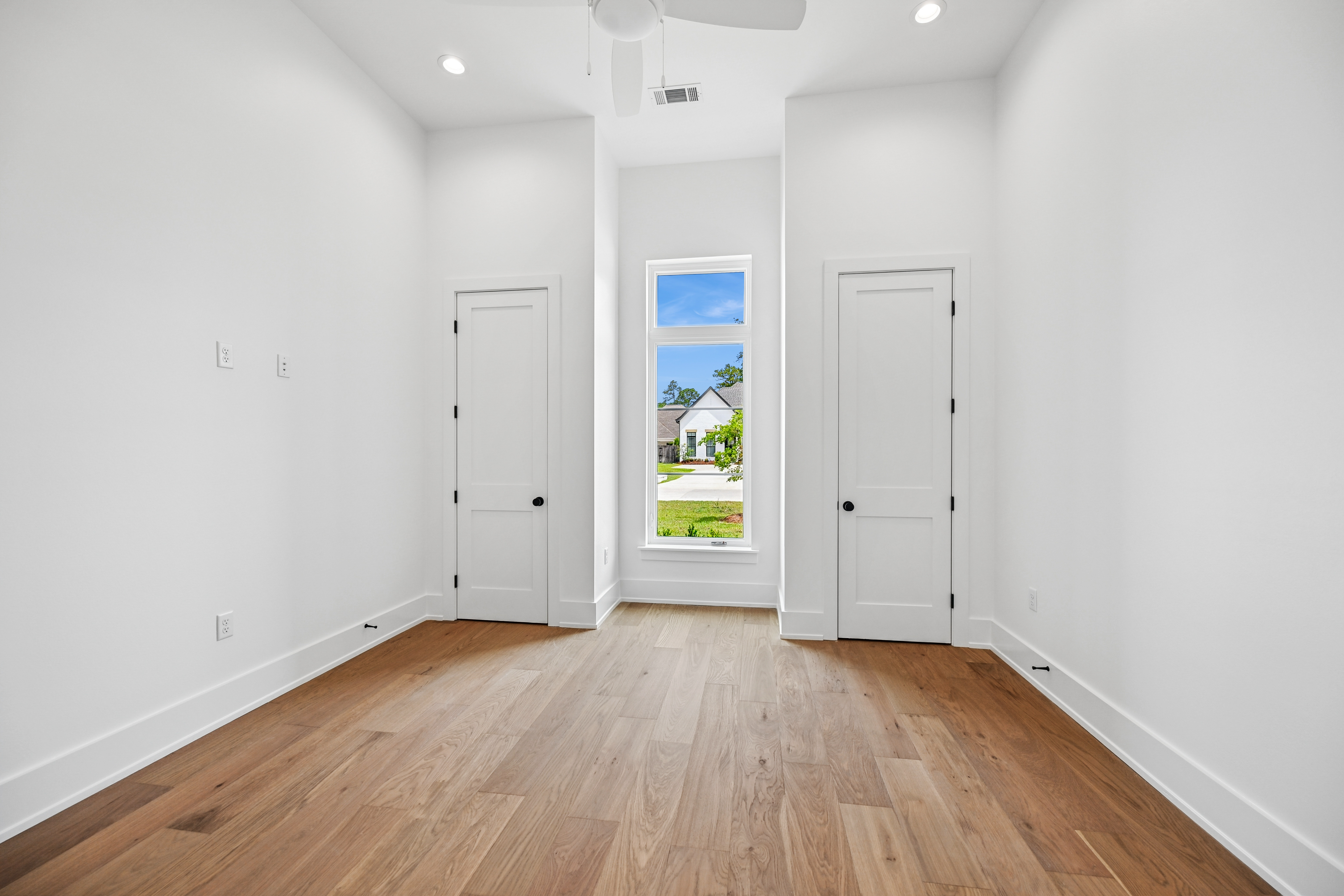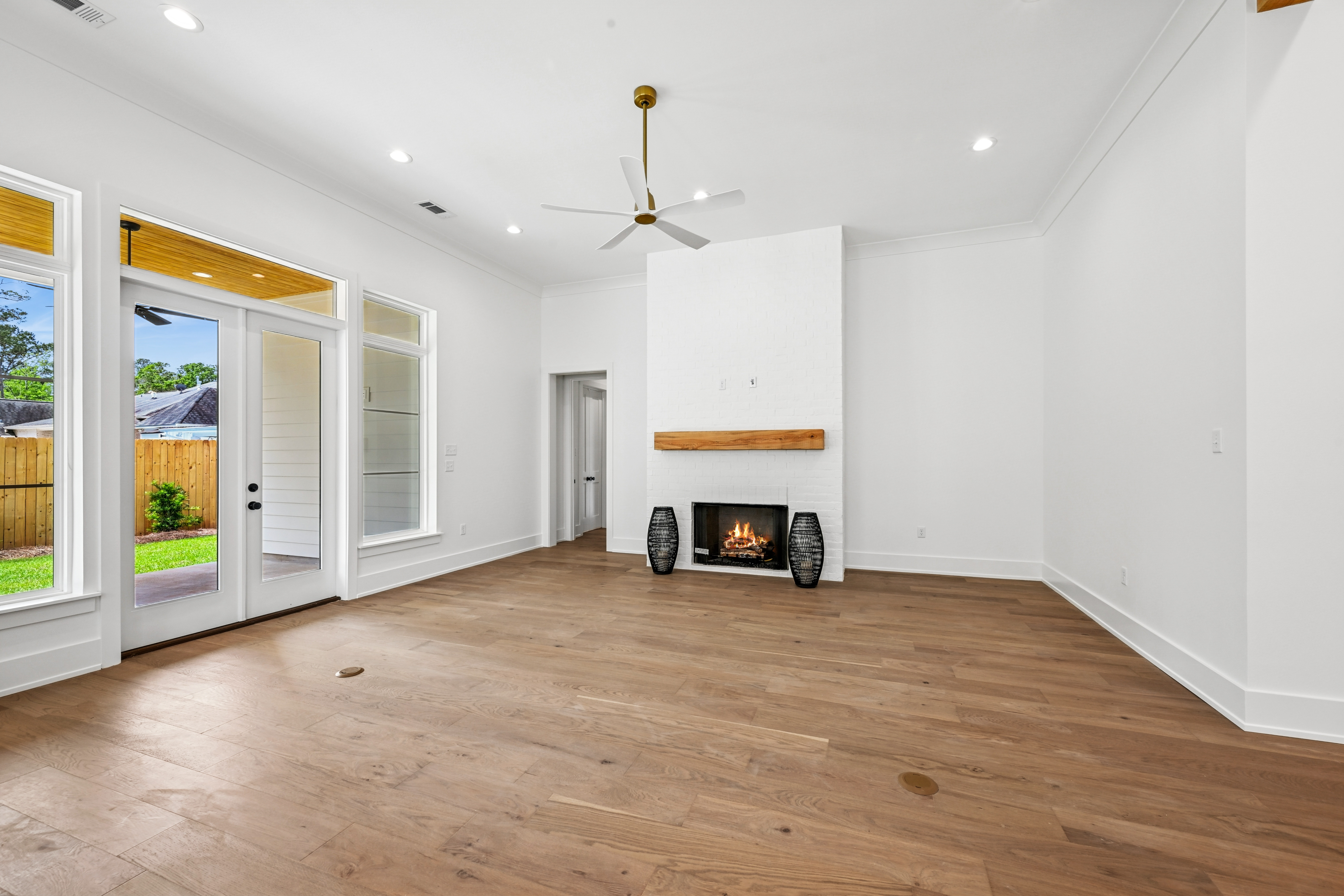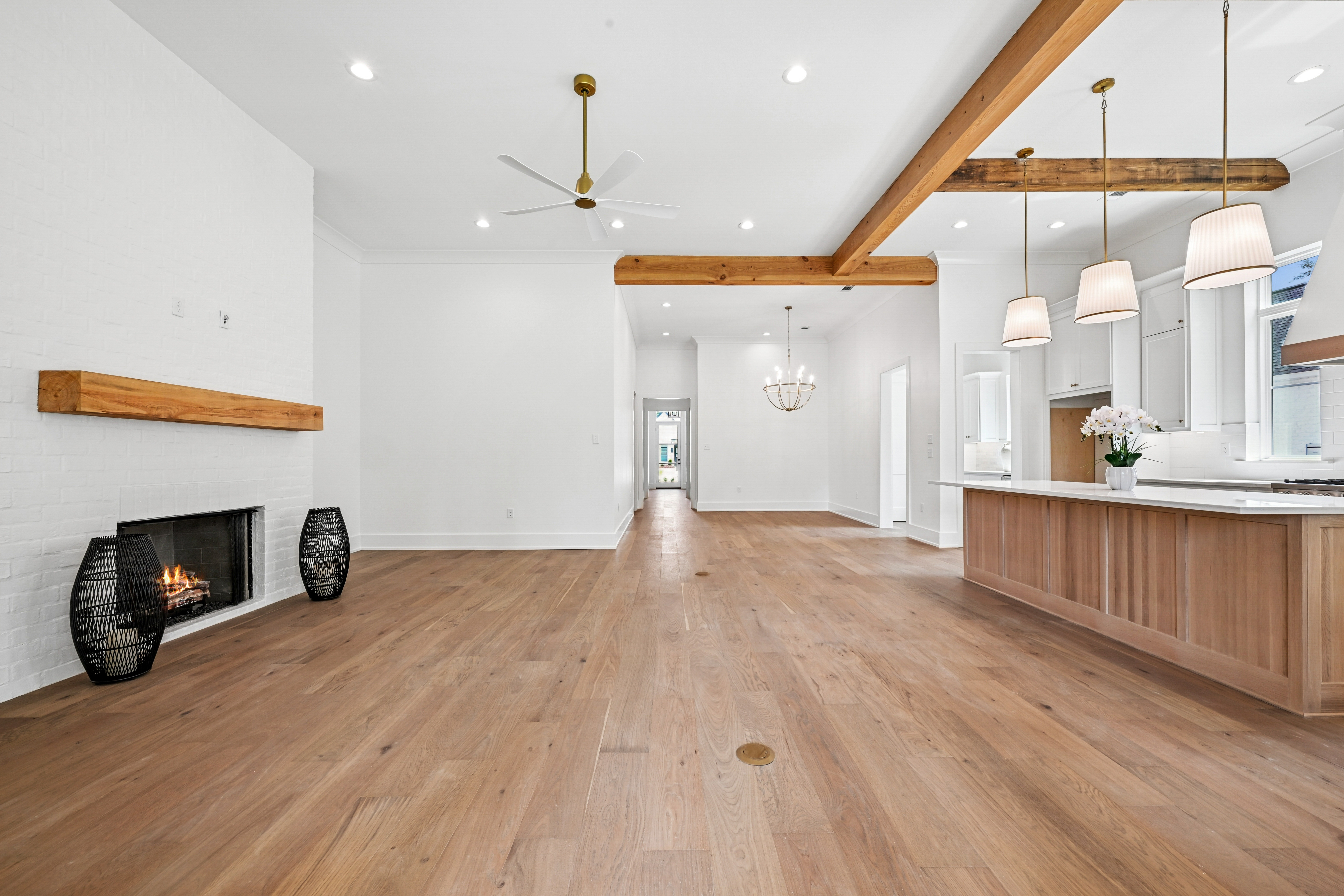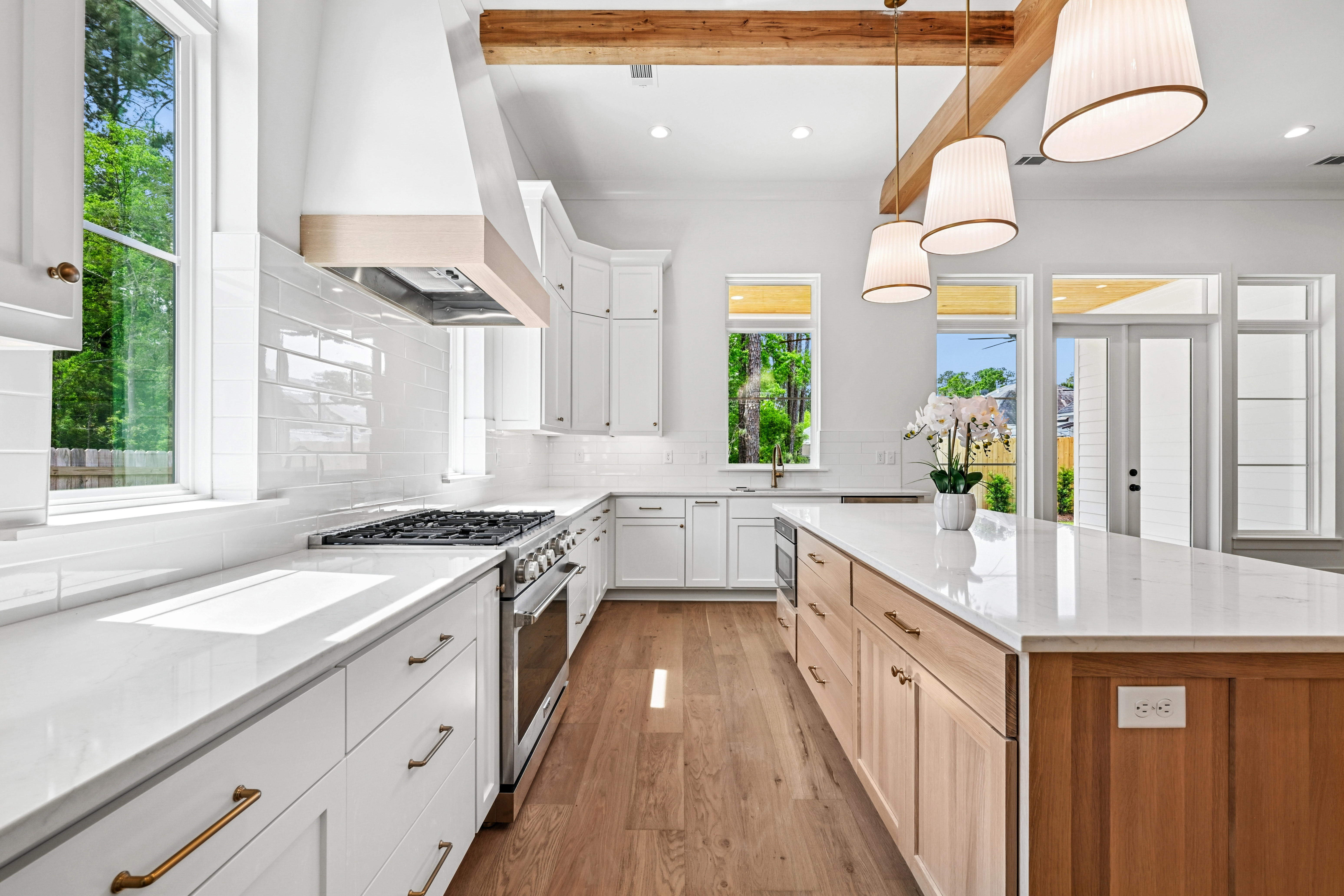 The final phase of the desirable Grande Maison community is here, with only a few new construction homes remaining. This traditional 4-bedroom, 3.5-bath home offers a thoughtfully designed layout with abundant closet space, bright and airy interiors, and beautiful exposed beams throughout. The 12 foot ceilings expand throughout the living, kitchen and dining. The kitchen is both functional and elegant, featuring Thor appliances and a convenient butler’s pantry—perfect for storing small appliances and keeping the main space uncluttered—along with an oversized walk-in pantry that provides exceptional storage. The primary suite is a true retreat, highlighted by a serene bathroom with a freestanding soaking tub and stunning floor-to-ceiling tile. Bedroom 2 has access to a full bath, while Bedrooms 3 and 4 share a well-appointed Jack-and-Jill bathroom with ample cabinetry. A Designated office/ extra room is near the painted mudroom w storage for shoes, bags and coats. Step outside to a covered back porch, already plumbed for a future outdoor kitchen, offering the perfect opportunity to create your ideal entertaining space. Enjoy peaceful evenings overlooking the rare green space behind the home—a unique and desirable feature.