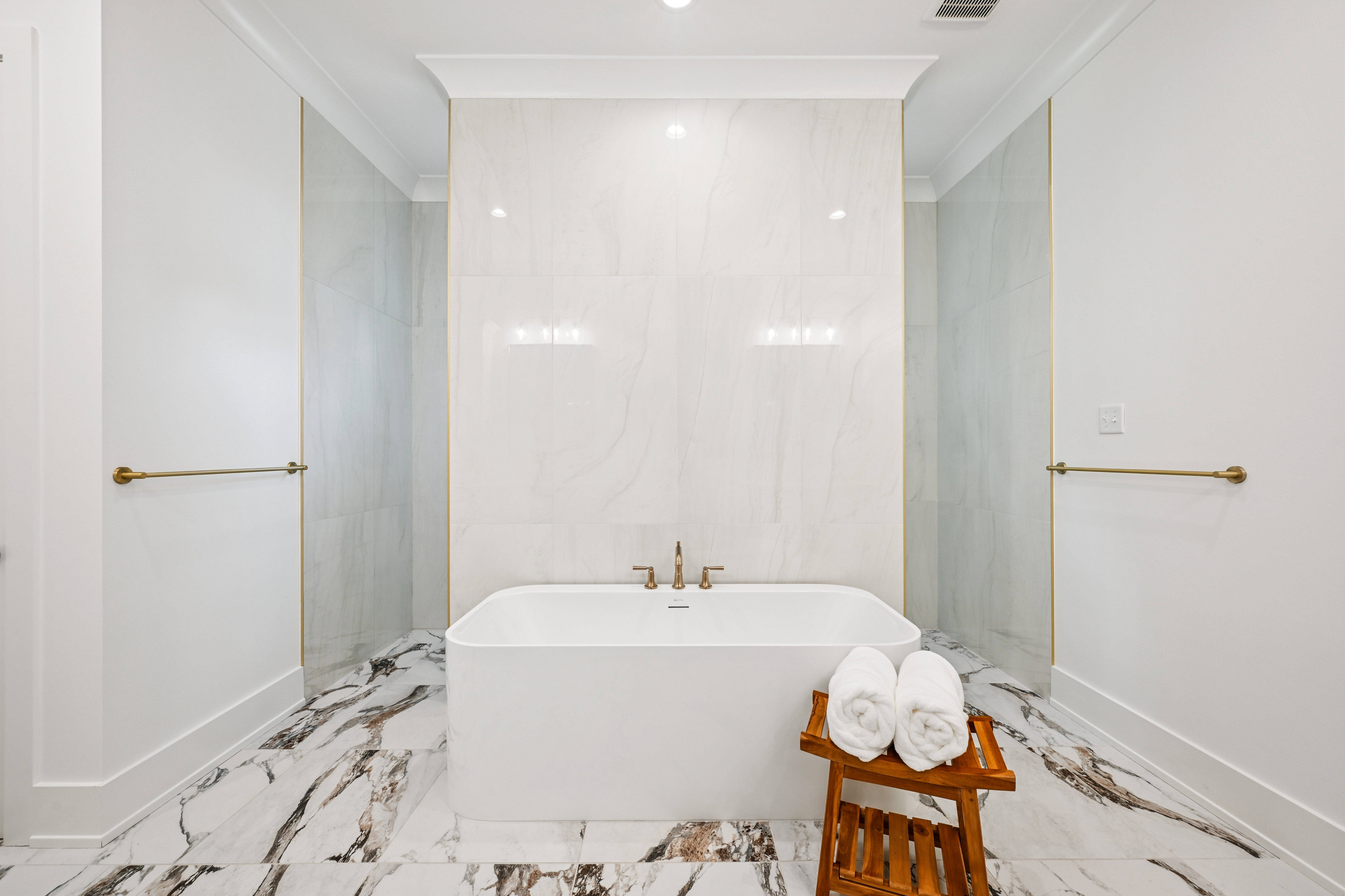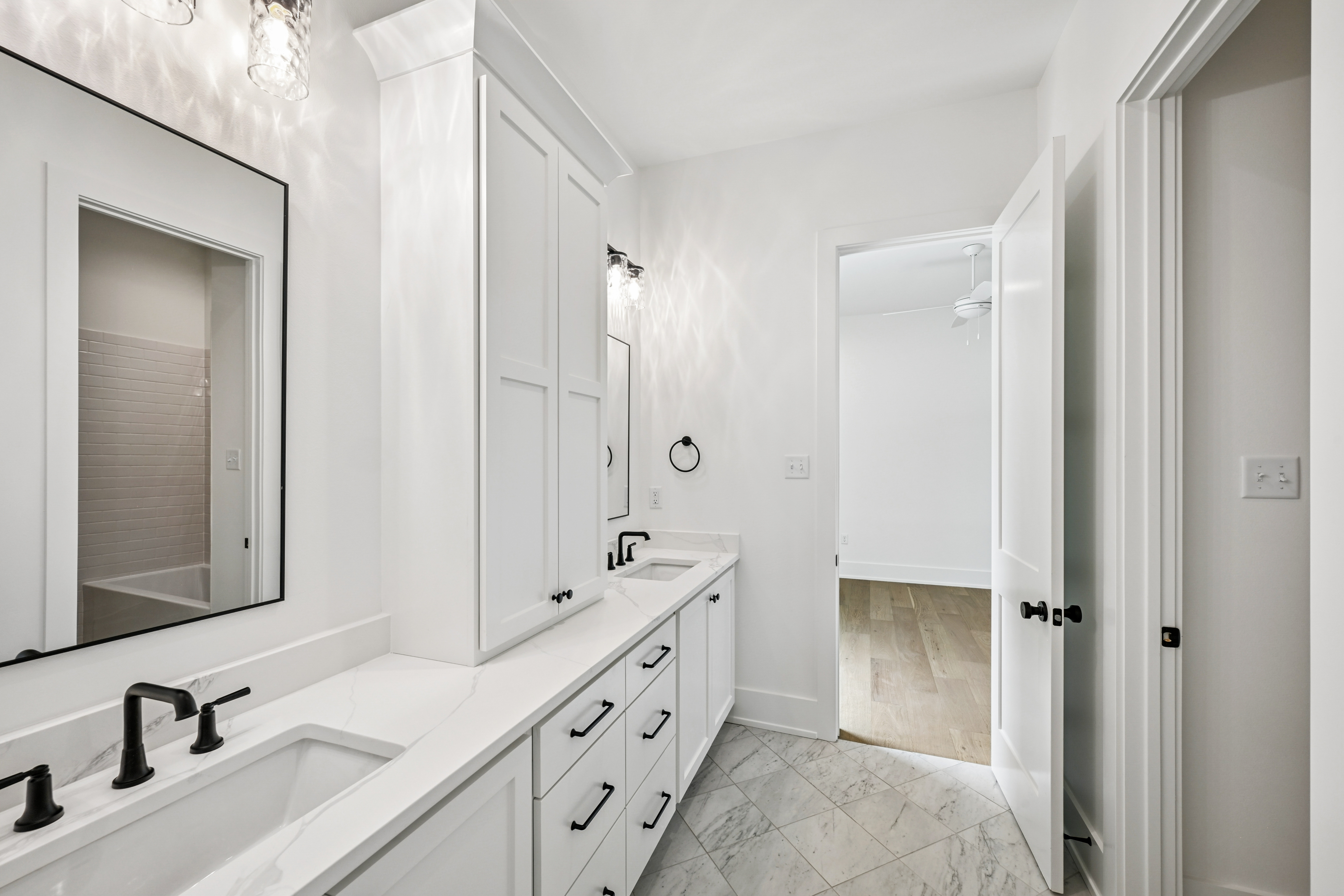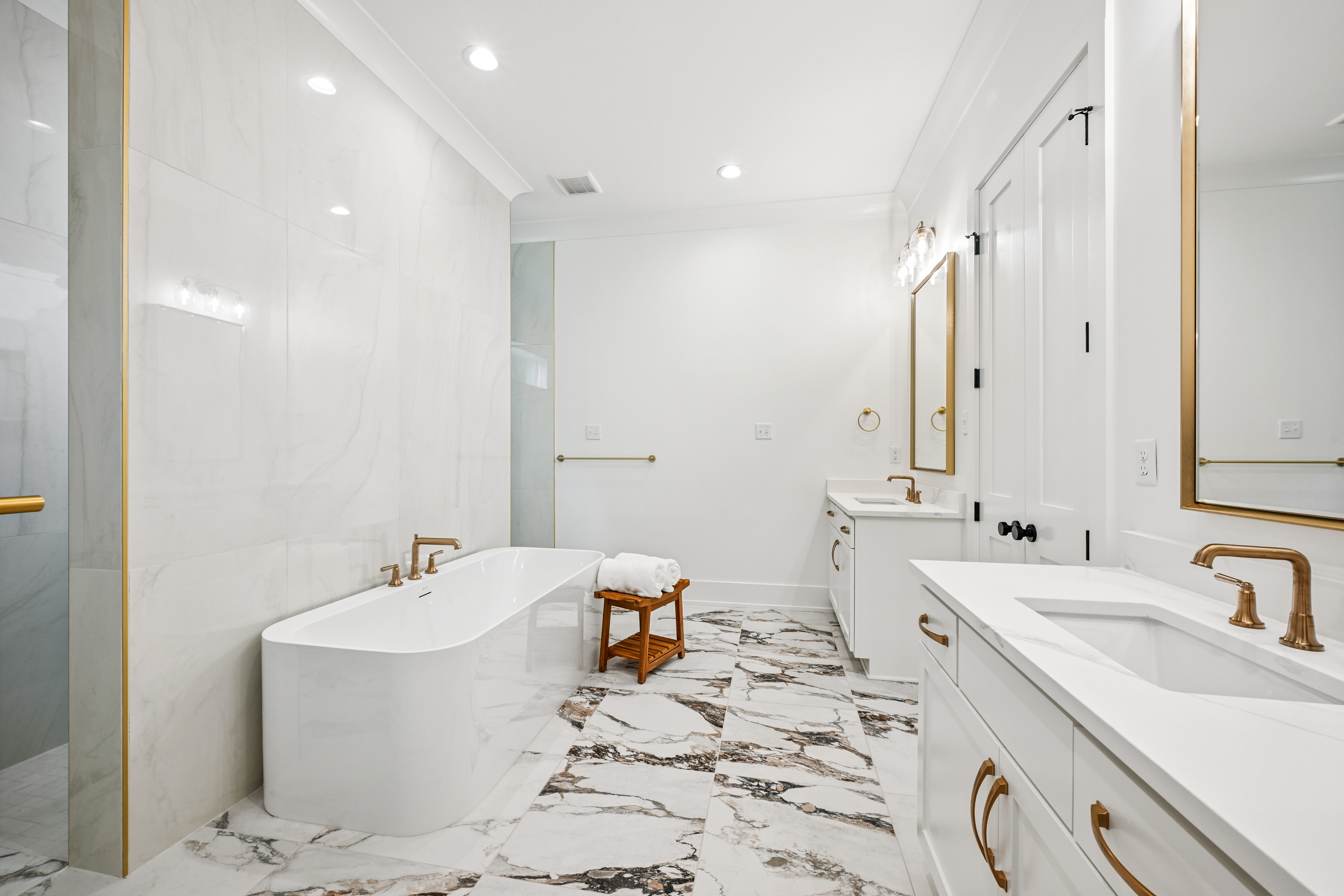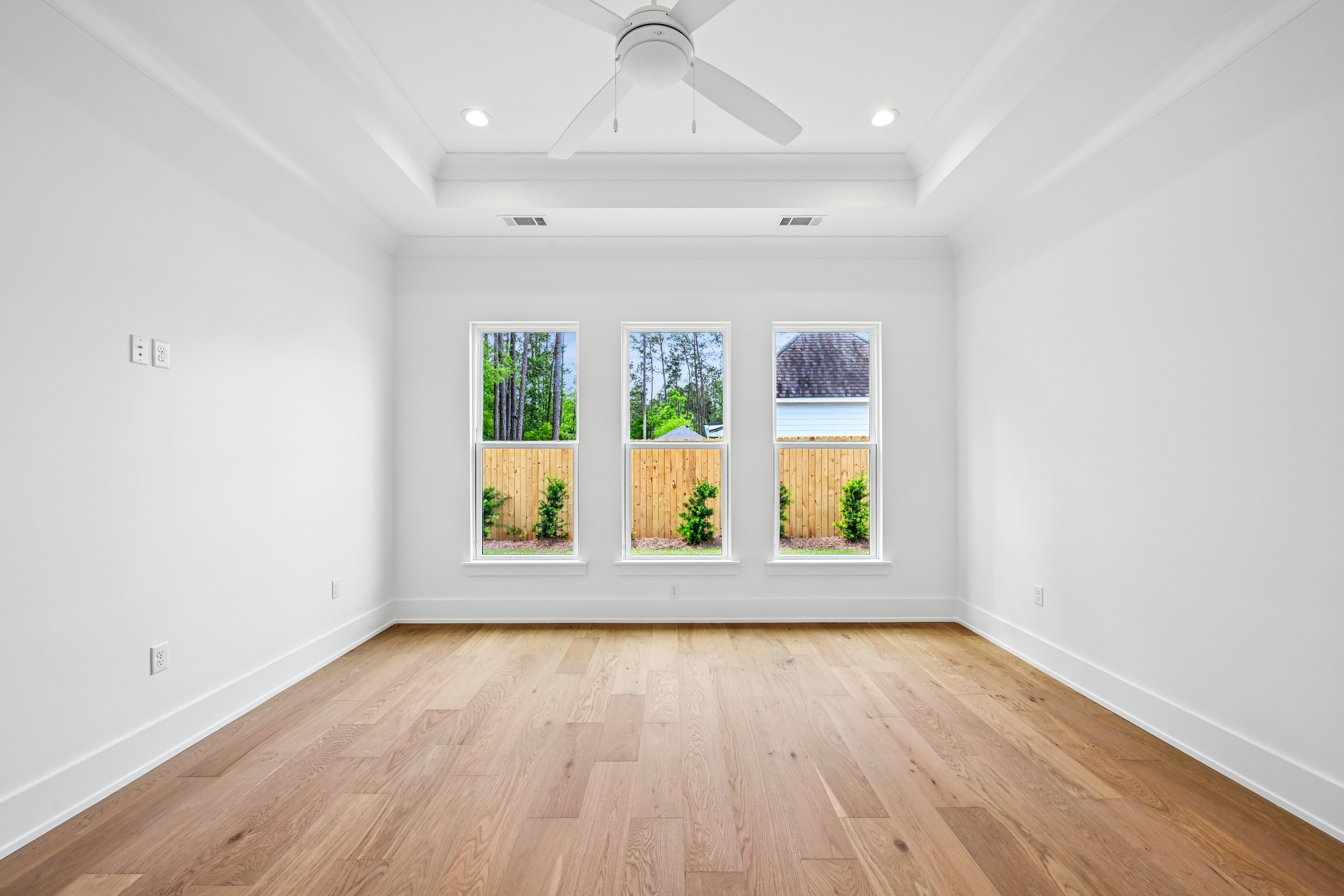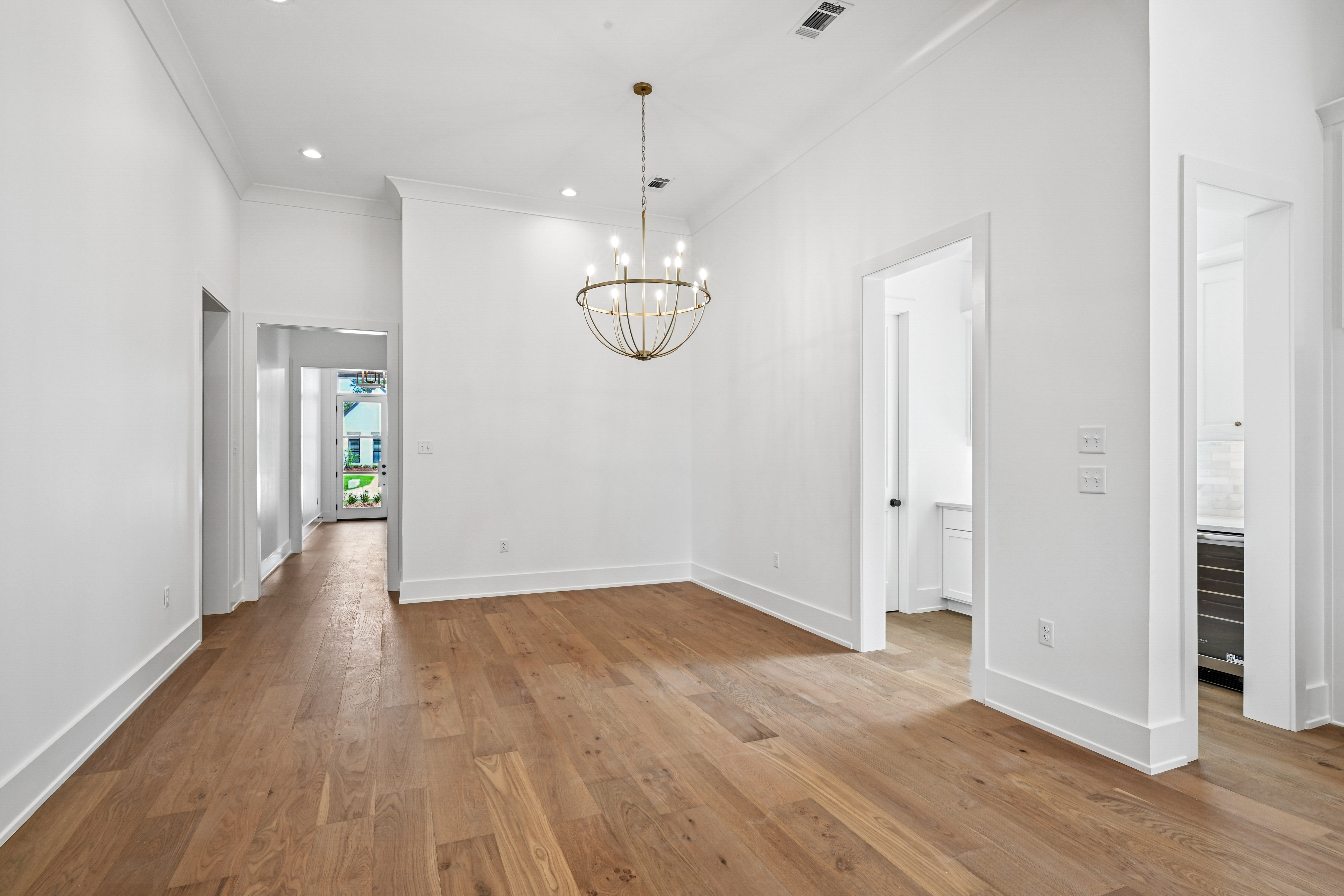 The final phase of the desirable Grande Maison community is here, with only a few new construction homes remaining. This traditional 4-bedroom, 3.5-bath home offers a thoughtfully designed layout with abundant closet space, bright and airy interiors, and beautiful exposed beams throughout. The 12 foot ceilings expand throughout the living, kitchen and dining. The kitchen is both functional and elegant, featuring Thor appliances and a convenient butler’s pantry—perfect for storing small appliances and keeping the main space uncluttered—along with an oversized walk-in pantry that provides exceptional storage. The primary suite is a true retreat, highlighted by a serene bathroom with a freestanding soaking tub and stunning floor-to-ceiling tile. Bedroom 2 has access to a full bath, while Bedrooms 3 and 4 share a well-appointed Jack-and-Jill bathroom with ample cabinetry. A Designated office/ extra room is near the painted mudroom w storage for shoes, bags and coats. Step outside to a covered back porch, already plumbed for a future outdoor kitchen, offering the perfect opportunity to create your ideal entertaining space. Enjoy peaceful evenings overlooking the rare green space behind the home—a unique and desirable feature.