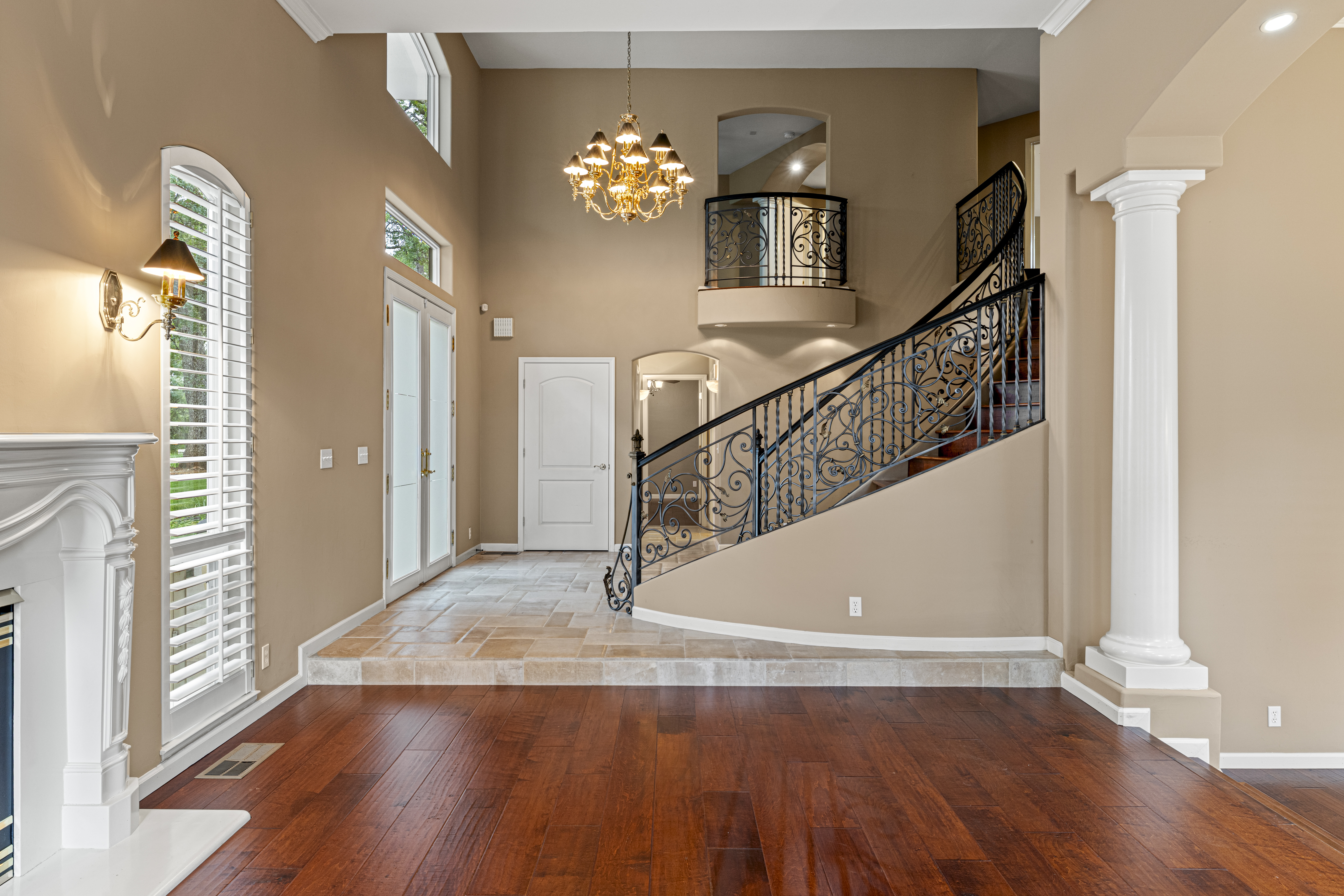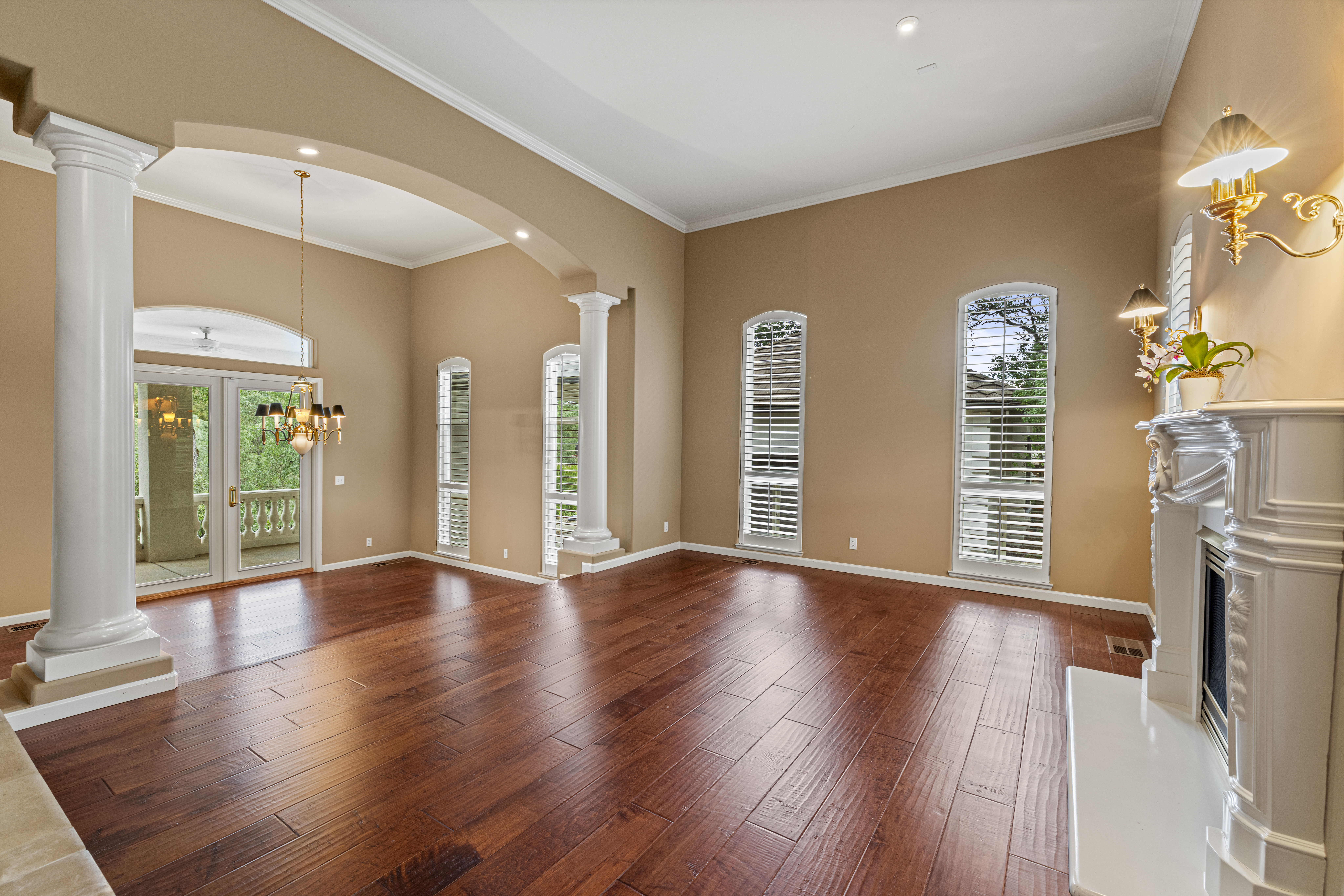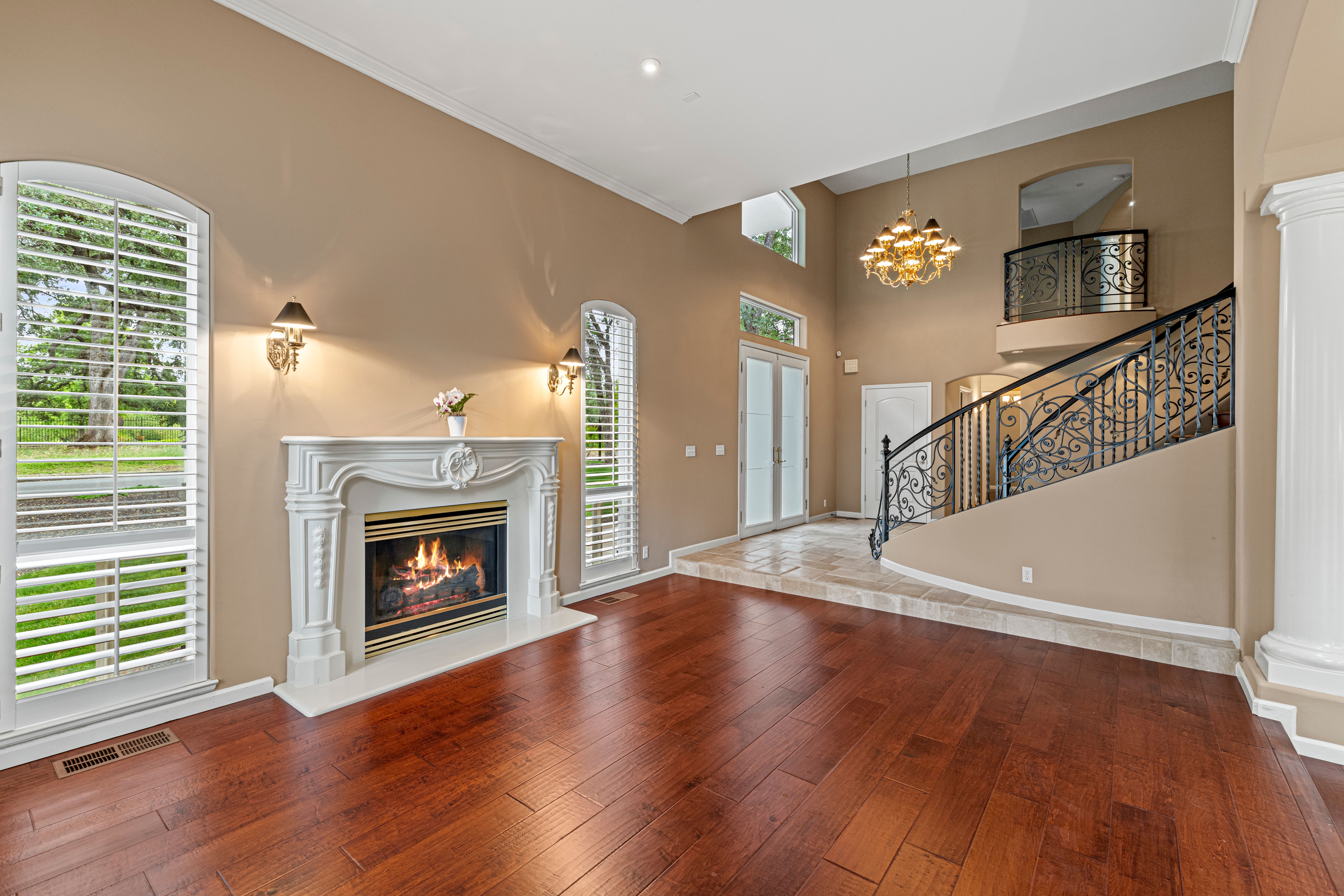 Set on over 3/4 of an acre in the prestigious Sterlingshire community, this custom-built home blends timeless French-inspired architecture with thoughtful, modern functionality. Designed by an award-winning designer, every detail was carefully considered- from the classic exterior presence to the curated finishes throughout. Ideally located directly across from a beautiful community park, this home offers the perfect balance of privacy and connection- with open green space, walking paths, and additional play areas just steps from your front door. Inside, the home is both elegant and livable. Imported pillowed limestone flooring, rich woodwork, and custom details create a warm, refined feel. The kitchen is built for both everyday use and entertaining, featuring a Sub-Zero refrigerator and freezer, a Wolf cooktop with integrated BBQ, Thermador oven and ample space to gather. The main level offers a rare combination of comfort and flexibility, including a full bedroom with en suite- ideal for guests or multigenerational living. Two fireplaces downstairs create an inviting atmosphere, perfect for cozy mornings or relaxed evenings at home. Upstairs, the primary suite serves as a private retreat with its own fireplace, alongside an additional bedroom and a spacious loft or office that could easily function as a fourth bedroom or flex space. One of the standout features is the six-car tandem garage with a second-story attic- offering extensive storage or potential for a future ADU conversion. Whether you're a car enthusiast, need space for recreational toys, or simply want room to grow, this is a rare find. The backyard is designed for privacy and ease, with peaceful views of a creek and walking trail just beyond the property- creating a quiet, natural backdrop without the burden of heavy maintenance. The exterior & interior are also newly painted for added convenience. Located within a prime neighborhood, this home offers a level of privacy and security that's hard to come by, all while maintaining a classic, understated sense of luxury.
