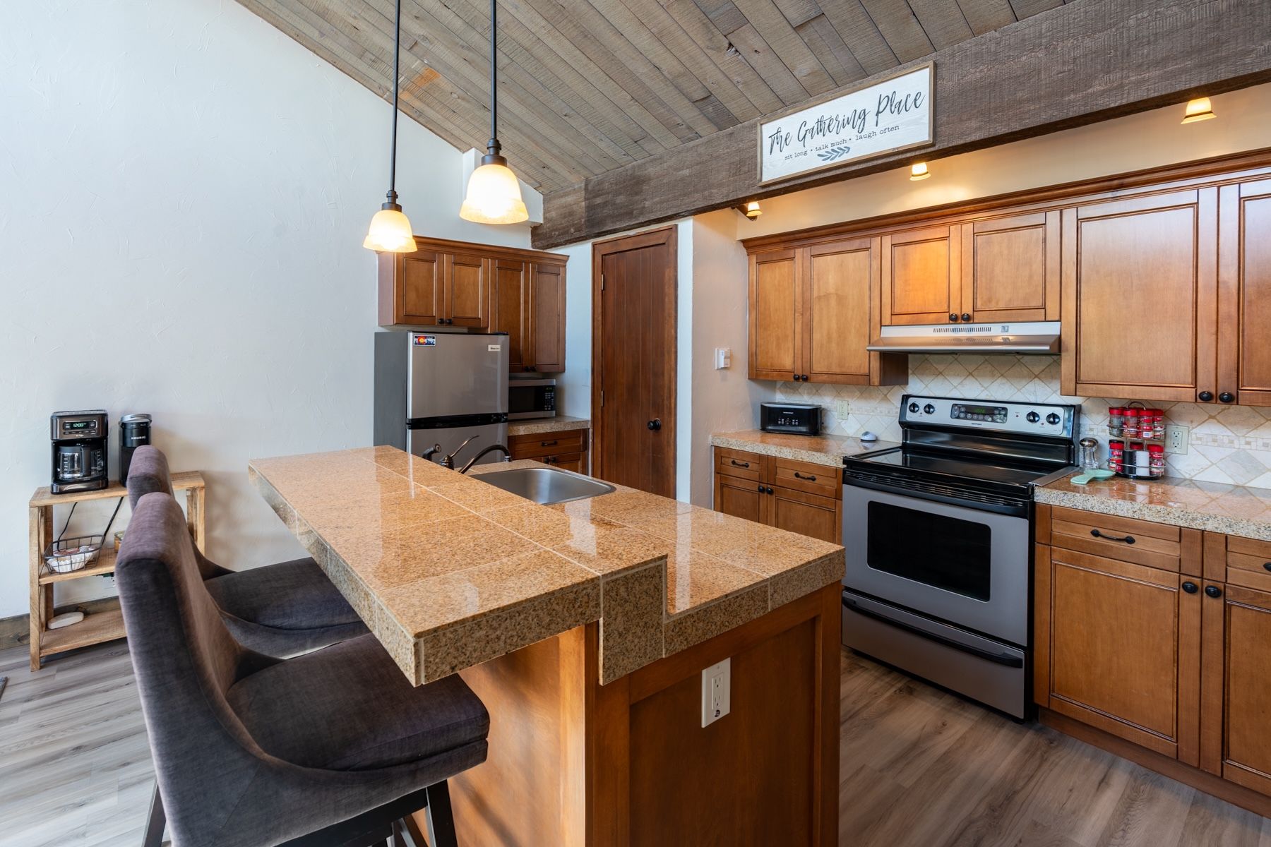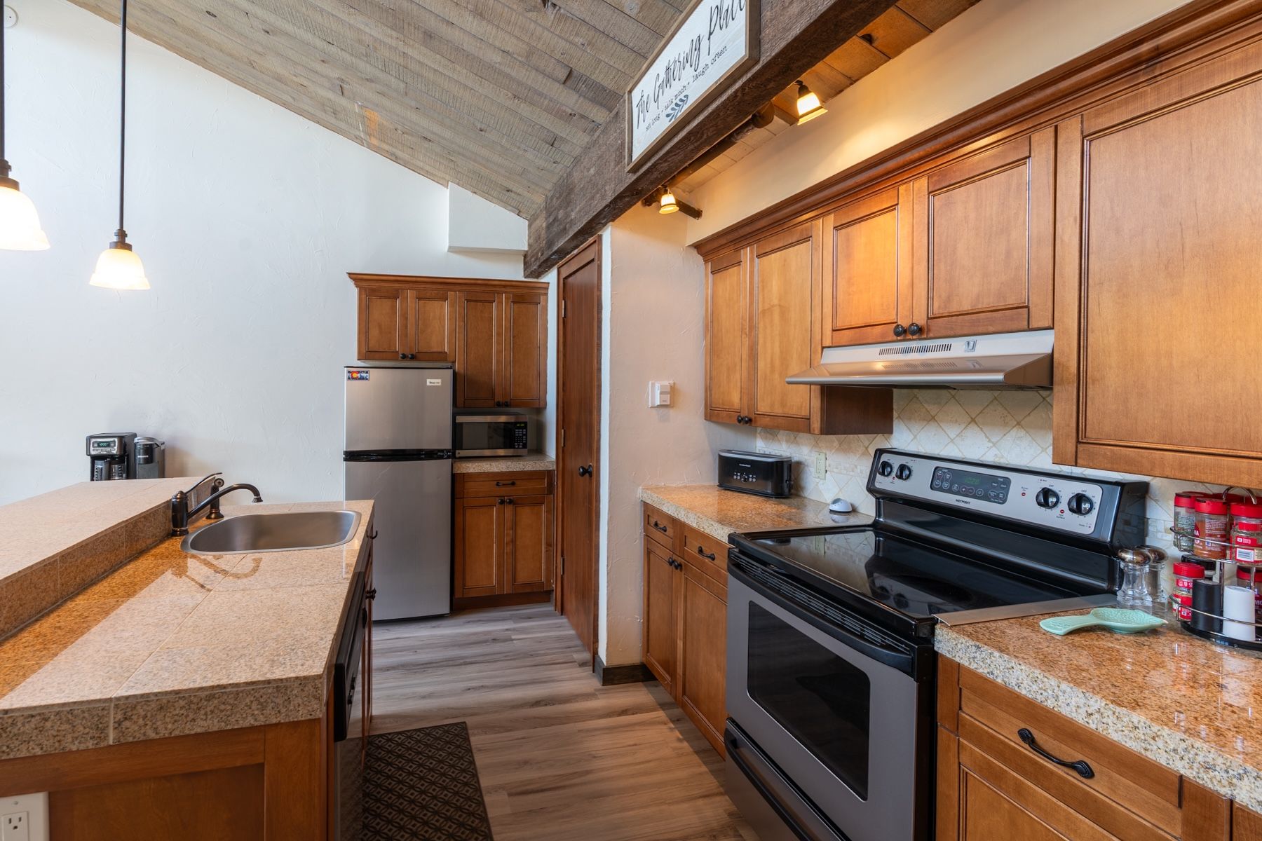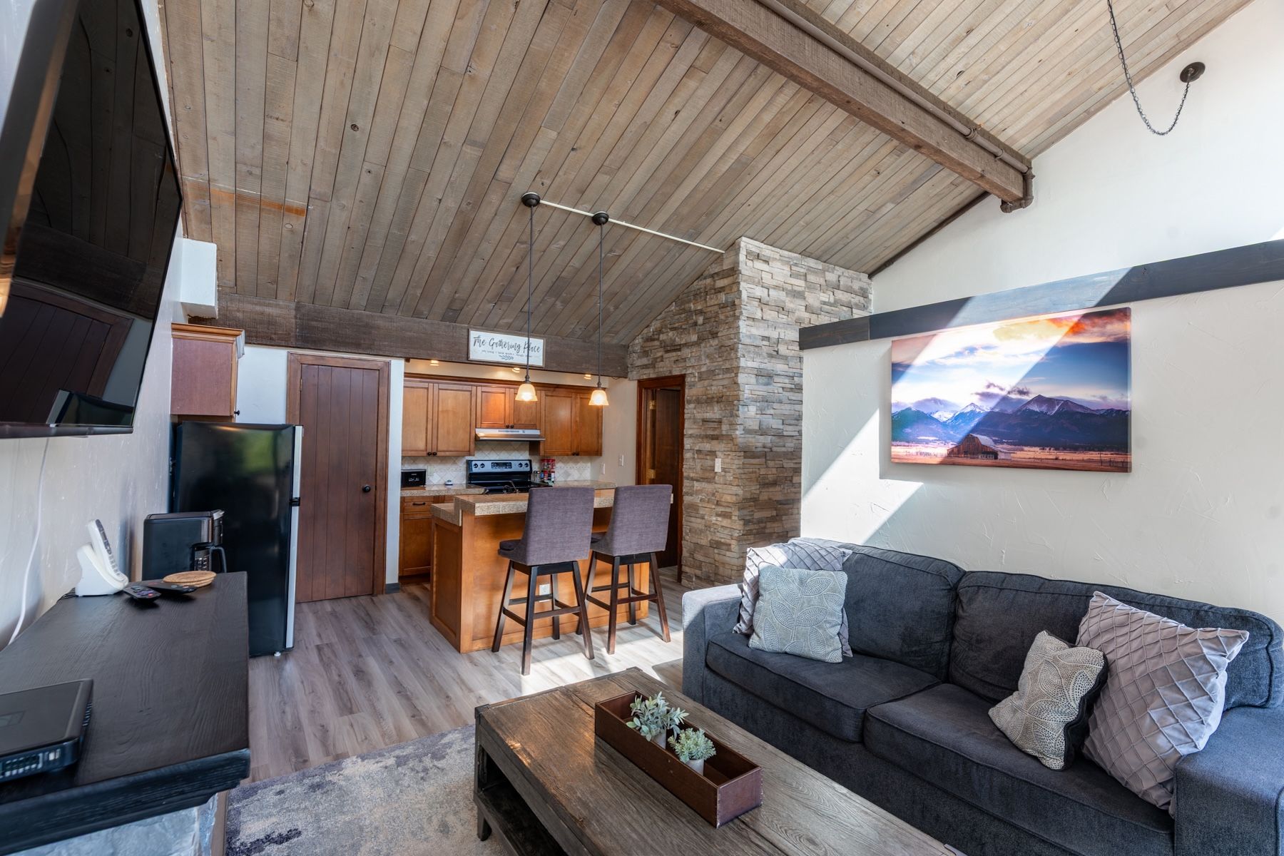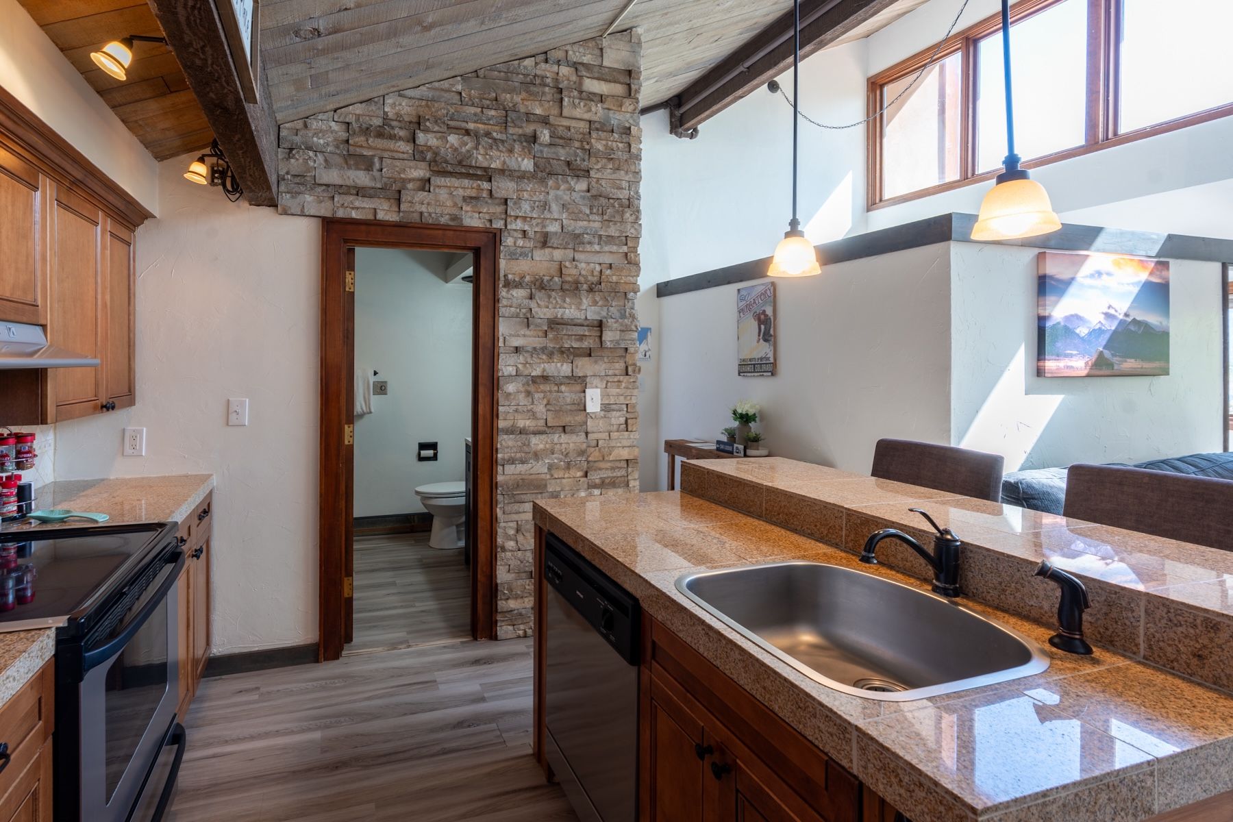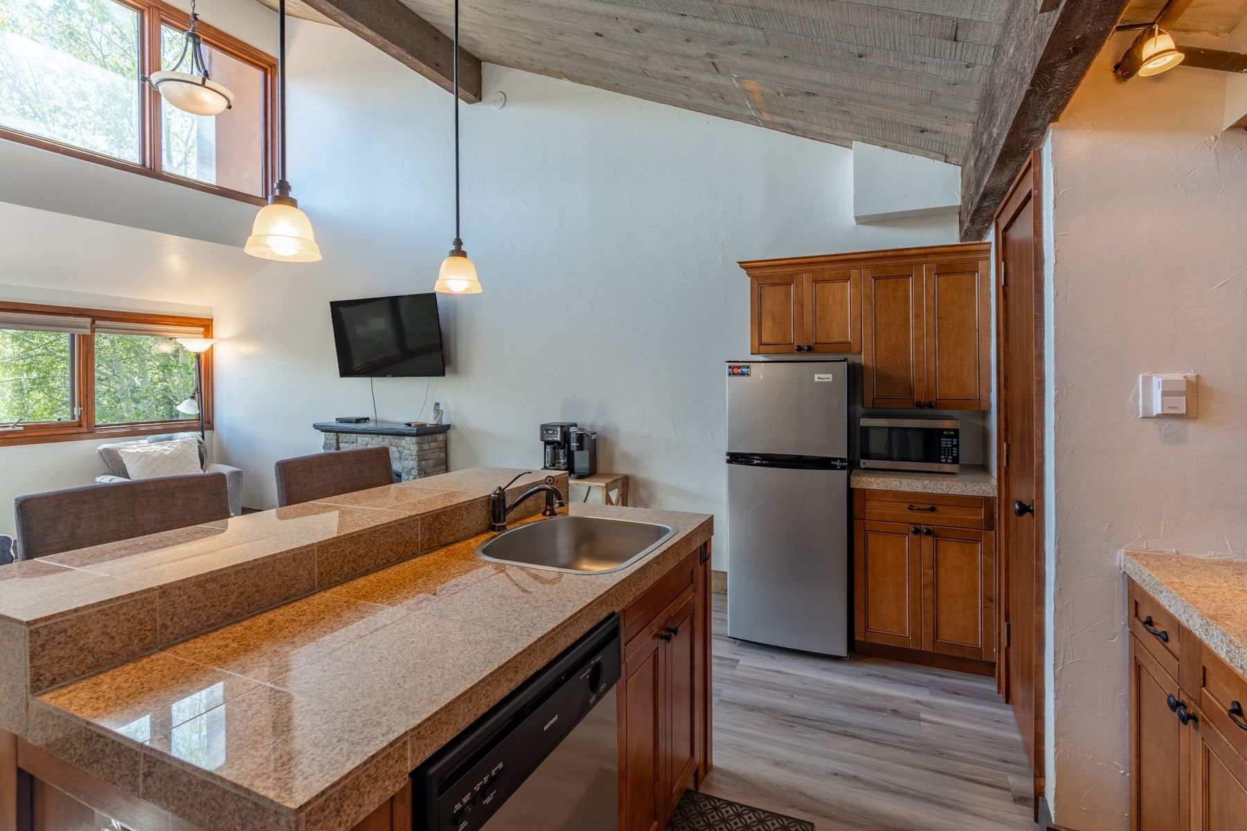 Come experience this inviting 545 sq. ft. 1-bedroom, 1-bath condo at the beautiful Tamarron Resort, located just 20 minutes north of downtown Durango. Nestled among the trees, Unit 785 offers a peaceful, treehouse-like feel with scenic views and access to exceptional resort amenities. From the moment you step inside, you’ll feel right at home. You are greeted with a nook for your coat with storage below and a beautiful stacked stone accent wall that leads you into the open floor plan. The thoughtfully remodeled kitchen features granite tile countertops, ample cabinet space, a full-size stove and oven, mid-sized refrigerator, and a convenient countertop microwave. A central island with a large sink and dishwasher provides added functionality, while two bar stools offer casual seating. The open-concept living area is warm and welcoming, complete with a queen sleeper sofa, standalone gas fireplace, big-screen TV, and comfortable furnishings—perfect for relaxing after a day of adventure. The bedroom is privately tucked away and features a cozy queen-size bed, side table, and storage. Wake up each morning to tranquil views of towering trees and Colorado skies. The bathroom includes a full-size jetted tub/shower combo with a slate tile surround, along with a vanity offering generous storage and a solid surface countertop. Step out onto the front entry deck—an ideal spot to enjoy your morning coffee while soaking in beautiful East Mountain views. Optional memberships provide access to outstanding amenities including golf, tennis, pickleball, a fitness center, indoor and outdoor pools, a playground, spa, and hot tub. Plus, you’re just 15 minutes from skiing in the winter. This is your opportunity to own a 2nd home, Investment property with proven rental history or a full time residence in this peaceful mountain retreat. Come and enjoy everything the Durango area has to offer—your own slice of Rocky Mountain paradise awaits!
