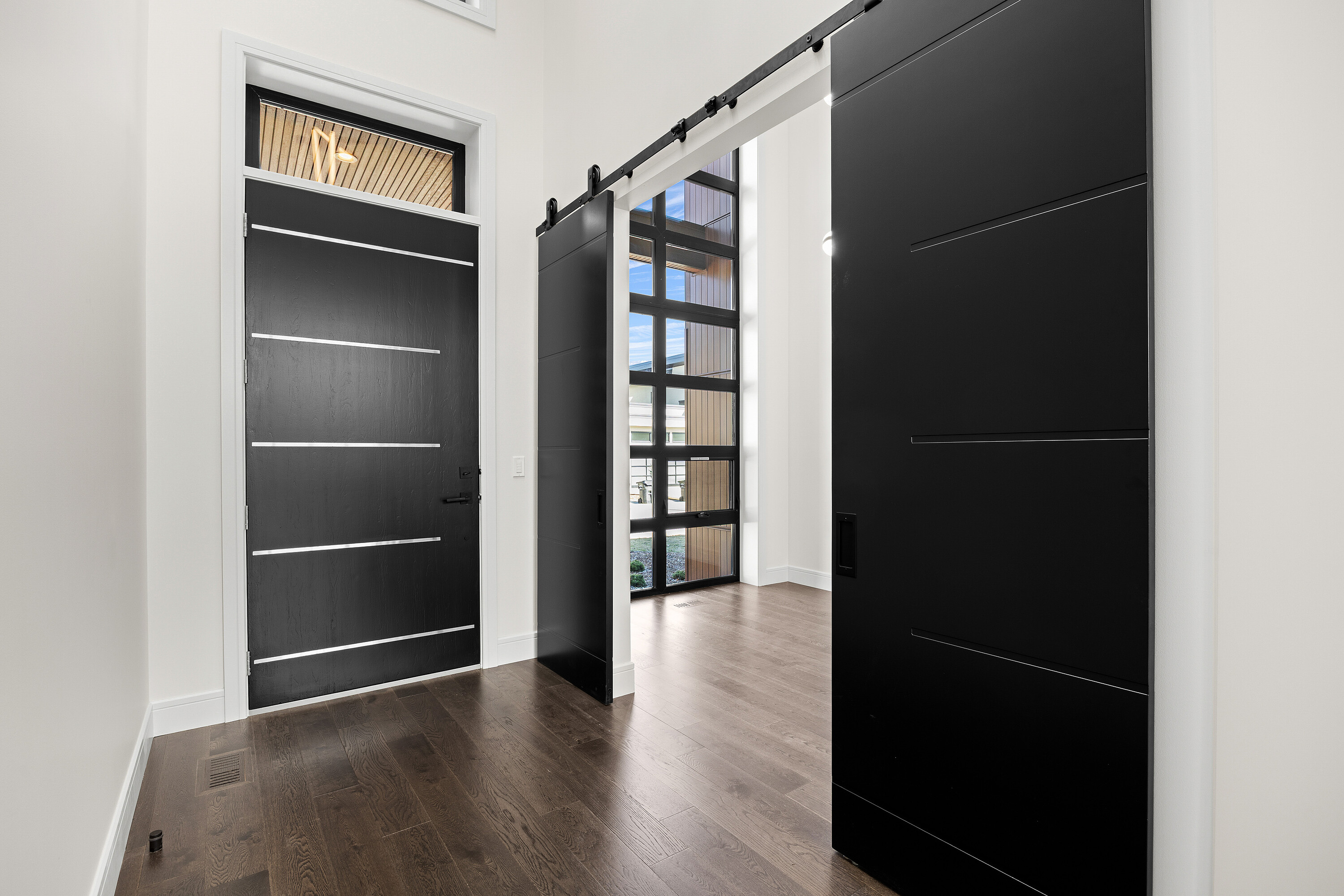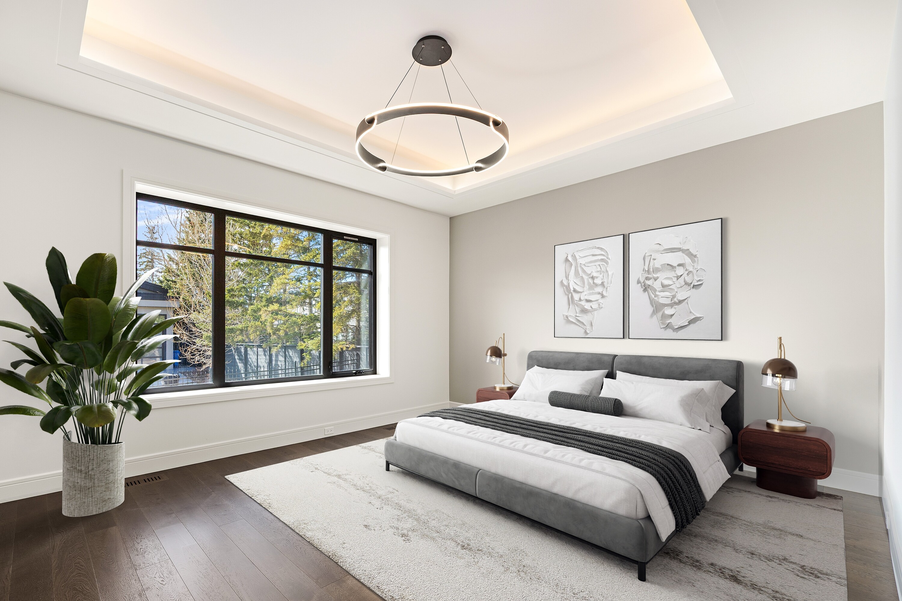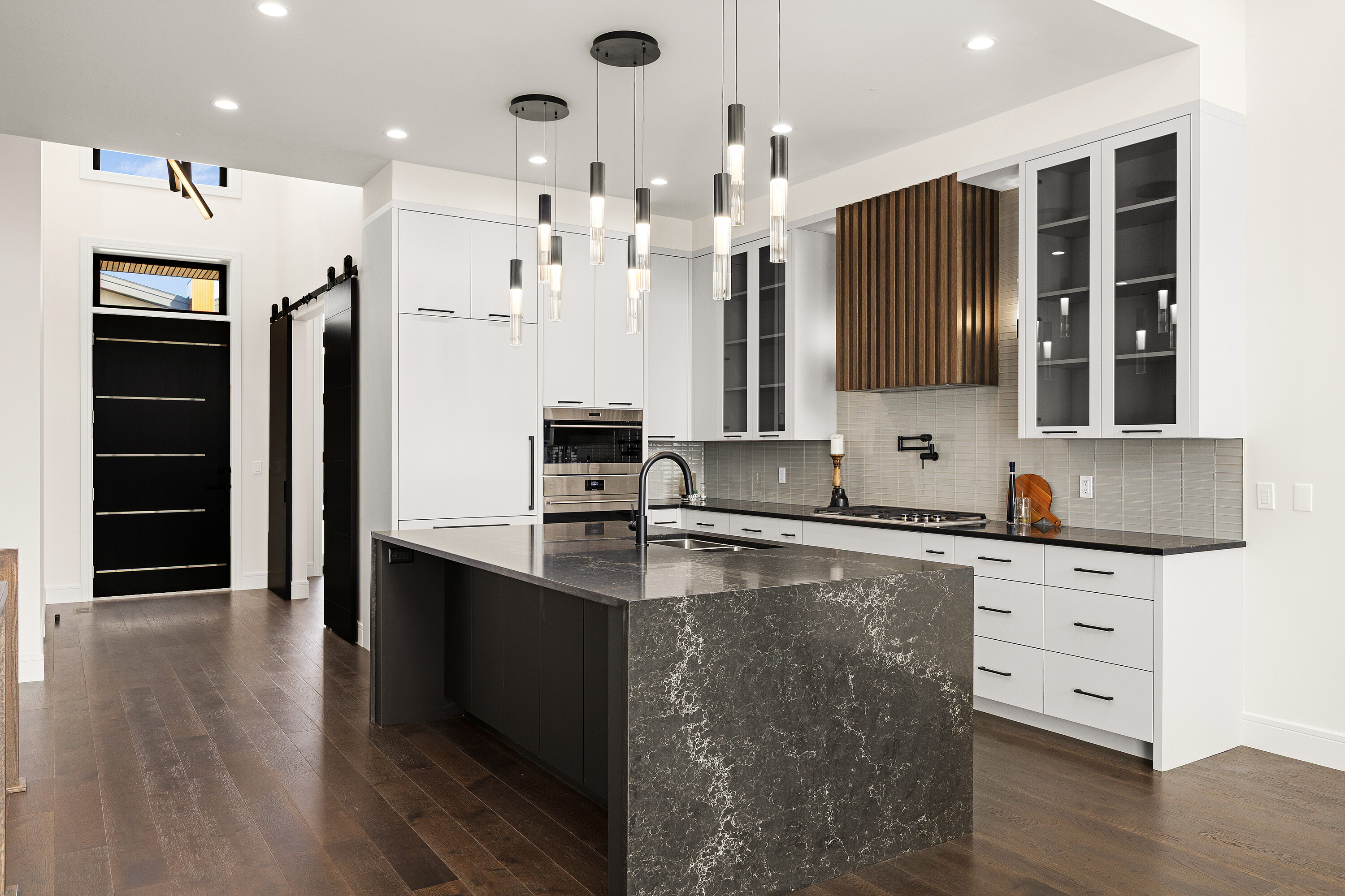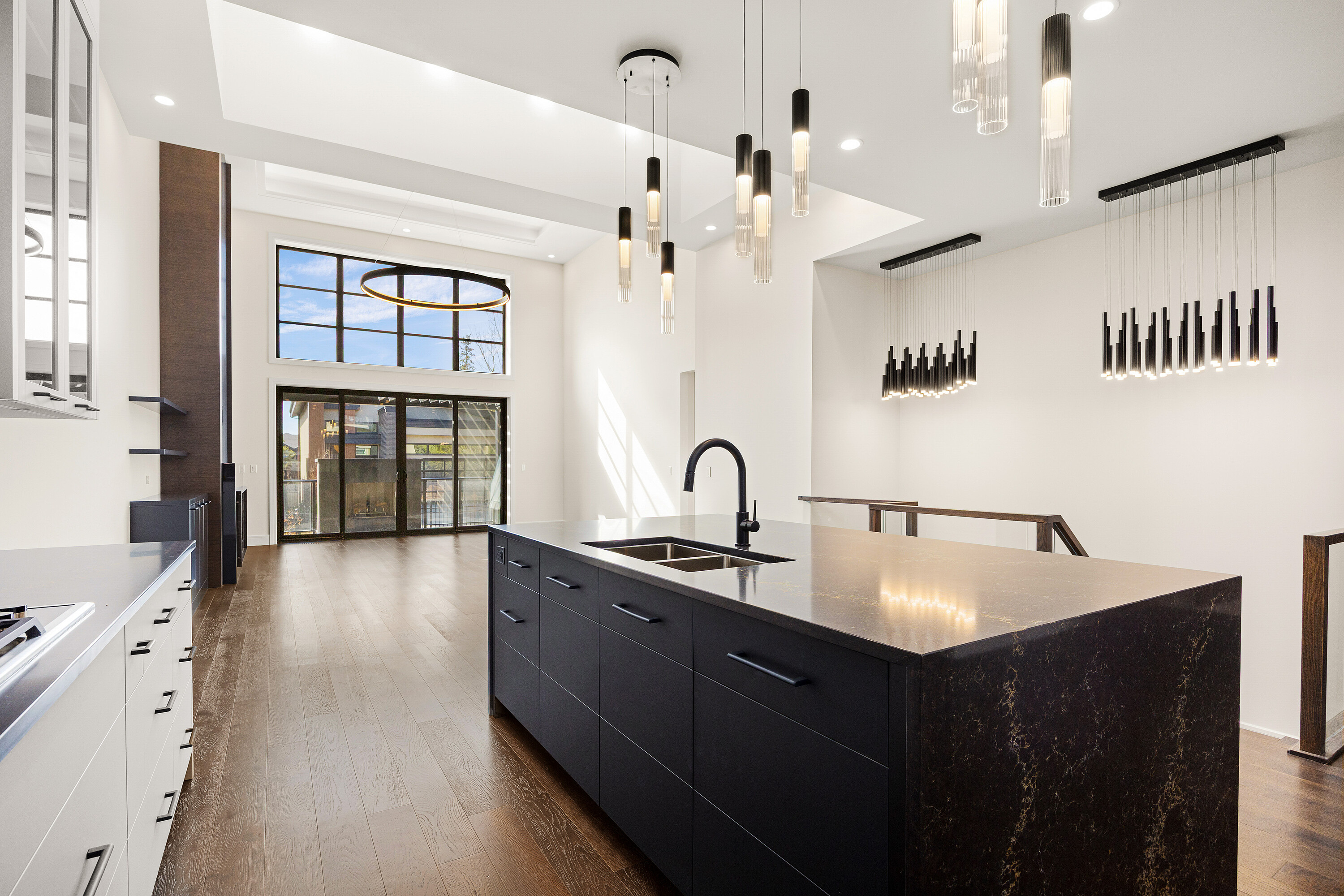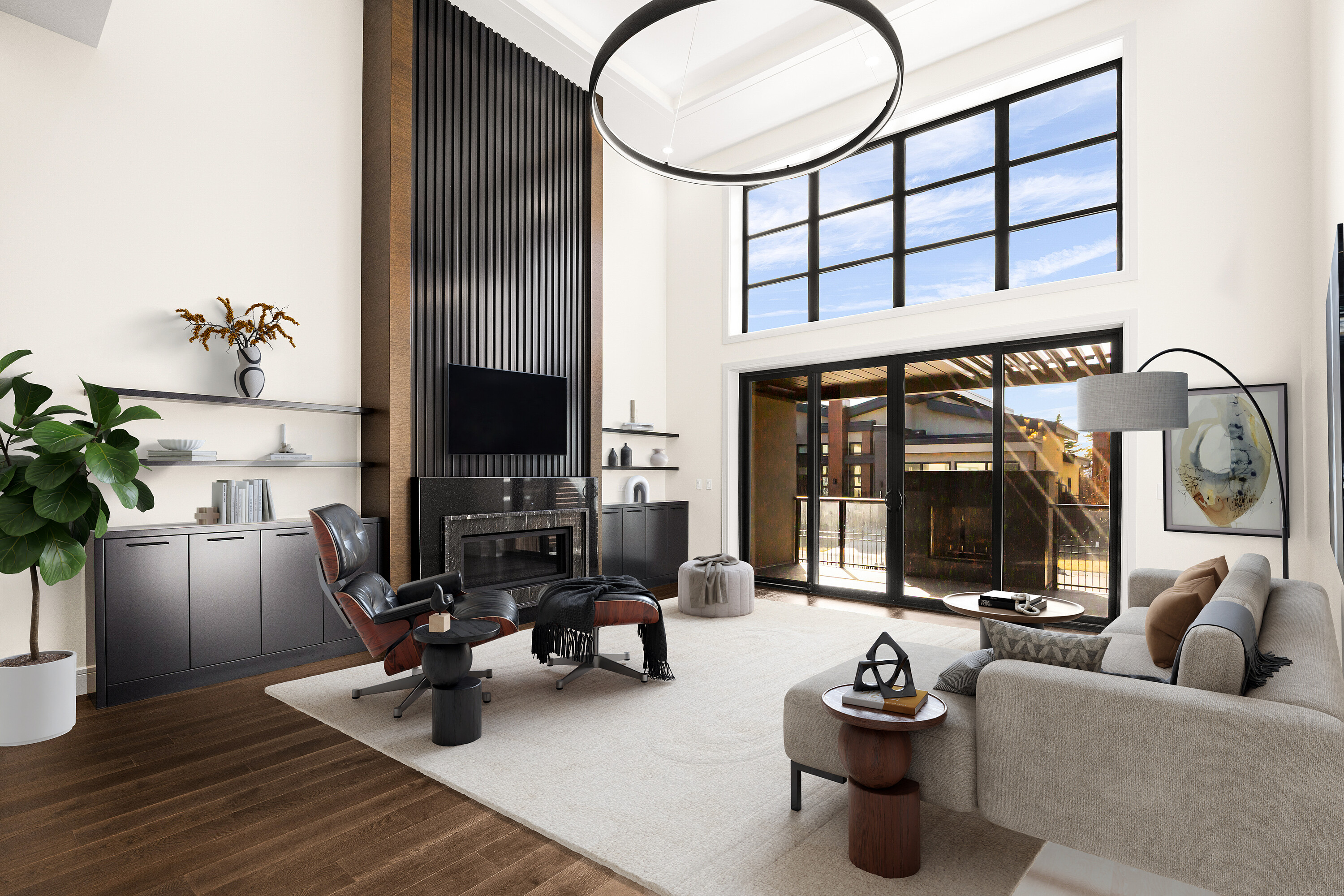 Presenting an opportunity to own a never-lived-in residence in Elveden Court, a prestigious and sold-out community of only 26 bungalow villas on Calgary’s west side. This luxury home represents the pinnacle of "smartsizing," specifically designed for discerning homeowners who refuse to compromise on quality while seeking the ultimate lock-and-leave lifestyle. Whether you are spending your winters south or your weekends in the mountains, this home offers the peace of mind and maintenance-free ease you’ve been looking for without sacrificing bespoke finishes and premium construction. The interior is a masterclass in modern elegance, defined by a high-contrast palette where dark elements meet crisp gallery walls and gleaming floors. The open-concept main level features soaring ceilings, multiple skylights, and expansive windows that flood the space with natural light. A custom fireplace surround reaching the 16’ ceilings anchors the great room creating a chic focal point in the home, while large doors transition seamlessly to a west-facing patio. This outdoor oasis extends the living space and is elevated by a built-in gas fireplace and a remote-controlled louvred pergola, allowing customized sun exposure or protection from the elements while entertaining. The kitchen is a flawless blend of style and utility, featuring premium, integrated Wolf and Sub-Zero appliances, custom cabinetry, plenty of counter space and a commanding island wrapped in deep, inky quartz that provides a sophisticated contrast to the light cabinetry. The main floor continues to impress with a primary suite that serves as a true sanctuary, boasting a walk-in dressing room and a spa-inspired ensuite with in-floor heat, dual vanities, a sizeable shower and a freestanding soaker tub. A private den with sleek barn door access, a mood-filled powder room featuring bold designer wallpaper and a statement pendant light, and a well-appointed laundry room complete the main level, ensuring all your daily essentials are accessible on one floor. The fully developed lower level, with nine-foot ceilings and a second fireplace, is engineered for lifestyle flexibility and hosting. A generous recreation area features a designer wet bar with custom glossy millwork and dual refrigeration, while two additional bedrooms provide ideal accommodations for guests or teens. A flex room offers the perfect footprint for a home gym or hobby space. The spacious lower patio leads directly to the fenced, private west facing yard. The oversized double garage boasts a heated slab, transom windows and ceiling height to accommodate a car lift. Built to an exceptional standard with full Insulated Concrete Form (ICF) construction to the soffit line and triple-glazed windows, this home offers superior sound attenuation and thermal efficiency. Located just minutes from Aspen Landing and the Rocky Mountains, this villa offers an unparalleled blend of privacy and convenience for the next chapter of your life. (Please note: Some images are virtually staged - furniture & decor only)