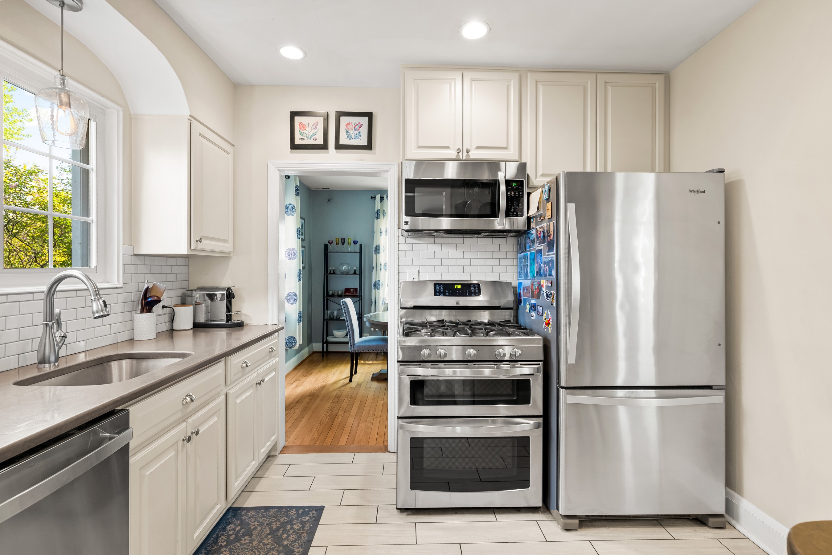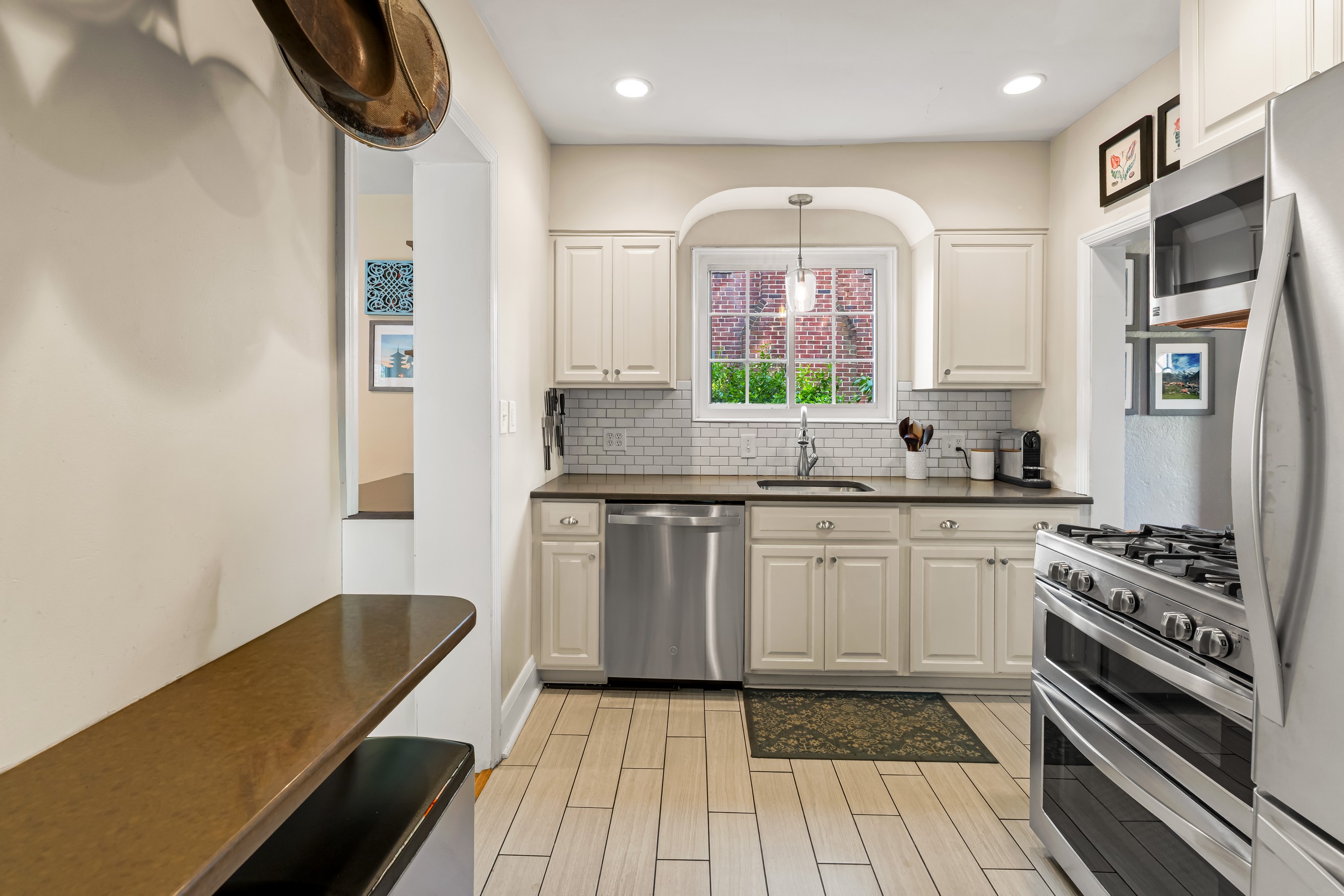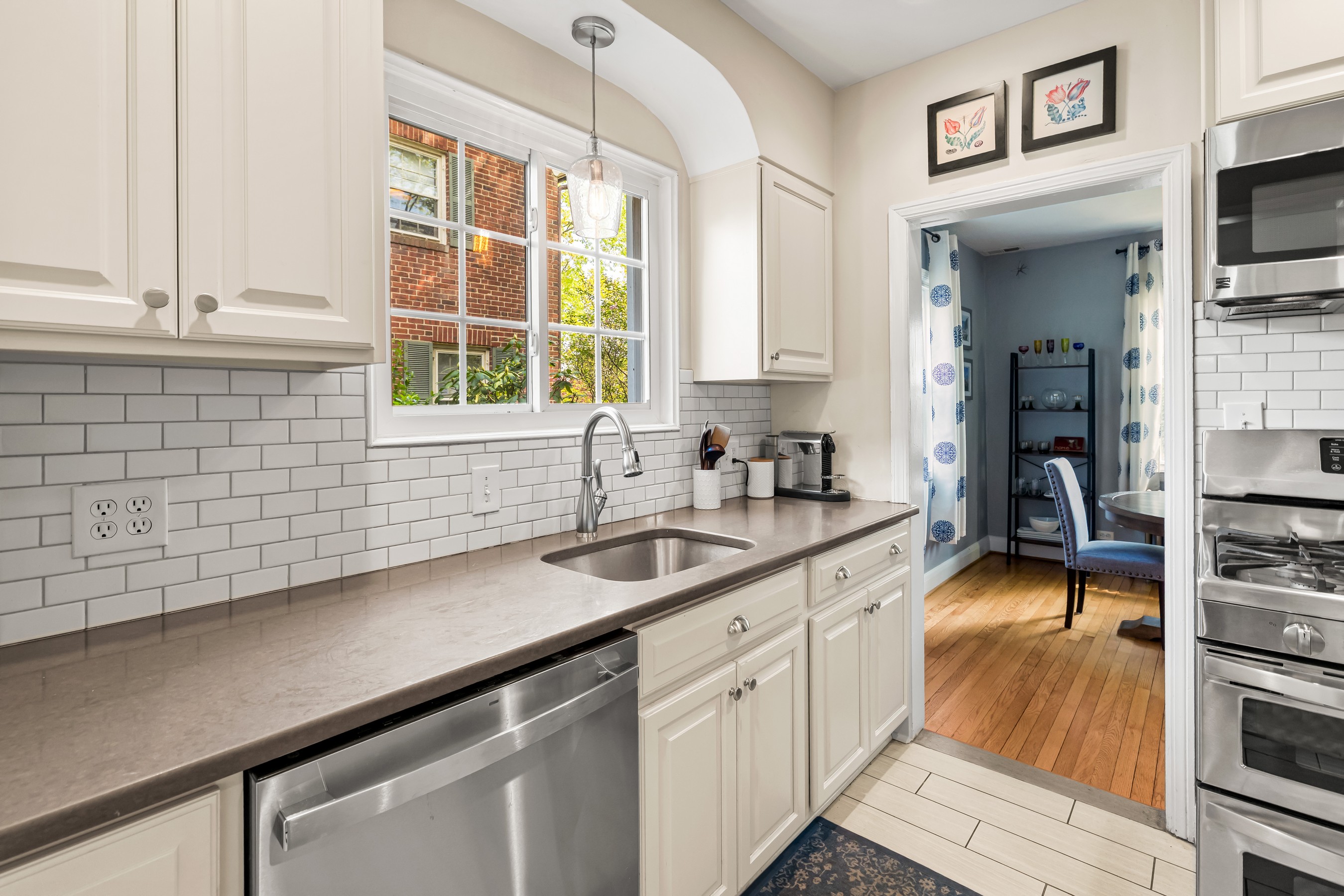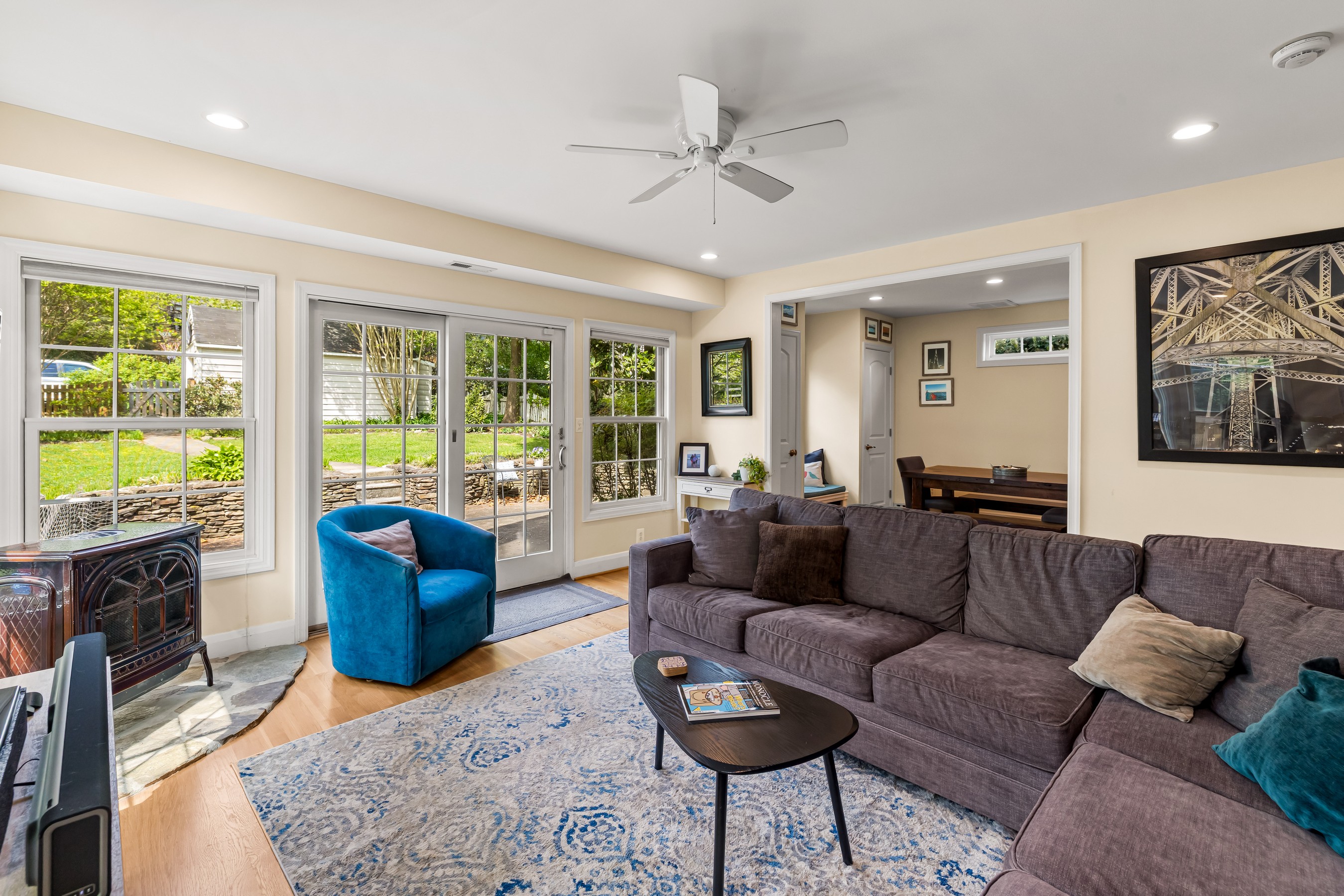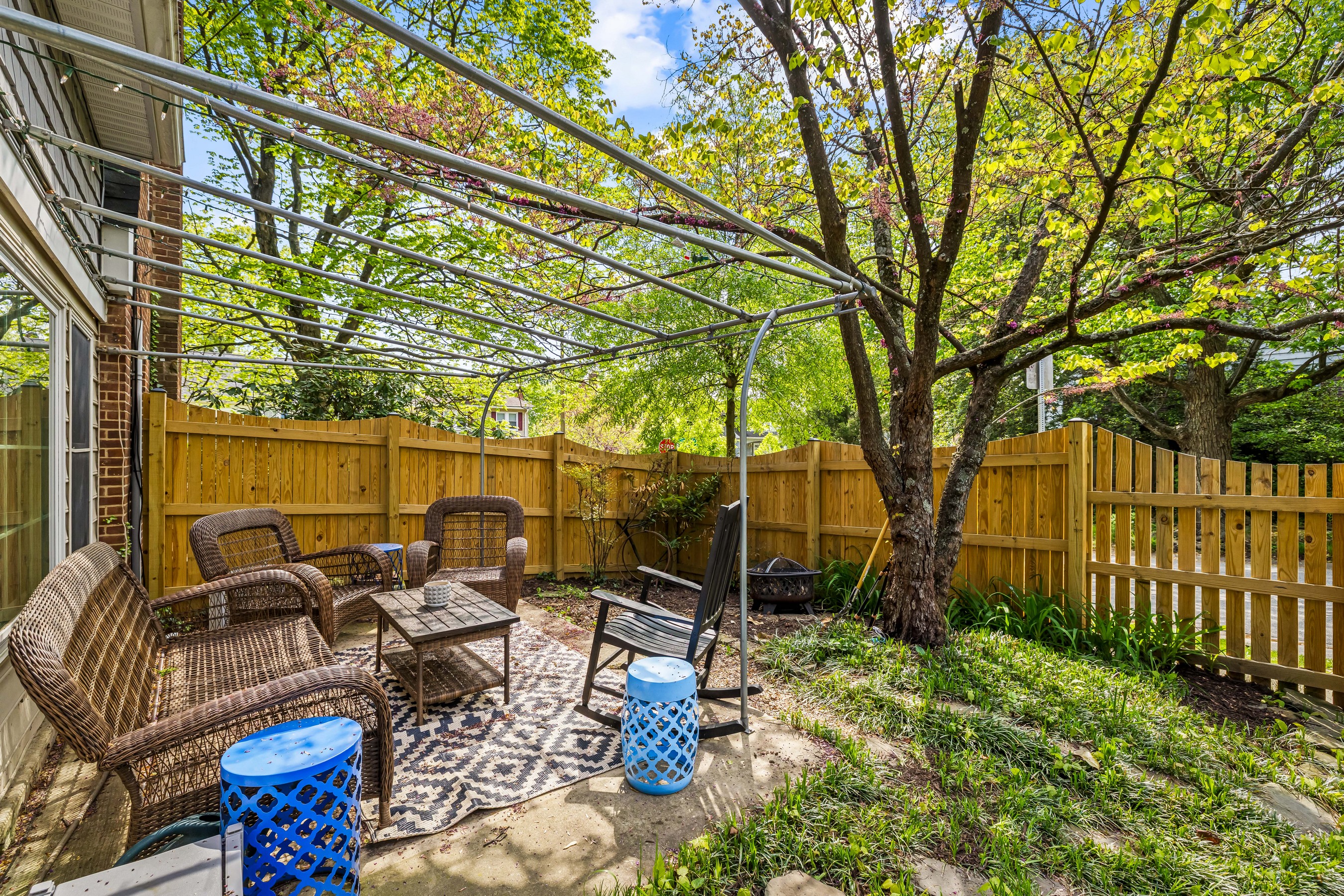 Oozing Stoneleigh charm and beckoning spending relaxing time outdoors, 700 Regester Avenue is well-sited at the intersection of Regester Avenue and Copeleigh Road, perched on a gentle knoll surrounded by stone walls and eight-foot privacy fencing. Plenty of off-street parking is available with the three-car parallel parking pad as well as the driveway and garage. Enter via the side gate into the oasis of green grass, flowering trees and shrubs, and patios. Relax in the evening on the awning-covered side patio. Through the back door, enter the family room which perfectly fits a large sectional. The breakfast room is next, with added closets and pantry. Cook wonderful meals in the kitchen, complete with breakfast bar. Textured stucco walls in the living room and dining room are authentic to the home, and are characteristic of many Stoneleigh homes. Upstairs find three large bedrooms including a recent primary suite addition adding a huge bedroom, walk-in closet and gigantic primary bath. There is also a renovated hall bath. The lower level features another bedroom with full bath. Or use the room as a guest room. There is a four-foot egress window in the room. Storage and laundry complete the other portion of the lower level. You'll love this location, just three blocks to the elementary school and a short walk to the Stoneleigh Pool. Come live the Stoneleigh Experience.