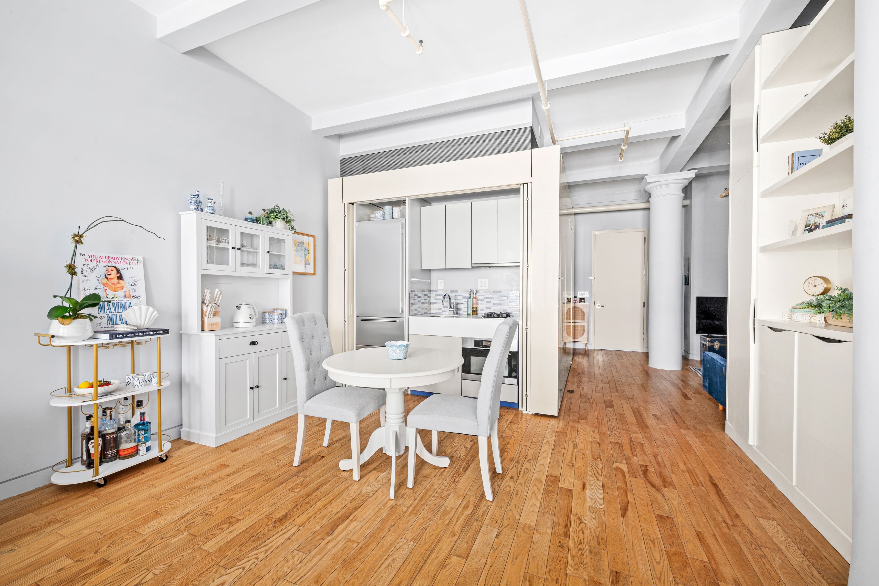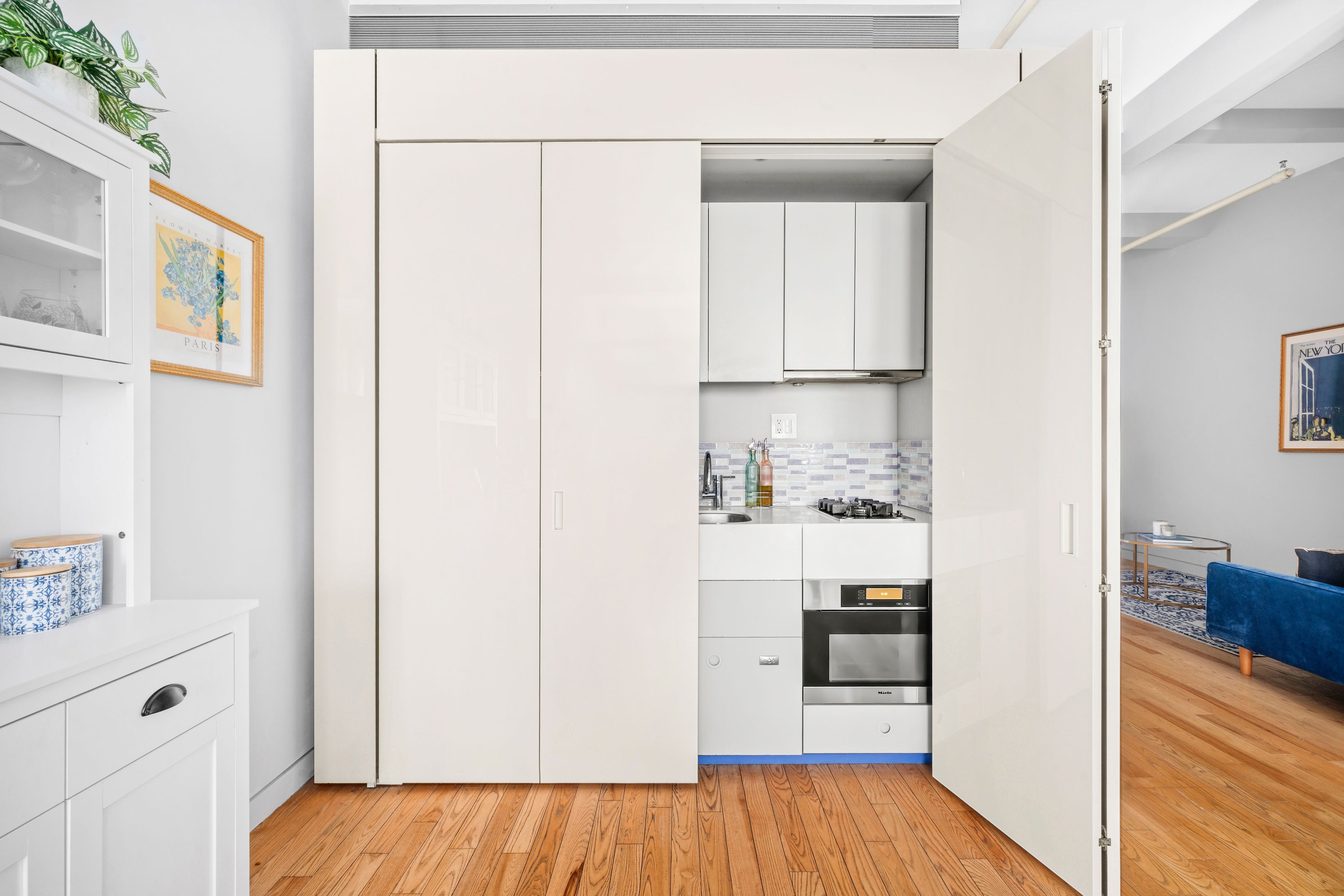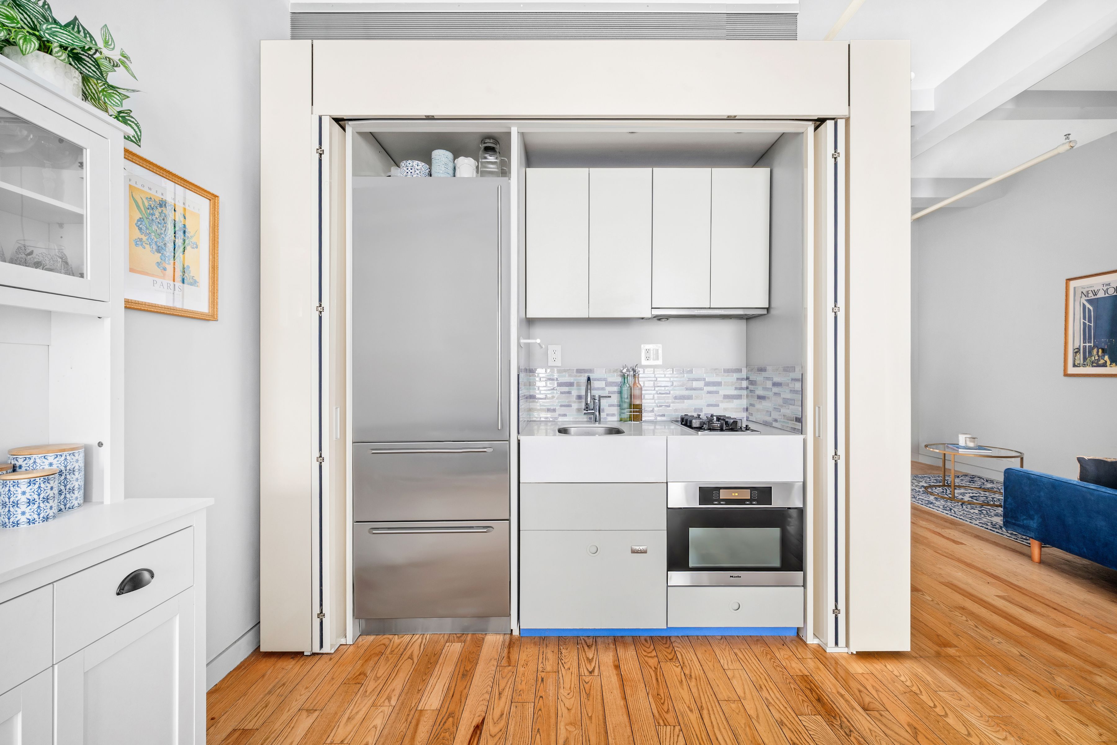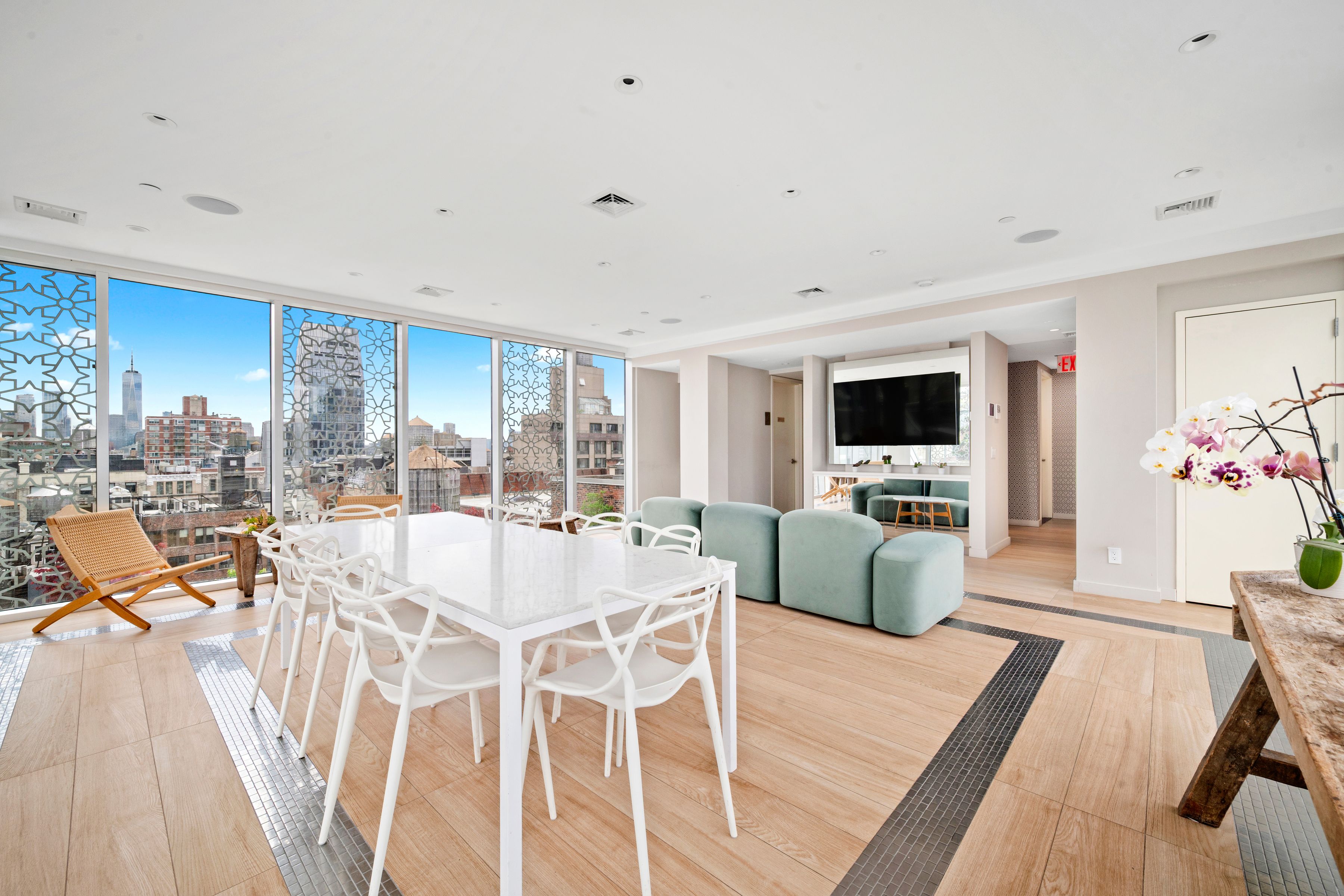 There’s an ease to life in Residence 7B that’s hard to find downtown—open, airy, and effortlessly livable. With approximately 650+/- square feet, ceilings of nearly 11 ft high, and central air, the space feels larger than its footprint, offering that classic downtown loft volume with a more refined, modern sensibility. The main living area is expansive and flexible, easily accommodating a generous seating area, dining table, and workspace without ever feeling crowded. Whether you’re hosting friends or enjoying a quiet night in, the layout just works. Natural flow carries you from living to sleeping to working, with a thoughtfully designed alcove that can function as a living area, a comfortable sleeping area or a tucked-away home office. It’s the kind of space that adapts to how you actually live day to day. The kitchen is sleek and efficient, outfitted with high-end appliances including Miele and Sub-Zero, while the bath offers a calm, spa-like feel with clean finishes and excellent storage. A stacked washer and dryer is seamlessly integrated into the lacquer cabinetry, and storage throughout the apartment is surprisingly generous—something you immediately appreciate once you move in. Jade is a boutique, full-service condominium with a 24-hour attended lobby, fitness room and sauna and steam room. A beautifully designed multi-level rooftop terrace is complete with indoor and outdoor lounge seating with incredible views of the Freedom Tower, Empire State Building an Chrysler Building. And then there’s the location. Just moments from Union Square Greenmarket, Trader Joe’s, and Whole Foods Market, you’re surrounded by some of downtown’s best conveniences, restaurants, and energy—while still having a space that feels like a true retreat from it all. This is the kind of apartment you don’t just pass through—you settle into.