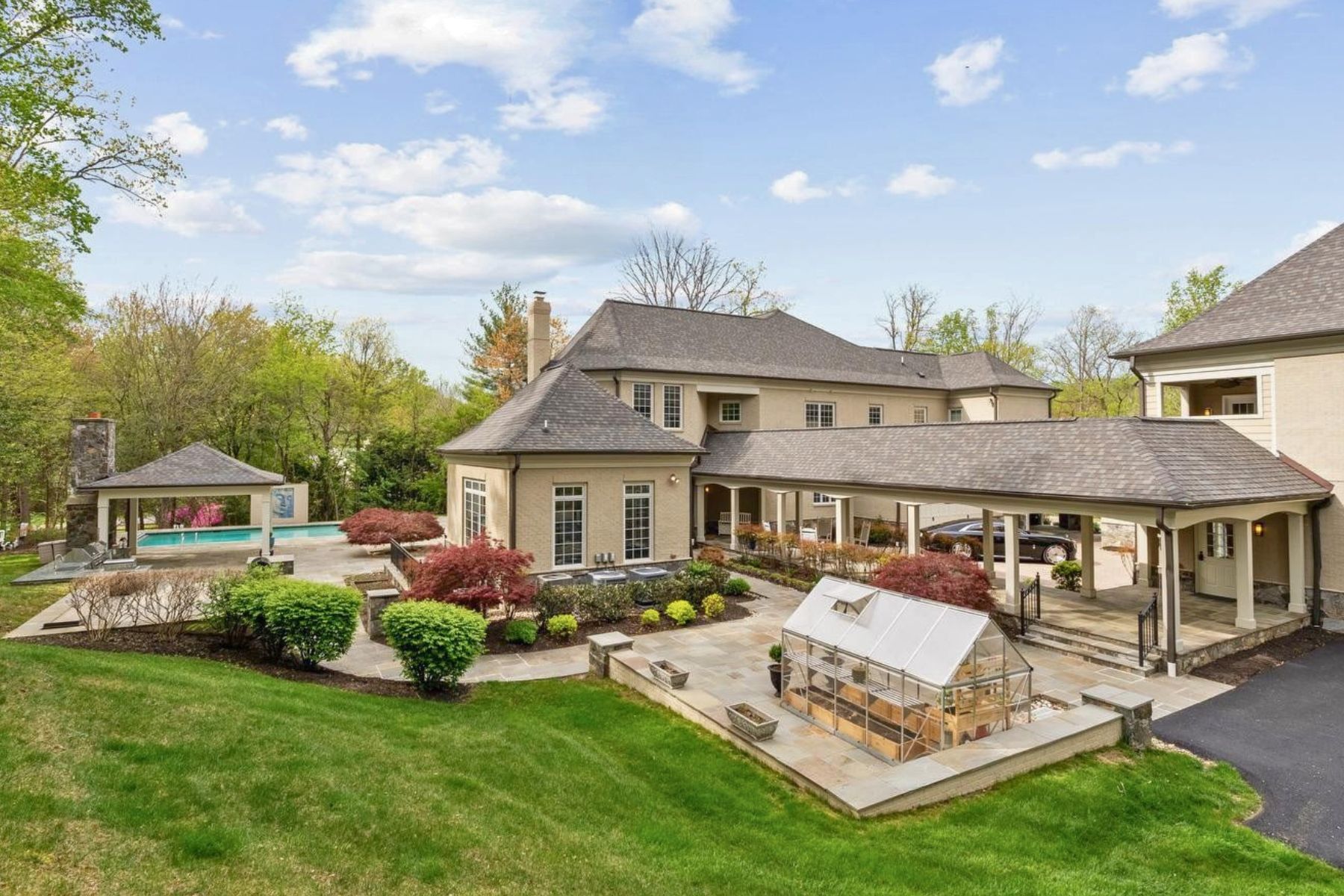 Gracefully positioned at the end of a private cul-de-sac on 2.12 manicured acres, this exceptional French Country estate with a private guest house and resort-style pool offers timeless elegance along the coveted Great Falls–McLean border within the Langley High School pyramid. Built by Keswick Homes, the residence spans 13,448 square feet and showcases soaring ceilings, Brazilian cherry hardwood floors, exquisite millwork, expansive windows, and a three-level elevator. A long private drive leads to a motor court and porte-cochère, setting the tone for the home’s impressive scale and craftsmanship. The chef’s kitchen is beautifully appointed with Sub-Zero, Wolf, and Miele appliances, dual islands, custom cabinetry, and seamless flow to the breakfast room and grand great room with a fireplace. Formal living and dining rooms and light-filled gathering spaces create the perfect balance of luxury and livability. The upper-level primary suite offers a private sitting room, fireplace, balcony, dual custom walk-in closets, and a spa-inspired bath. Rounding out the five en suite bedrooms on this level are a primary-size suite and an independent wing of three generously proportioned bedrooms, one with a zero-entry shower with bench seating, extra-wide doorways, and wide hallway access to the elevator, ideal for multigenerational living. The expansive lower level features a media room, wet bar, billiards, recreation spaces, flex rooms, and guest accommodations. Outdoor living is truly spectacular with a 20x40 heated saltwater pool, retractable cover, outdoor kitchen with Viking appliances, stone fireplace pavilion, and over 6,000 square feet of Pennsylvania bluestone patios and covered porches. A detached 3,000+ square-foot carriage house includes its own kitchen, family room, two bedrooms, and a commercial-grade gym, creating an ideal guest residence, wellness retreat, or multigenerational living environment. Moments from Tysons, McLean, and Washington, this extraordinary estate offers privacy, scale, and resort-style luxury in one of the region’s most prestigious settings.