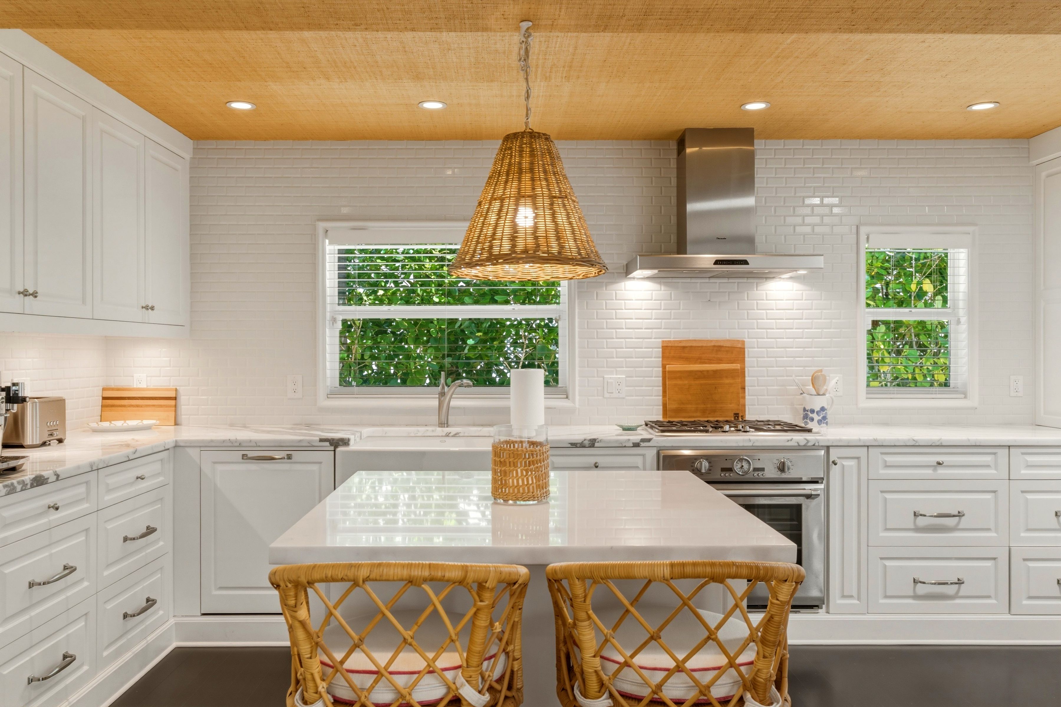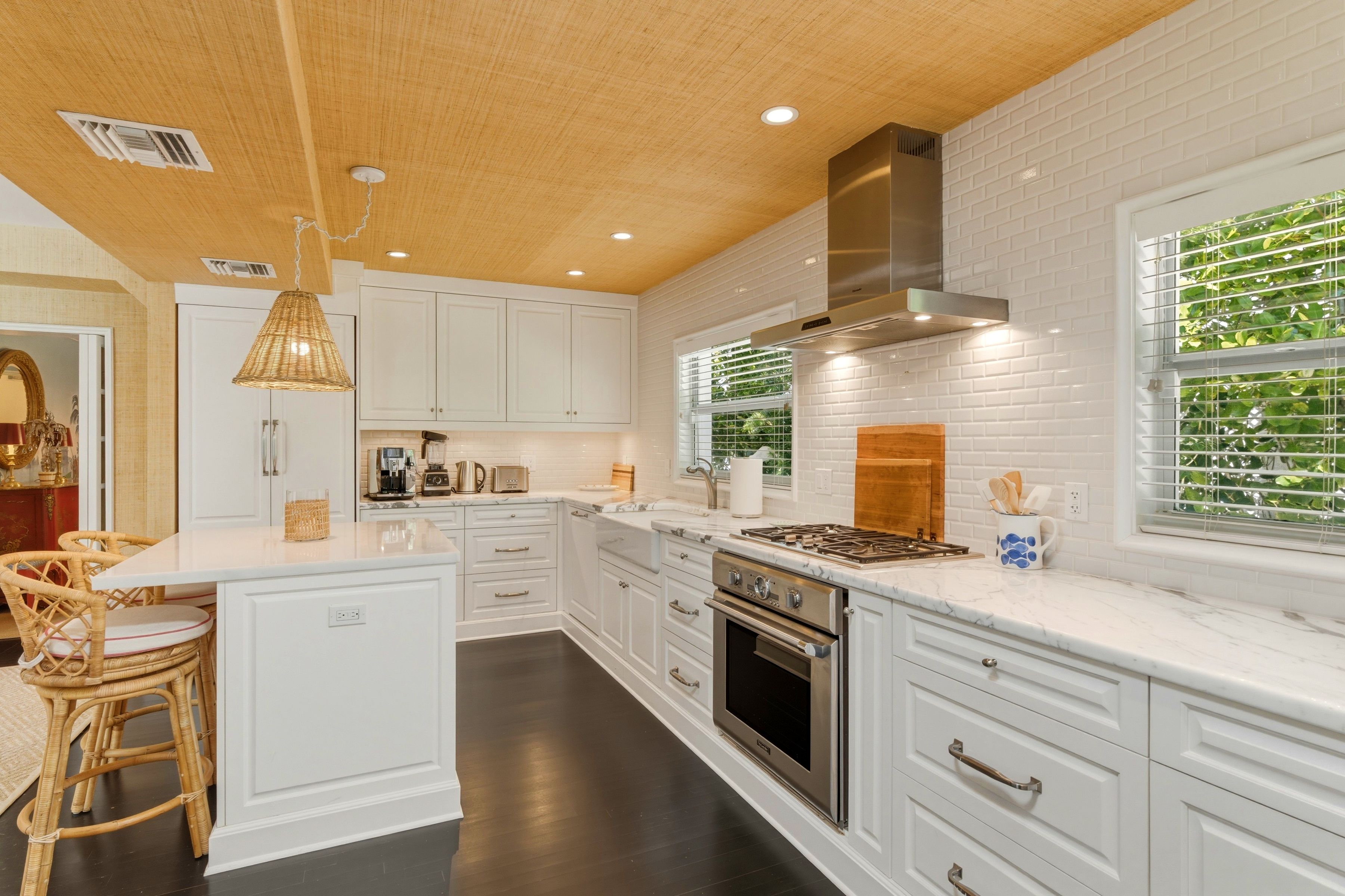In a much-loved ocean block of Palm Beach, this incredibly charming 1937 home has been updated to the nines and is totally move-in ready. At a high elevation, over 10', with full impact glass and a charming separate one-bedroom guest cottage, this 3,700 sqft house lives large. Downstairs is a family room kitchen overlooking a charming pool terrace. There's a formal dining room, a guest suite and a jaw-droppingly beautiful living room with a gas fireplace and high ceilings. Upstairs is all primary suite with sitting room, large modern bath and a delightful blue-lacquered pocket office. The finishes and attention quickly tell you this home was decorated by one of the country's best known designers. Buy it and enjoy- the work is done!