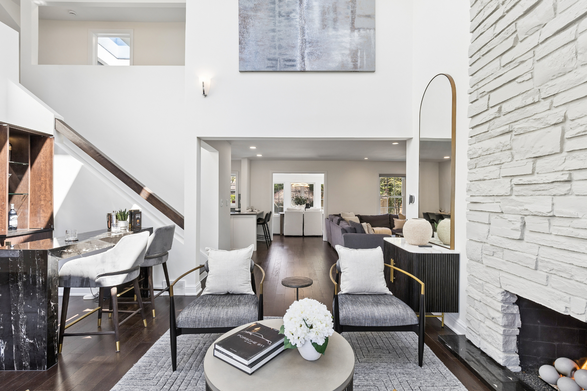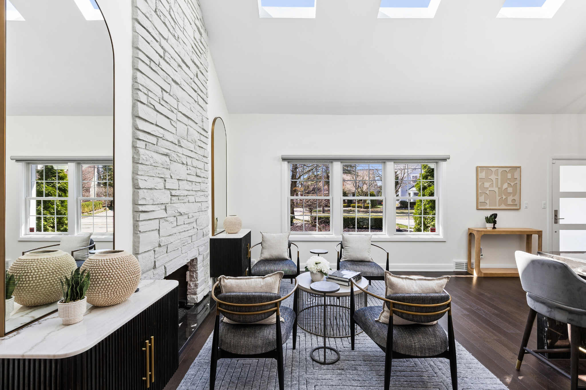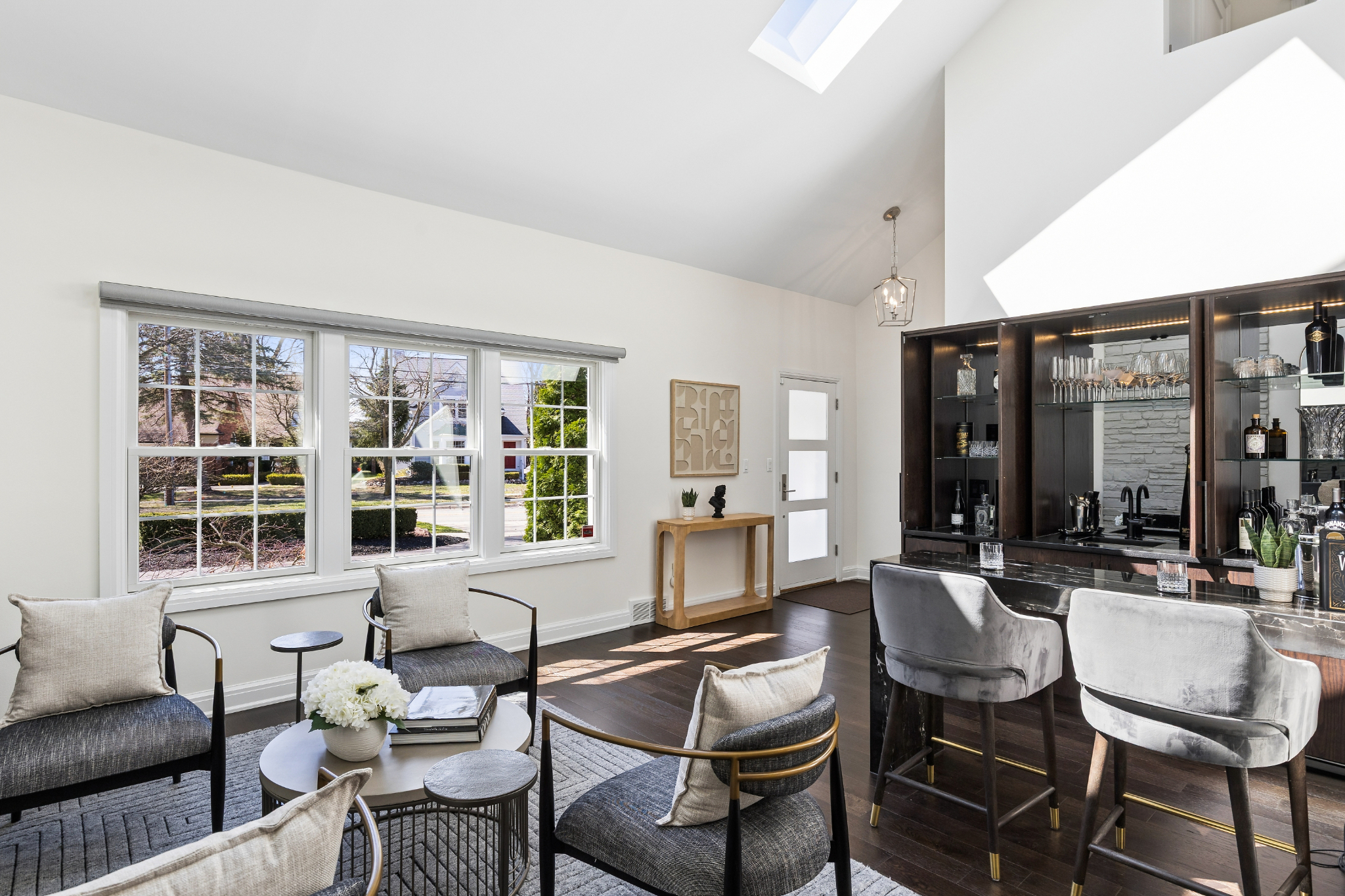 This fully renovated Birmingham residence offers 4 bedrooms, and 4 full bathrooms, with a finished lower level that expands the overall living experience. Open-concept interiors flow seamlessly between the kitchen, dining, and living spaces, anchored by a cathedral stone fireplace and finished with hardwood flooring throughout. The kitchen is thoughtfully appointed with Thermador appliances and streamlined finishes. A built-in wet bar, complete with an ice maker, bar fridge, and custom cabinetry, creates a distinct and elevated setting for entertaining. The primary suite is thoughtfully arranged with generous closets and dressing room space and an adjoining flex room suited for a private office or lounge. The primary bath features dual sinks, a steam shower, heated floors and a deep soaking tub, creating a well-balanced, spa-like setting. The finished lower level extends the home with a full bathroom, additional bedrooms, gym area, and flexible spaces that can adapt to a variety of needs. Outside, a resort-style backyard creates a strong sense of privacy and ease, featuring a fully rebuilt gunite pool and spa, expansive paver patio, artificial turf, and landscaping designed for minimal outdoor maintenance. A gas firepit and integrated exterior sound system enhance the setting for entertaining or everyday enjoyment. An attached large 2-car garage is finished with an epoxy-coated floor and includes electric vehicle charging, while the expansive, curved driveway provides generous parking and a clean approach to the home. Extensive improvements include a new roof, 2024, James Hardie siding and gutters, Andersen windows, new Velux skylights, updated mechanical systems and a full house water filtration system. Located within walking distance of Downtown Birmingham, this home offers convenient access to dining, shopping, parks and schools and daily amenities while maintaining a private residential setting.
