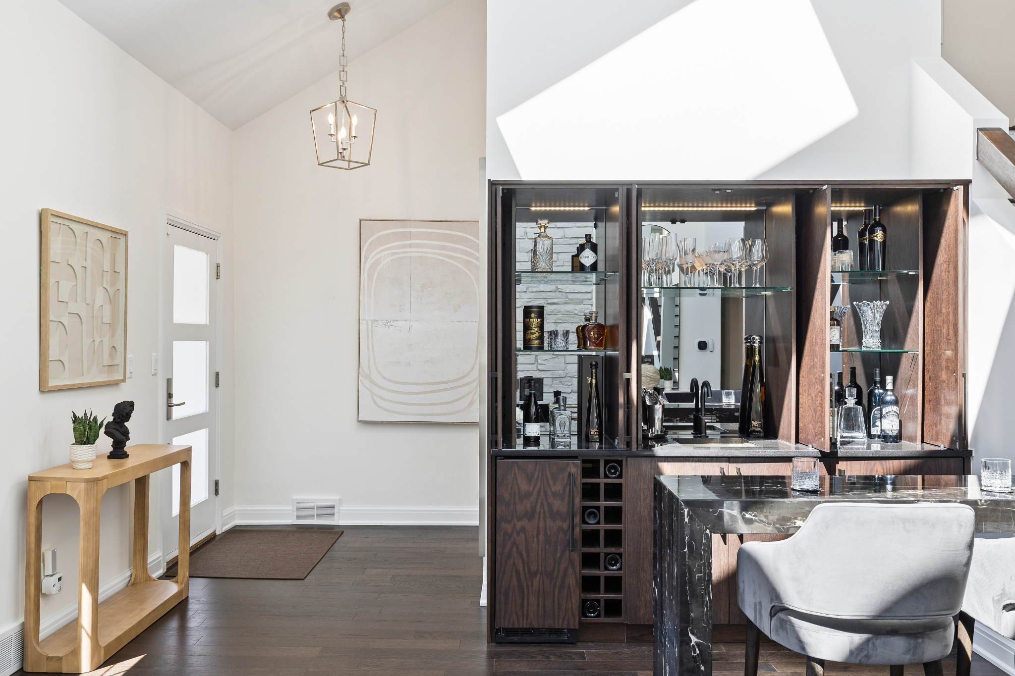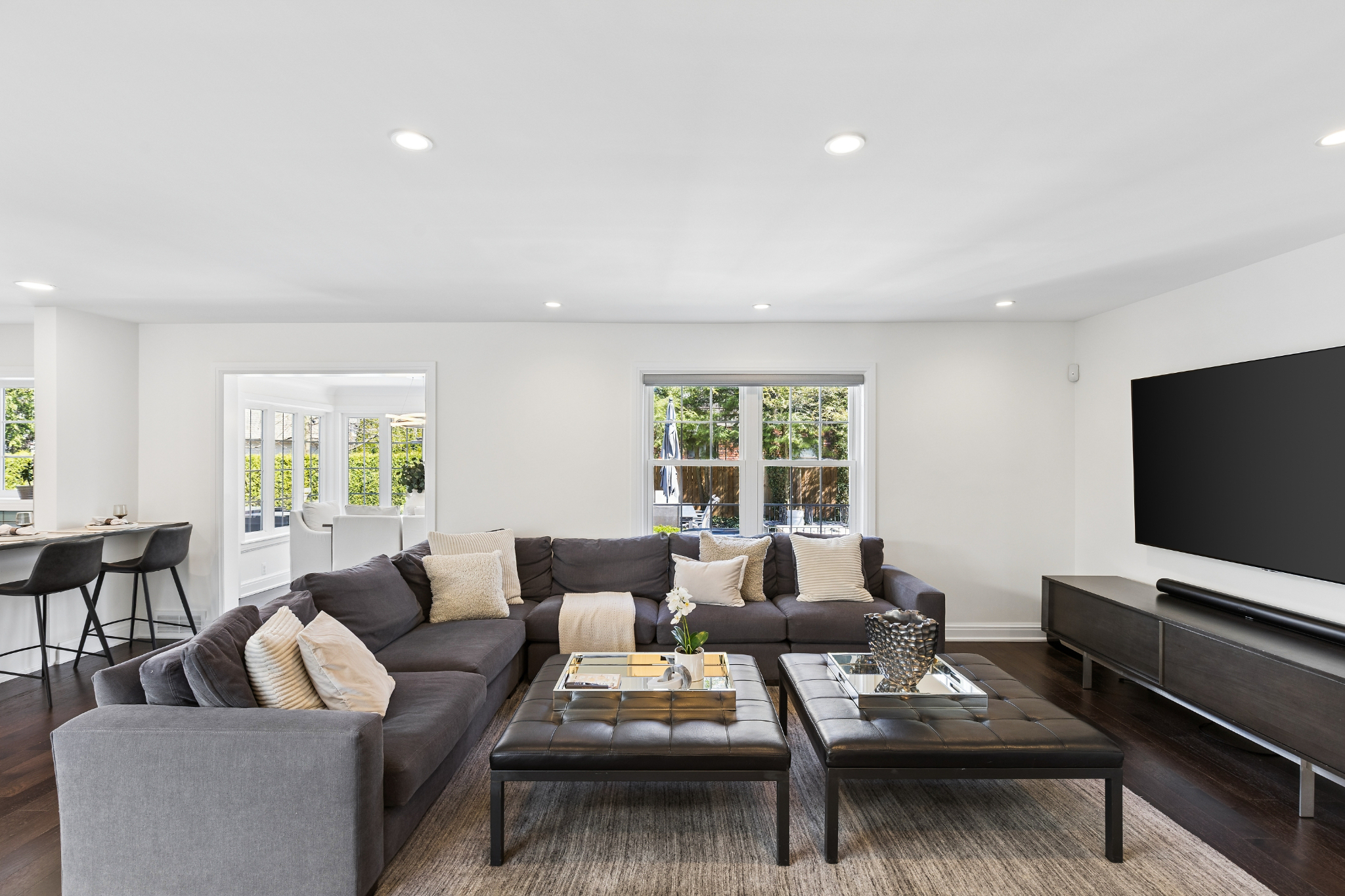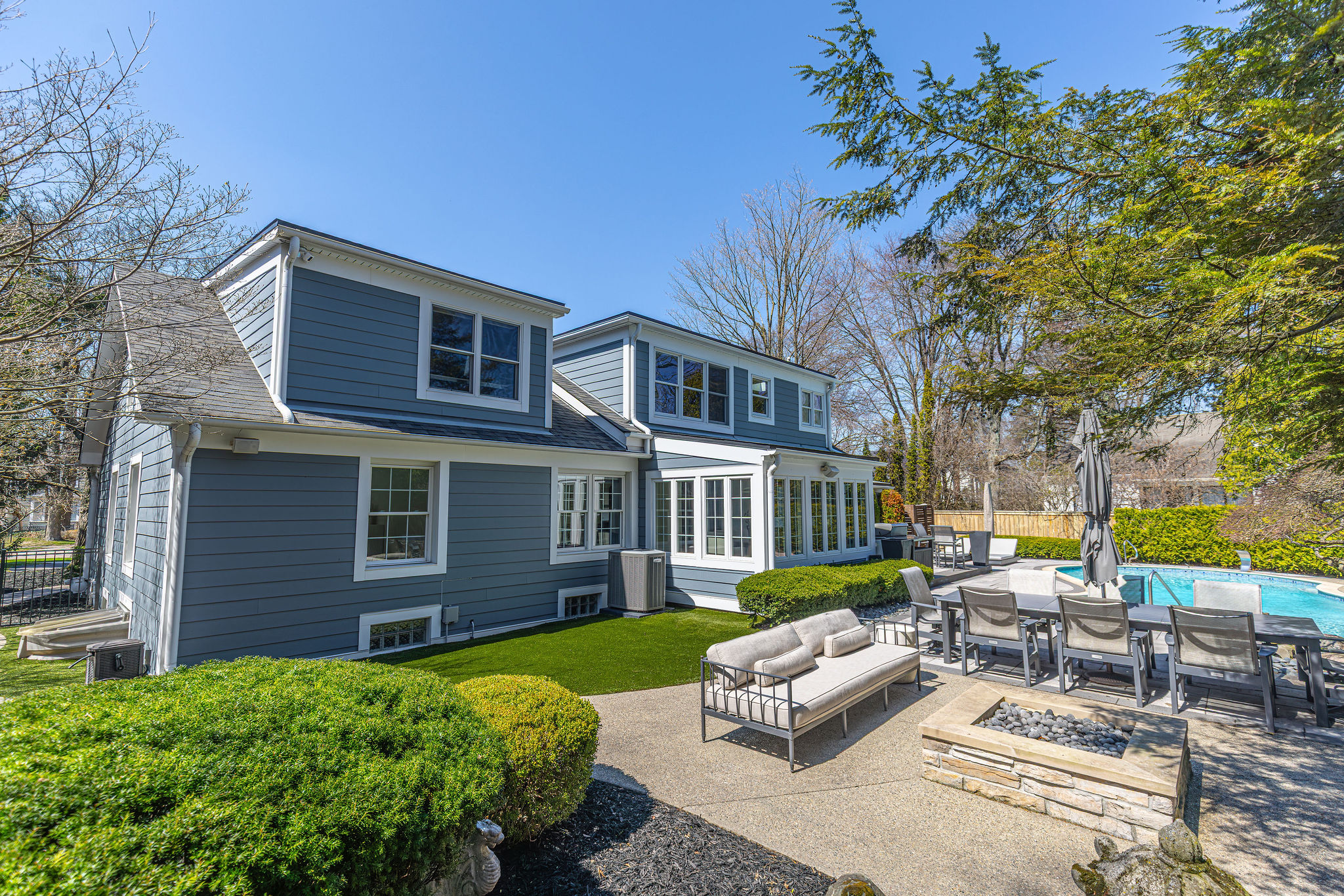 This fully renovated Birmingham residence offers 4 bedrooms, and 4 full bathrooms, with a finished lower level that expands the overall living experience. Open-concept interiors flow seamlessly between the kitchen, dining, and living spaces, anchored by a cathedral stone fireplace and finished with hardwood flooring throughout. The kitchen is thoughtfully appointed with Thermador appliances and streamlined finishes. A built-in wet bar, complete with an ice maker, bar fridge, and custom cabinetry, creates a distinct and elevated setting for entertaining. The primary suite is thoughtfully arranged with generous closets and dressing room space and an adjoining flex room suited for a private office or lounge. The primary bath features dual sinks, a steam shower, heated floors and a deep soaking tub, creating a well-balanced, spa-like setting. The finished lower level extends the home with a full bathroom, additional bedrooms, gym area, and flexible spaces that can adapt to a variety of needs. Outside, a resort-style backyard creates a strong sense of privacy and ease, featuring a fully rebuilt gunite pool and spa, expansive paver patio, artificial turf, and landscaping designed for minimal outdoor maintenance. A gas firepit and integrated exterior sound system enhance the setting for entertaining or everyday enjoyment. An attached large 2-car garage is finished with an epoxy-coated floor and includes electric vehicle charging, while the expansive, curved driveway provides generous parking and a clean approach to the home. Extensive improvements include a new roof, 2024, James Hardie siding and gutters, Andersen windows, new Velux skylights, updated mechanical systems and a full house water filtration system. Located within walking distance of Downtown Birmingham, this home offers convenient access to dining, shopping, parks and schools and daily amenities while maintaining a private residential setting.
