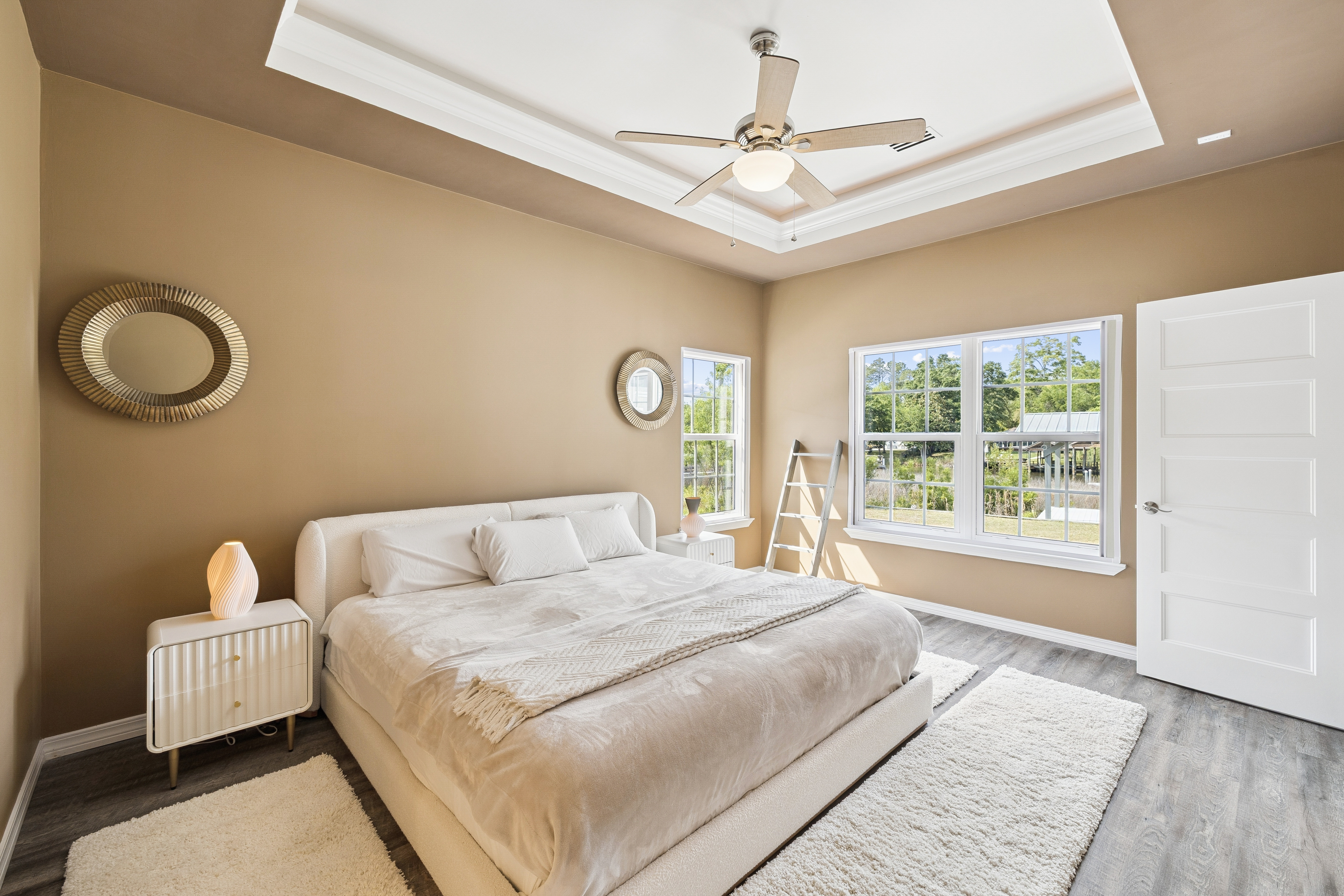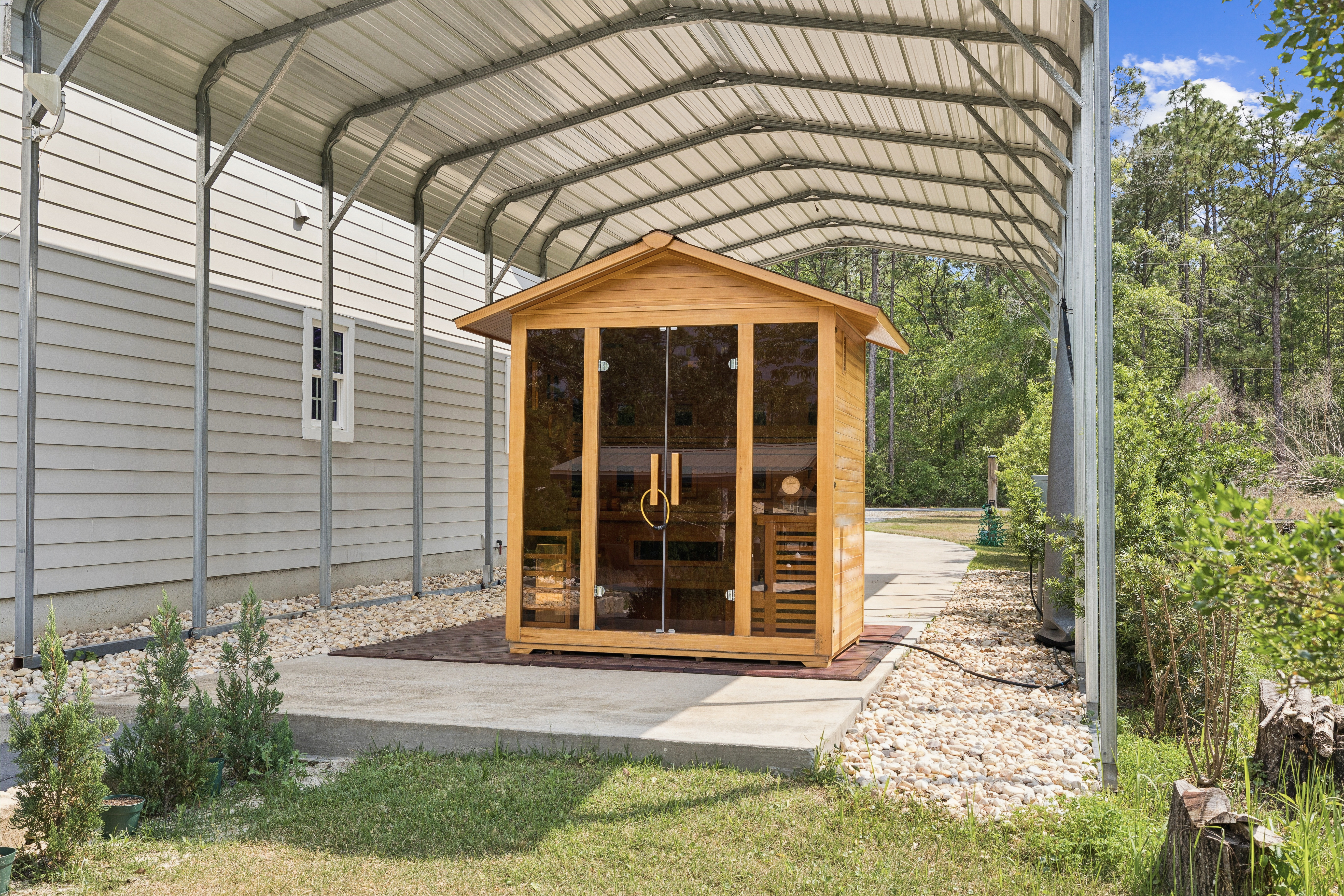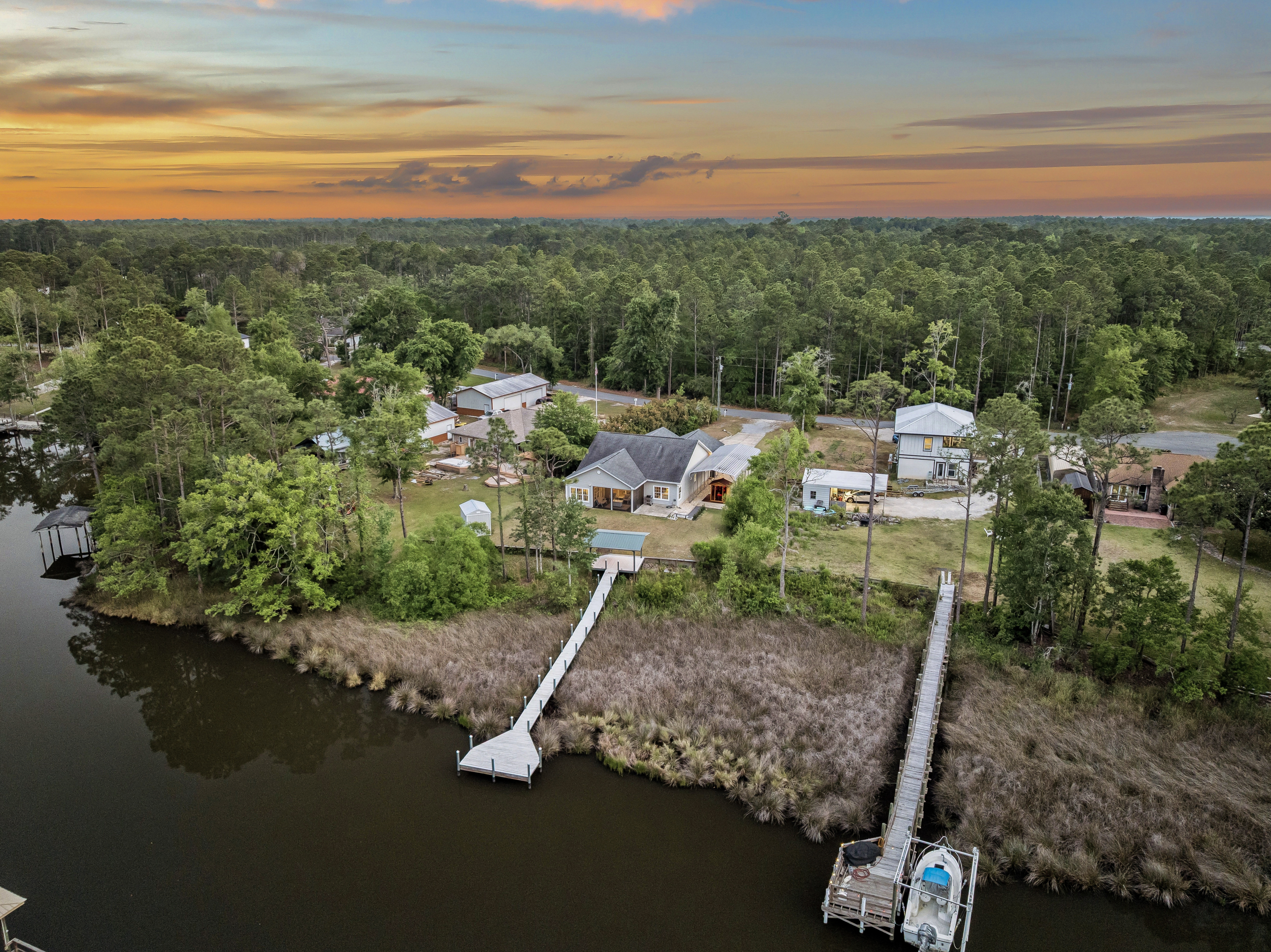 Tucked along the bayou in Freeport, just north of the 331 bridge, this single-story residence offers a quiet, relaxed approach to waterfront living just minutes from 30A.Positioned directly on the water, the property is anchored by a private dock with covered seating and approximately five-minute access to the bay and open water. Spend mornings heading out for a quick boat ride, afternoons on the water, or evenings unwinding at the dock as the sun sets. It’s a setup that makes it easy to enjoy the water regularly, whether you’re boating, fishing, or simply taking in the setting.Built in 2018 and meticulously maintained, the home features a light-filled, open-concept layout that connects the kitchen, dining, and living spaces. Large windows draw in natural light and frame views of the bayou, creating a comfortable, easy flow throughout. The kitchen is both functional and well-finished, offering quartz countertops, shaker-style cabinetry, stainless steel appliances, and an oversized island suited for everyday living and casual gatherings. The layout is clean and practical. The primary suite is positioned at the rear of the home to take advantage of the water views and includes a walk-in closet with direct access to the laundry room, along with a spacious bath featuring dual vanities and a walk-in shower. A true second bedroom sits at the front, while an additional enclosed space off the main living area offers flexibility as an office, sunroom, or potential third bedroom.Outdoor living is equally considered. A screened porch overlooks the bayou, with additional space for grilling and gathering. Beneath the oversized carport, a private sauna adds a refined layer to the home’s outdoor experience. Additional features include a two-car garage, covered RV parking with power and water hookups, and a dual-fuel whole-house generator capable of running on gasoline or LP. Set along a quiet, single-street stretch with no HOA, the property offers a sense of calm and space while remaining close to Freeport, the 331 corridor, and the beaches of 30A.