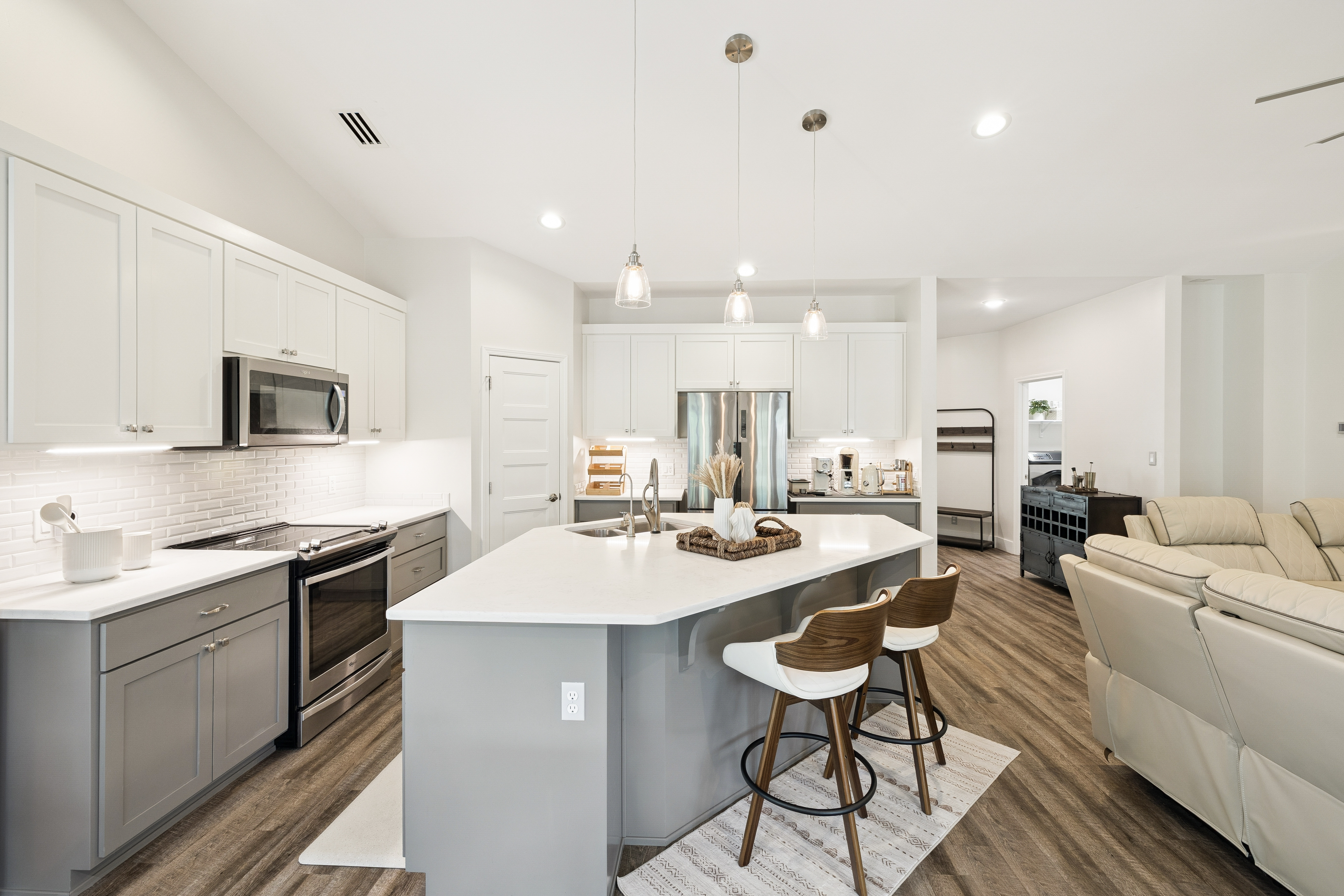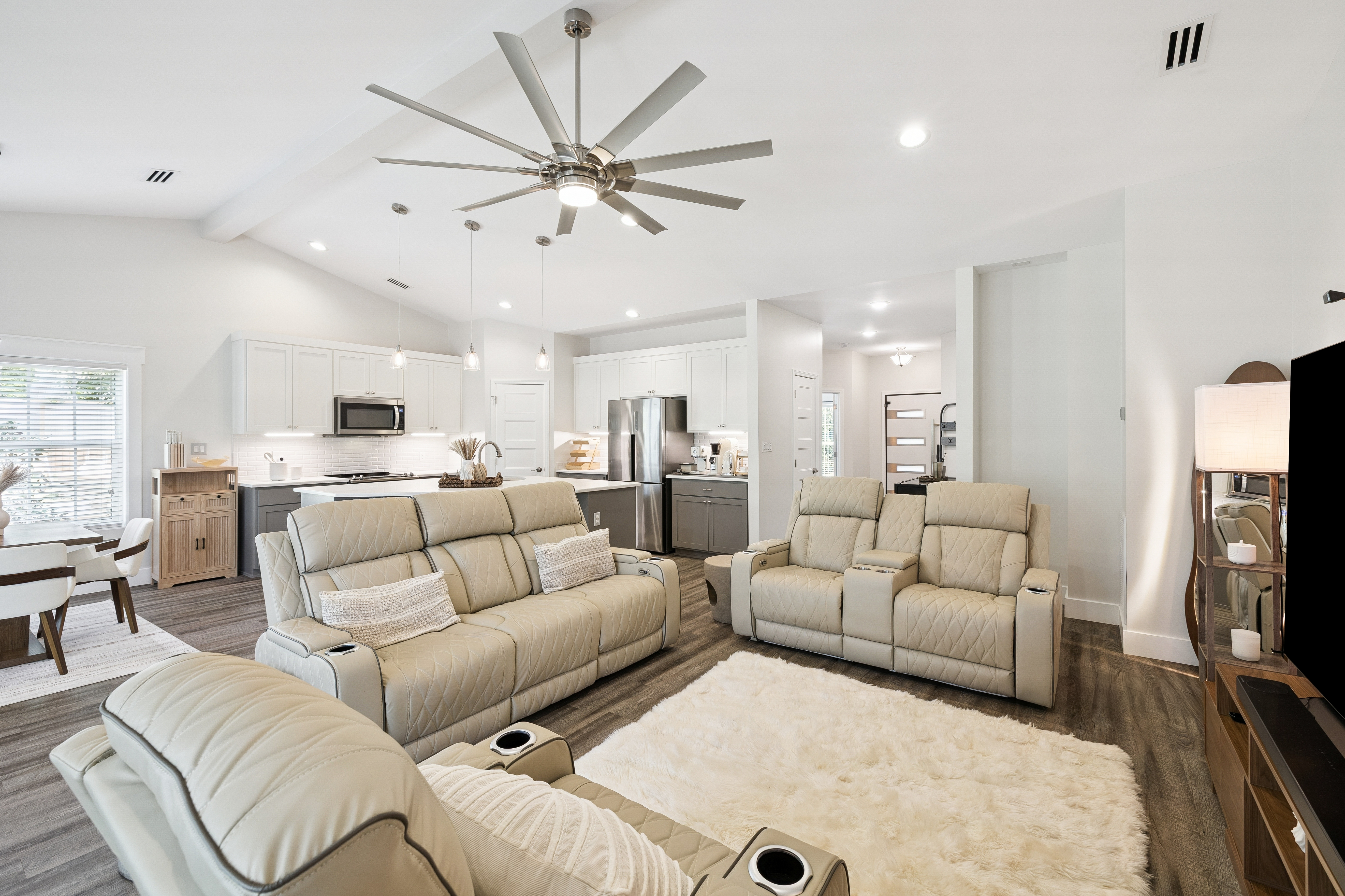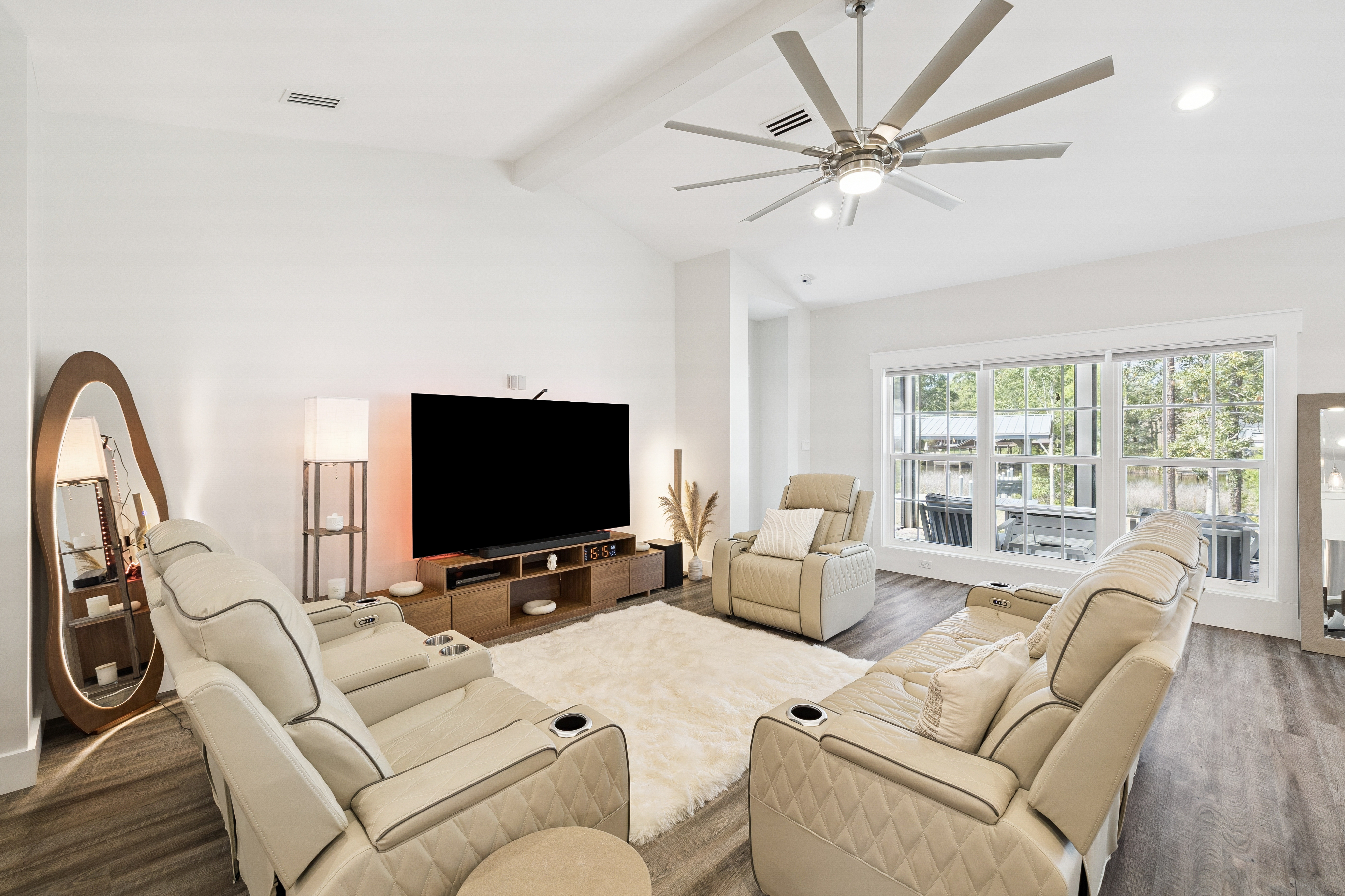 Tucked along the bayou in Freeport, just north of the 331 bridge, this single-story residence offers a quiet, relaxed approach to waterfront living just minutes from 30A.Positioned directly on the water, the property is anchored by a private dock with covered seating and approximately five-minute access to the bay and open water. Spend mornings heading out for a quick boat ride, afternoons on the water, or evenings unwinding at the dock as the sun sets. It’s a setup that makes it easy to enjoy the water regularly, whether you’re boating, fishing, or simply taking in the setting.Built in 2018 and meticulously maintained, the home features a light-filled, open-concept layout that connects the kitchen, dining, and living spaces. Large windows draw in natural light and frame views of the bayou, creating a comfortable, easy flow throughout. The kitchen is both functional and well-finished, offering quartz countertops, shaker-style cabinetry, stainless steel appliances, and an oversized island suited for everyday living and casual gatherings. The layout is clean and practical. The primary suite is positioned at the rear of the home to take advantage of the water views and includes a walk-in closet with direct access to the laundry room, along with a spacious bath featuring dual vanities and a walk-in shower. A true second bedroom sits at the front, while an additional enclosed space off the main living area offers flexibility as an office, sunroom, or potential third bedroom.Outdoor living is equally considered. A screened porch overlooks the bayou, with additional space for grilling and gathering. Beneath the oversized carport, a private sauna adds a refined layer to the home’s outdoor experience. Additional features include a two-car garage, covered RV parking with power and water hookups, and a dual-fuel whole-house generator capable of running on gasoline or LP. Set along a quiet, single-street stretch with no HOA, the property offers a sense of calm and space while remaining close to Freeport, the 331 corridor, and the beaches of 30A.