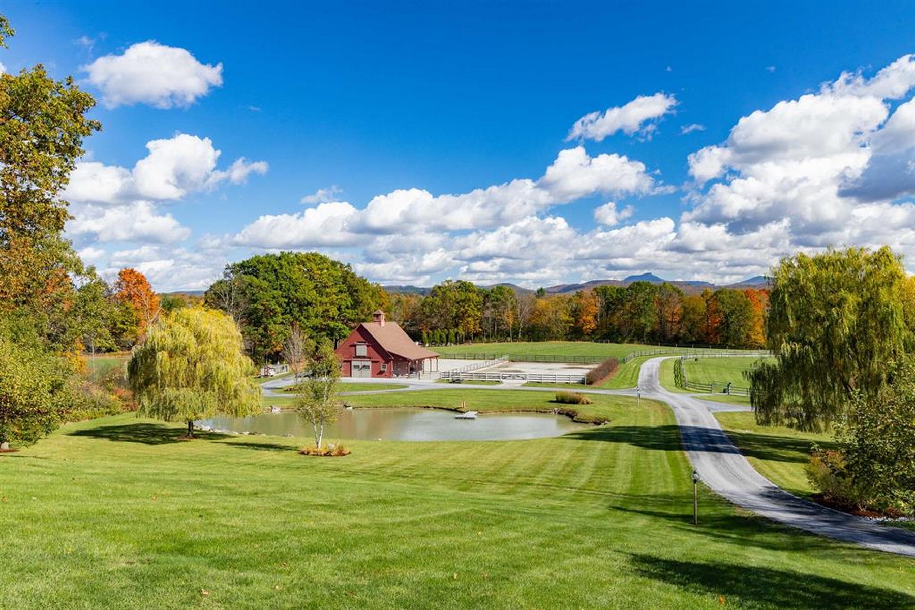 Welcome to your own slice of Vermont paradise47 private acres with jaw-dropping 180-degree views of the Green Mountains and room to truly live. The main house is designed for comfort and connection, with two primary en-suites (one on each level), three additional bedrooms, a terrific high-end country kitchen, and bright, open living spaces that flow onto a cozy front porch with a fireplaceperfect for soaking in those sunsets. The patio is a standout featureperfectly positioned to take in the views, with a spacious firepit ready for cozy evenings. Set out your Adirondack chairs, sip your morning coffee, and watch the sunrise paint the mountains. Guests will never want to leave the charming Adirondack-style guest house, offering about 1,000 square feet of inviting space with a vaulted great room, one bedroom, full bath, and its own two-car garage. Outside, the fun really beginsexplore open meadows and wooded trails, take a dip in your private swimming pond complete with a dock, or simply enjoy the peace and privacy of your surroundings. The classic barn with five horse stalls and a tack room is ready for equestrian pursuits or could easily transform into the ultimate game room, fitness studio, or creative escape. Theres even a buildable lot for bringing family or friends along to create your own mini compound. Dreaming of gardens, farm-to-table living, or even a small vineyard? This sunny property is ready for it all. And when you do feel like venturing out, youre just 15 minutes from Lake Champlain, 20 minutes to Burlington, and 50 minutes to Sugarbush Resort for year-round adventure.