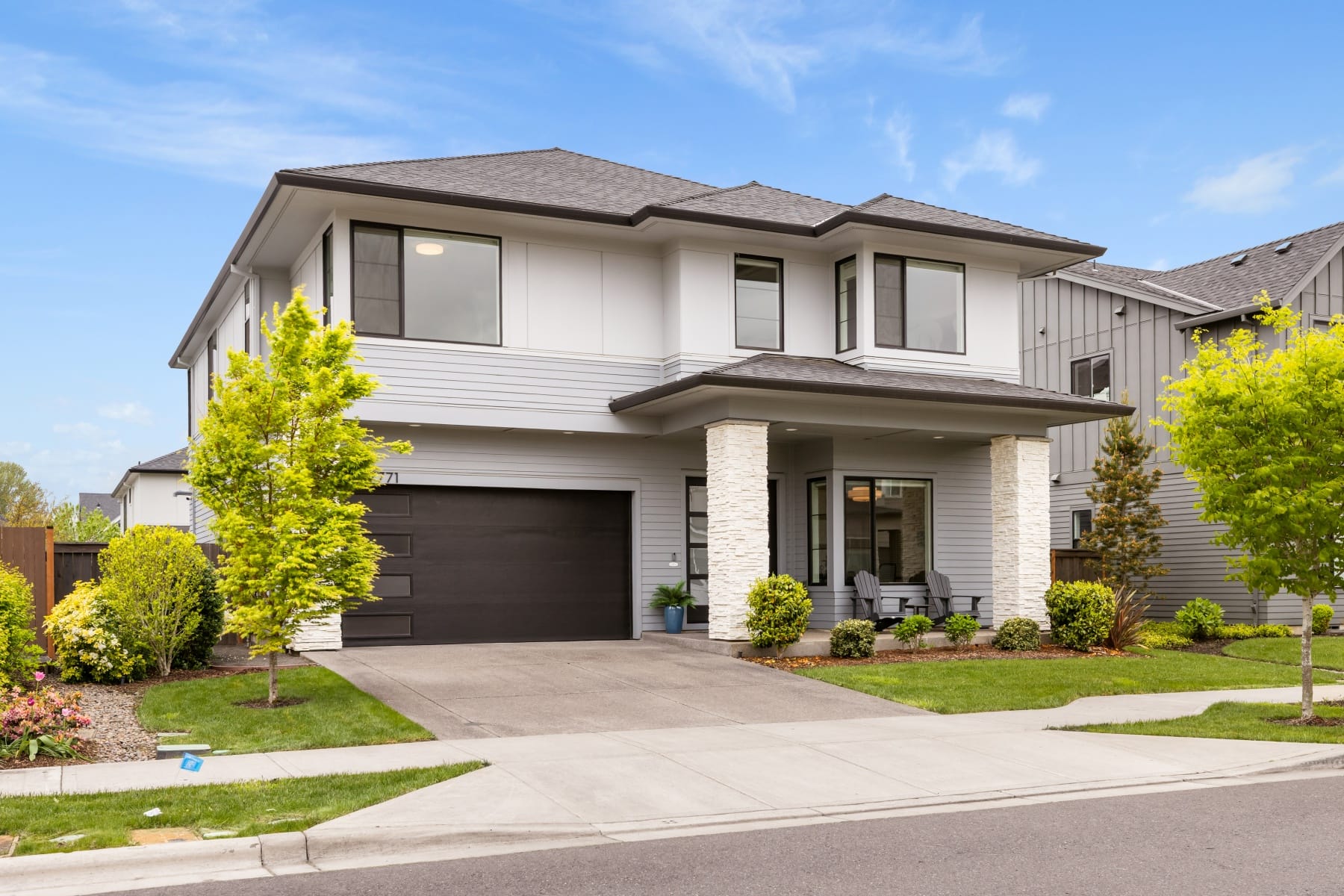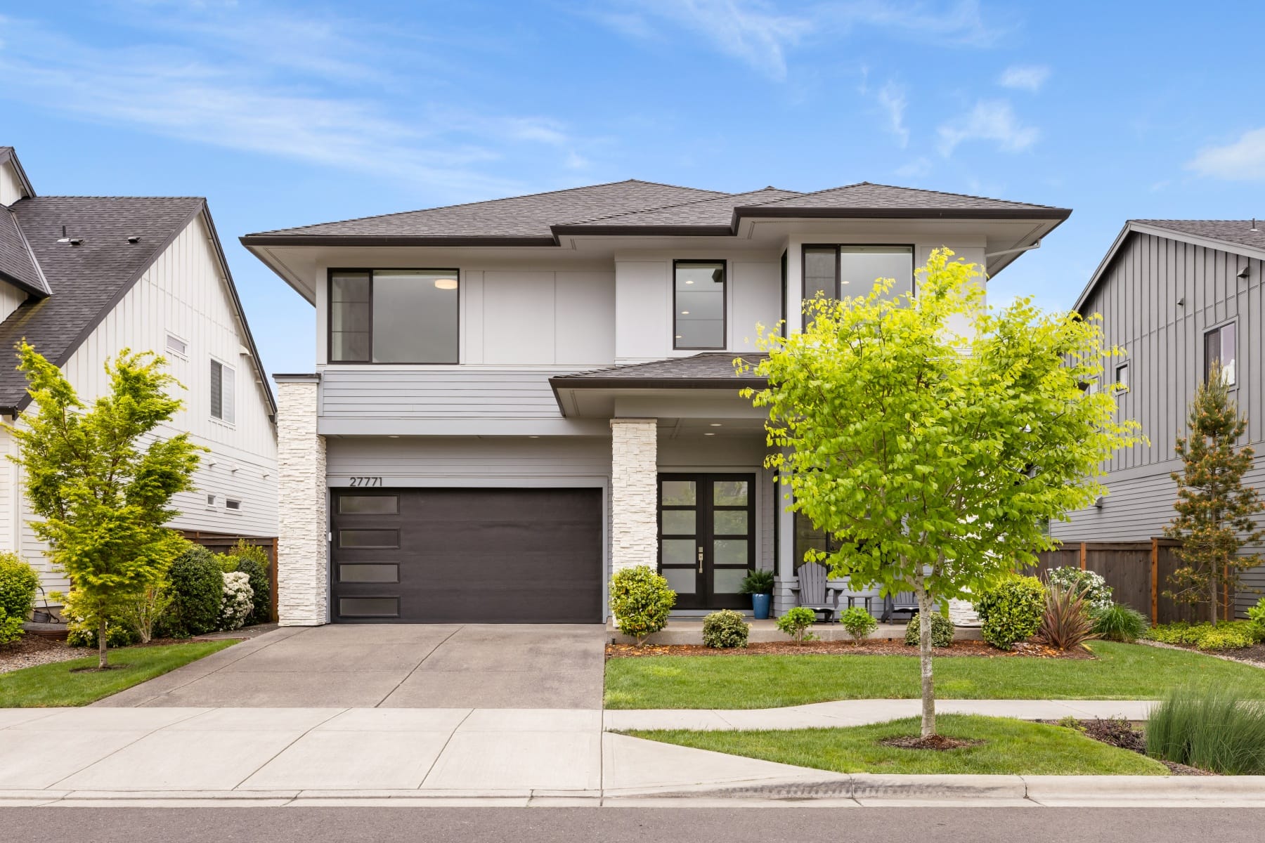 Built by Street of Dreams builder West Hills Homes NW, this home offers luxury living in the highly desirable Frog Pond neighborhood. Thoughtfully designed with high-end finishes, modern comfort, abundant natural light, and unique details rarely found in new construction, this 5-bedroom, 3-bath home blends sophistication with everyday livability. From the moment you enter, you're welcomed by hardwood floors, high ceilings, and an open-concept layout that creates a seamless flow throughout the main living spaces along with a main-level bedroom and bathroom, ideal for guests, multigenerational living, or a home office. The chef's kitchen is the heart of the home, featuring quartz countertops, upgraded painted cabinetry, stainless steel appliances, and a spacious prep pantry and walk-in pantry. The upper level features the primary suite as a true retreat with a spa-like bathroom complete with a soaking tub, double vanities, a walk-in shower, and an expansive walk-in closet. Three additional bedrooms and a loft/bonus room provide flexible space for a media room, playroom, or home gym. A well-appointed laundry room with sink and storage adds everyday convenience. Ideally situated on a fantastic lot across from a neighborhood park, with additional parks and nature trails nearby, and convenient access to Wilsonville, Lake Oswego, and Stafford, this home presents a rare opportunity to own a beautifully crafted residence in one of the area's most exciting and growing communities.
