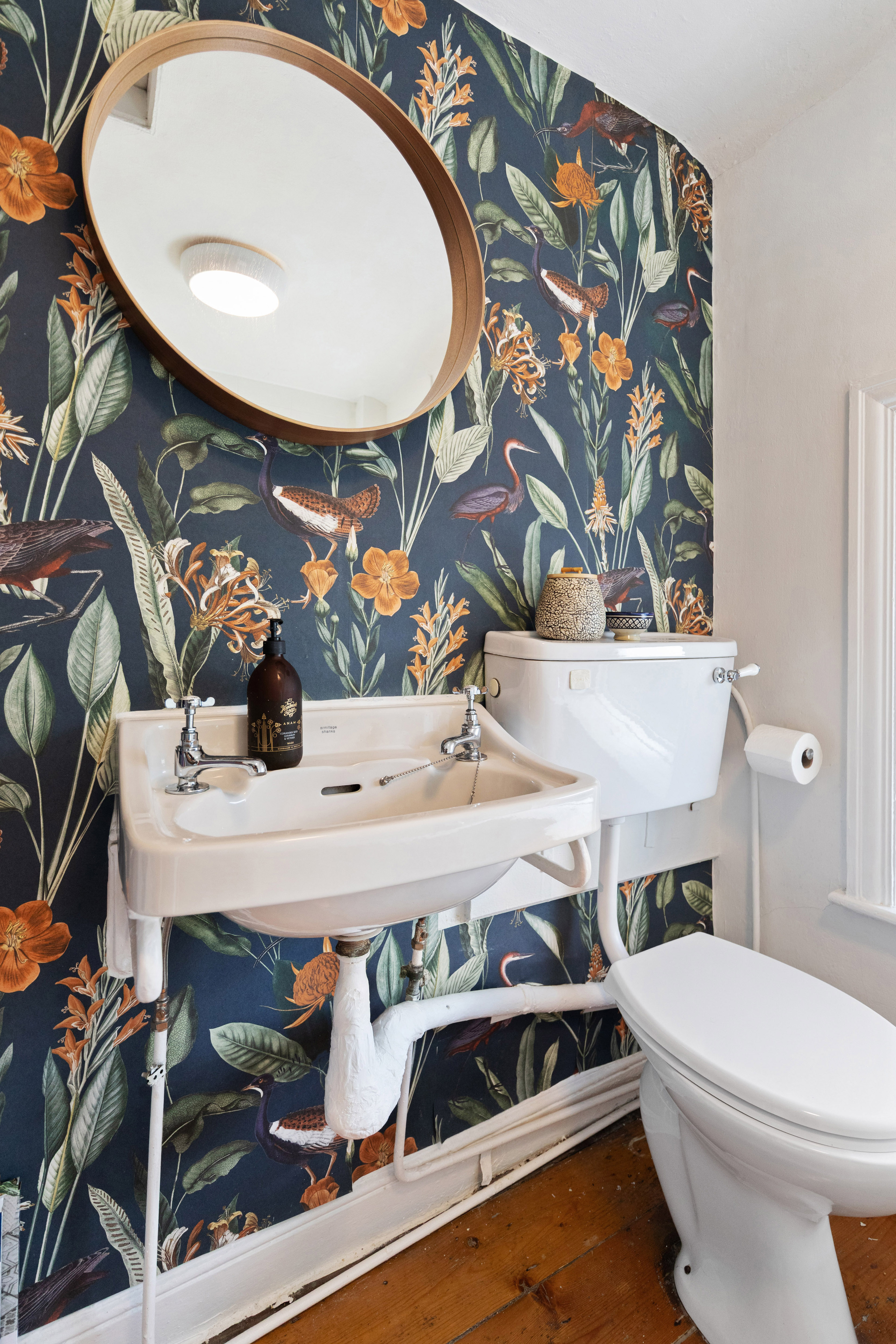 The bathroom is located on the upper level, featuring original pine flooring, bath, Triton shower, excellent built in storage and a double glazed window providing natural light and ventilation. Additional storage and a Miele washing machine are discreetly housed on this level also.
