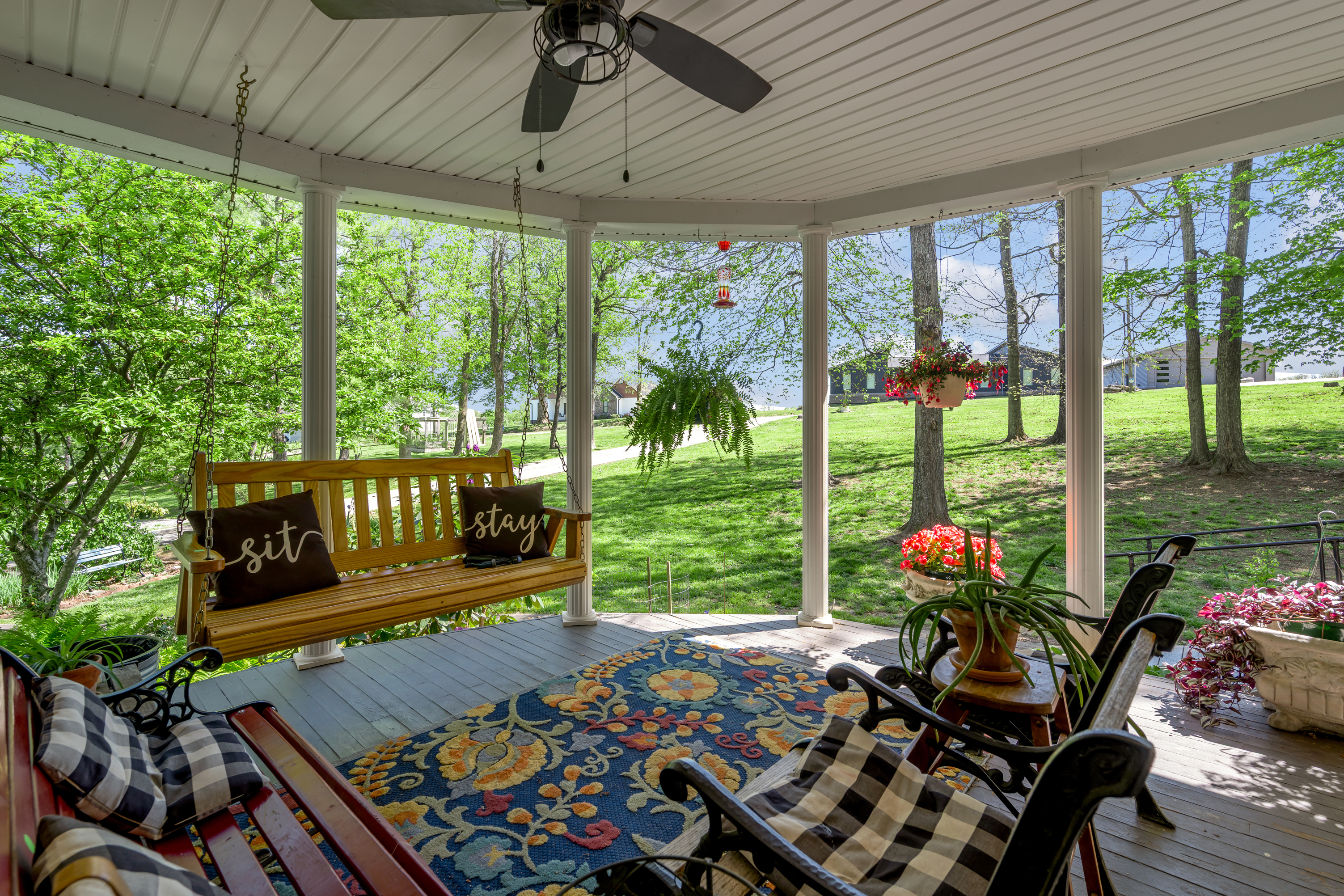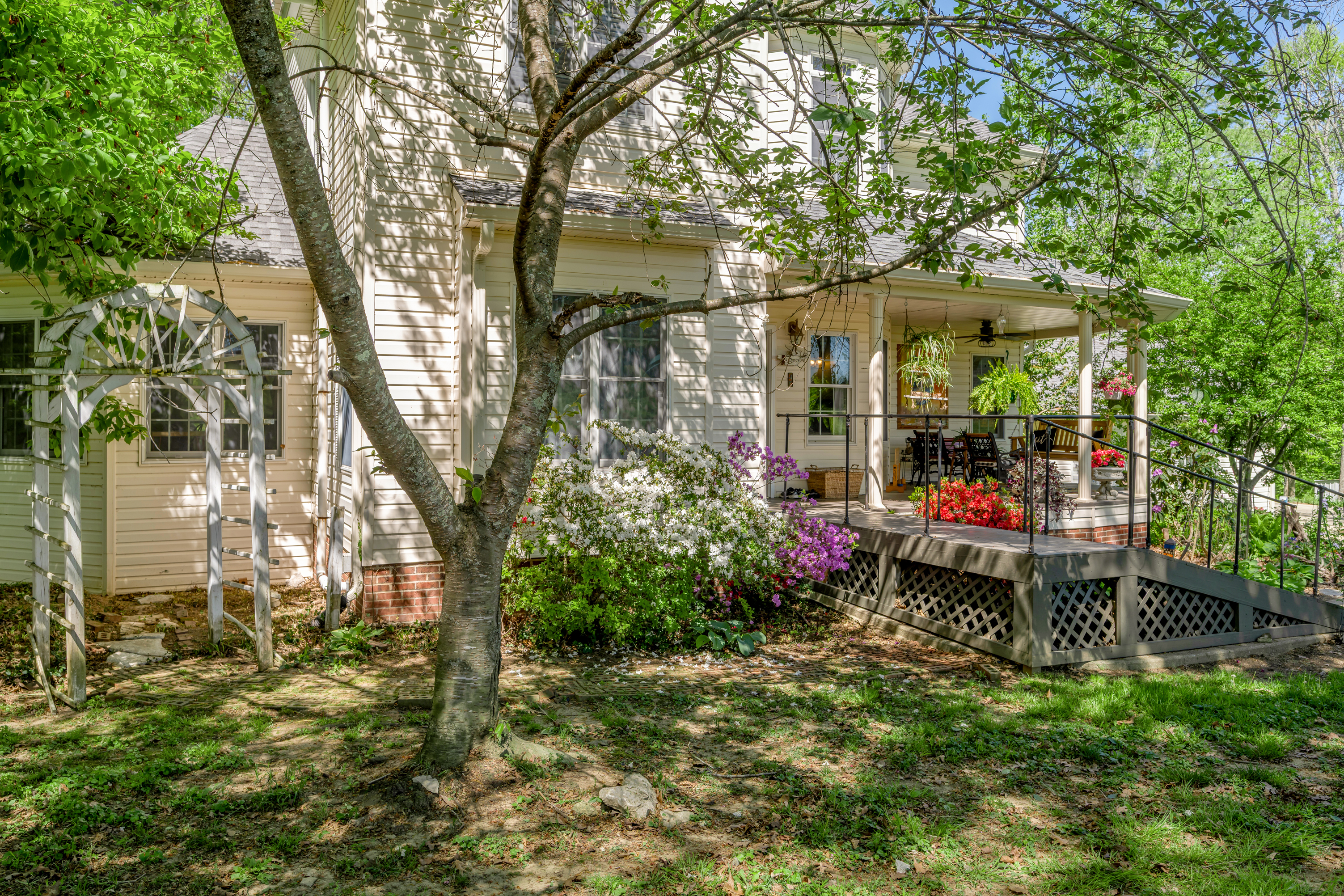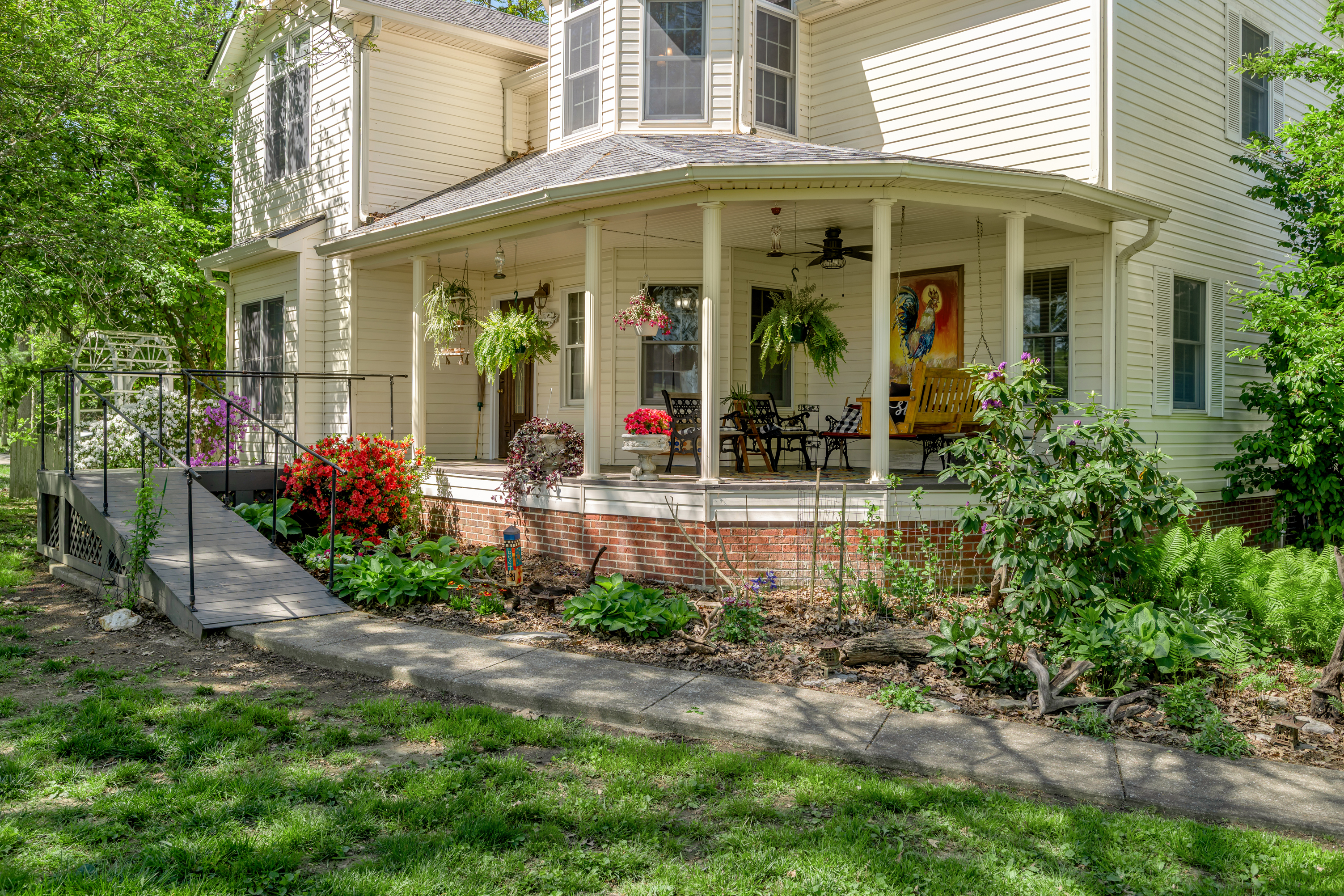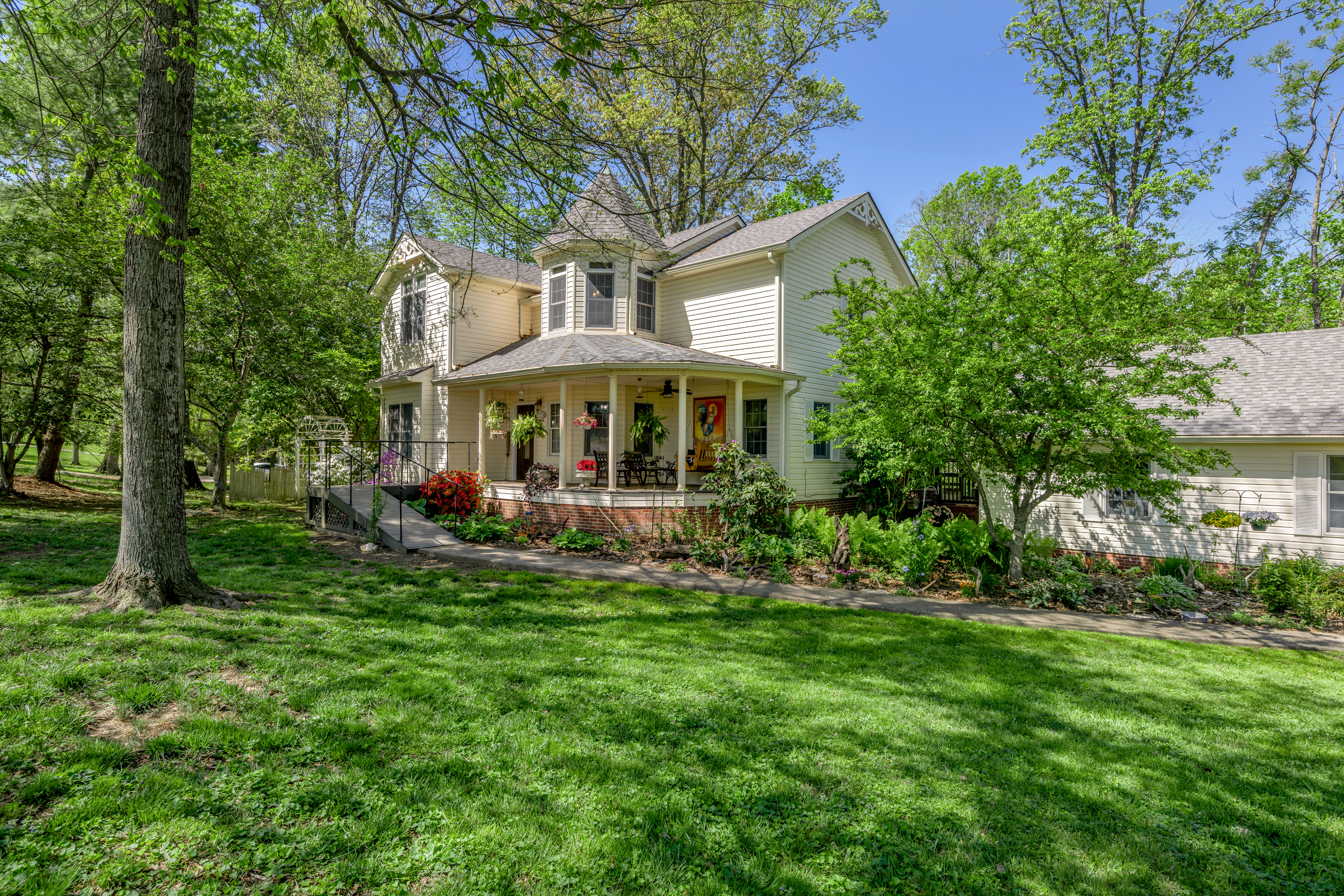 Stunning custom Victorian retreat on 2.18 private, wooded acres with direct Lake Herrington access in the Peninsula Golf Course community at Woodlawn Estates. This unique home offers 4 possible 5 bedrooms (lower-level bedroom without a window), 3 baths, and a finished walk-out lower level that includes an apartment-style area with laundry area, kitchenette and full bath—perfect for guests or in-law living. Relax in the spacious primary suite with soaking tub and separate shower, cozy up by the living room fireplace, or entertain in the formal dining room. The updated kitchen features refurbished cabinetry, quartz countertops, a gas range, kitchen bar and a huge walk-in pantry. A main-level office/rec room/workout room adds flexibility. Expansive decks surround the home and frame peaceful lake and garden views. Two-car garage and abundant storage. Too many upgrades to list here!