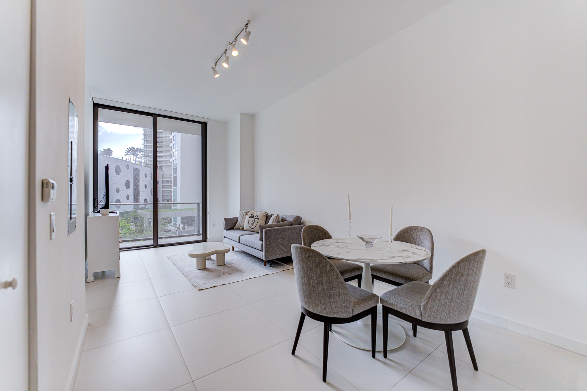 Spacious furnished unit with white tile flooring throughout. The apartment has exceptionally high ceilings (11 feet), which makes it very bright. Closets are big and fully built-out. Lighting fixtures have been brilliantly placed in every room. The building offers the highest level of amenities and 2 pools, one of which is a phenomenal roof-top pool with the most spectacular views of Miami. Walking distance to the stores, movies, restaurants, parks, 20 min from Miami International Airport.