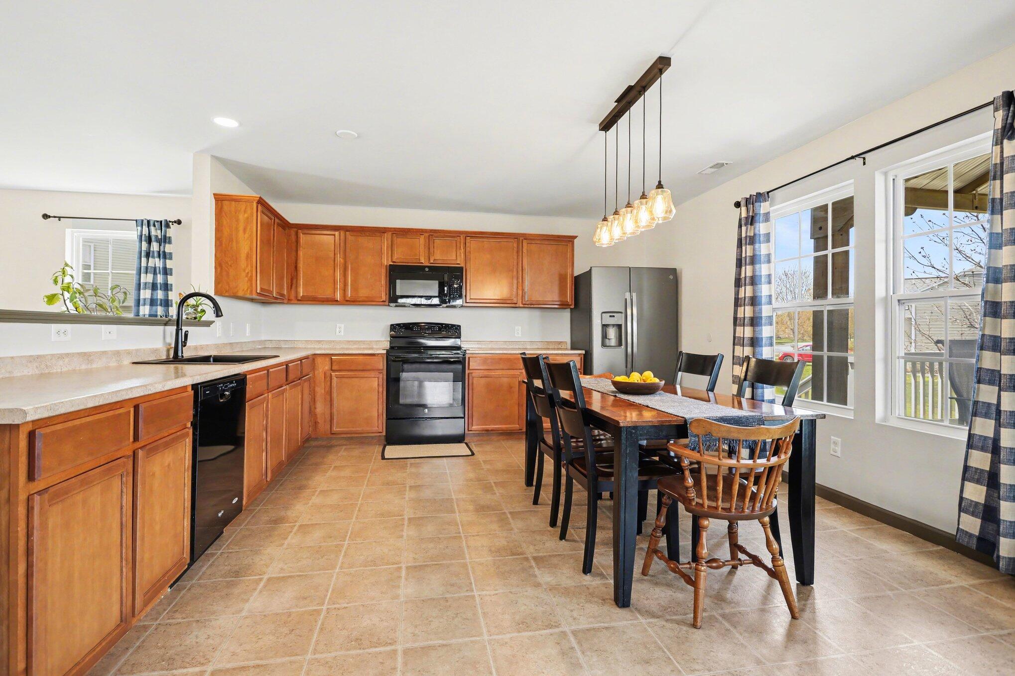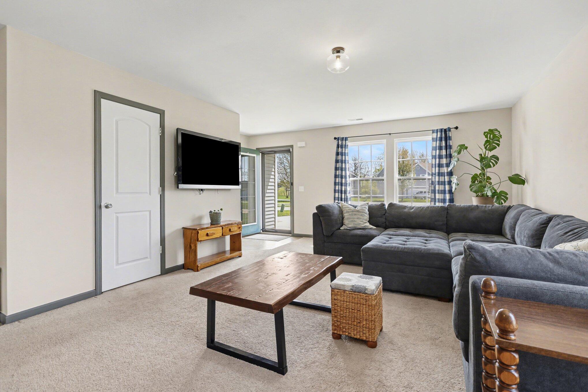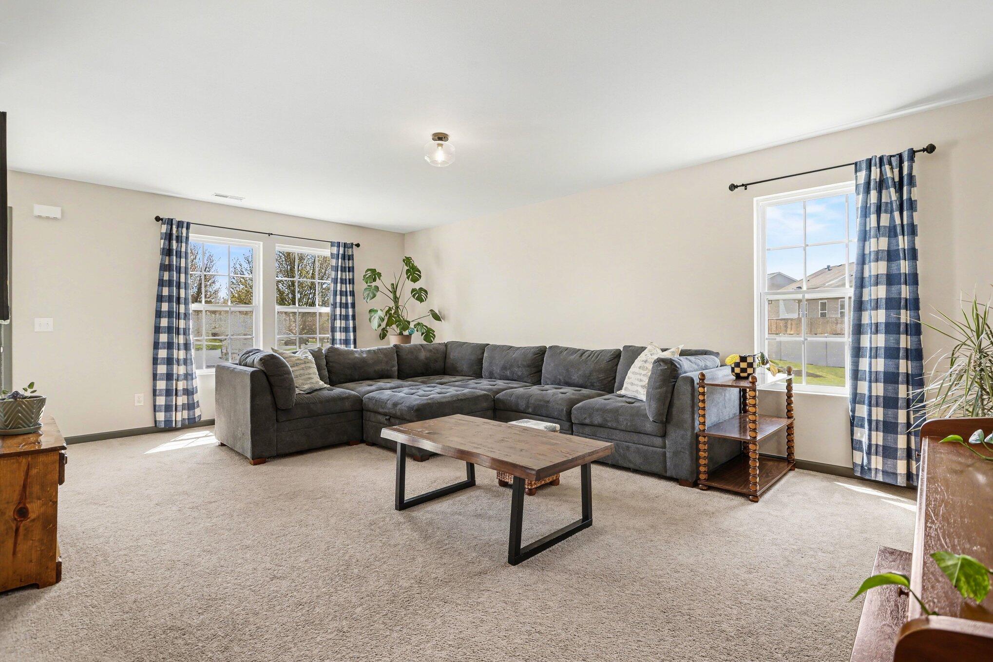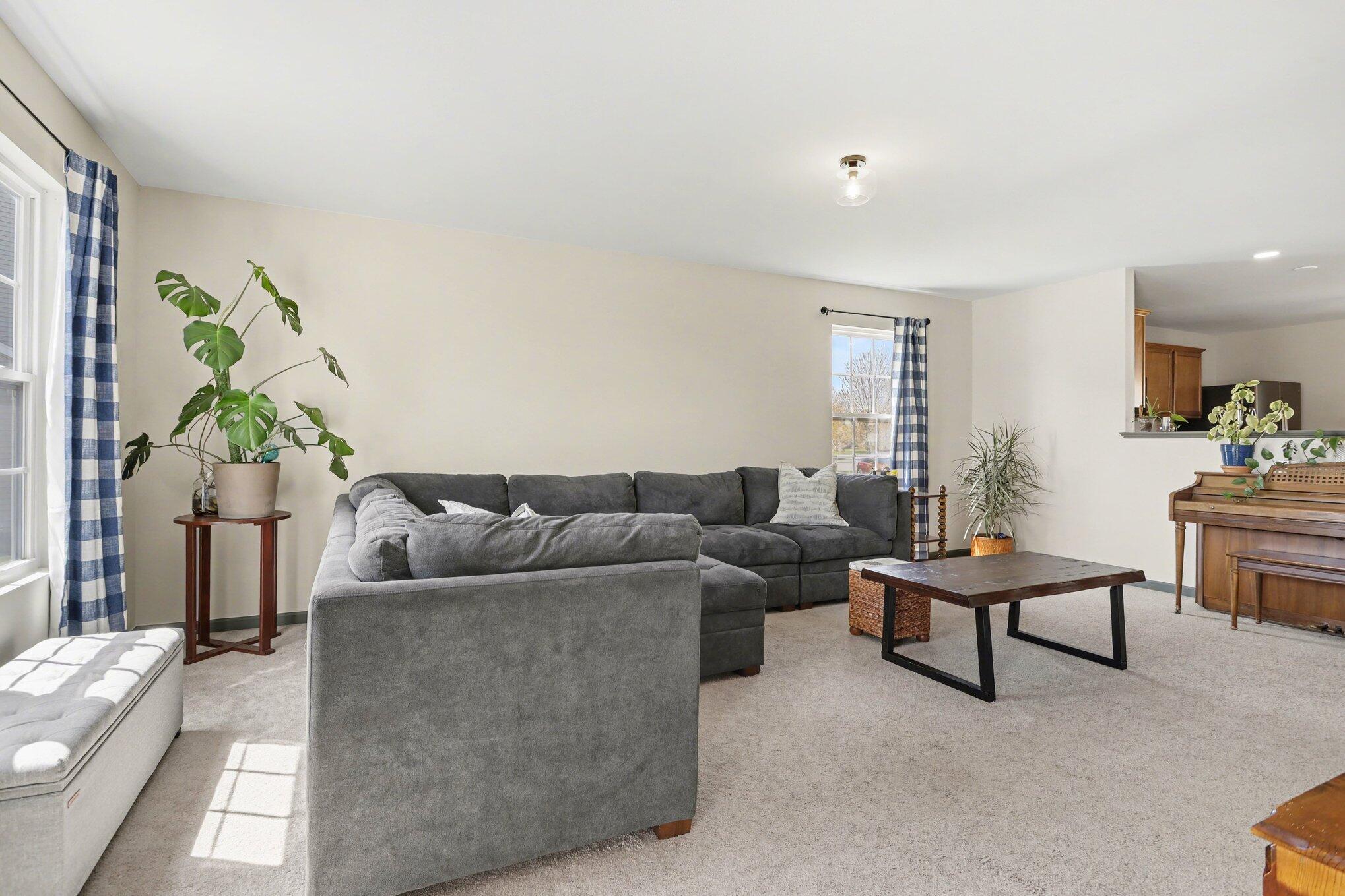 Step into a space that instantly feels like home. This charming property features bright, open living areas, cozy touches throughout, and a layout that flows effortlessly from room to room. Whether you're hosting guests or enjoying a quiet evening in, this home offers the perfect backdrop for making lasting memories. Spacious kitchen with wood cabinetry, den, half bath and Atrium door to the impressive outdoor living space, featuring a large deck with a built-in canopy designed for comfort and style. Take in stunning sunset skies--ideal for entertaining and end of day moments alike. Upstairs, you'll find three comfortable bedrooms along with 2 full baths and a versatile Flex space ideal as a media room, game space, or additional living area. Recently painted interior to freshen the appeal of turn-key. Plus an unfinished basement for future expansion. Located in PHASE 1 of Gilmore Farms --This home in tucked away on a quiet cul-de-sac and a new owner benefits from use of the clubhouse pool, kids splash pad, park, playground & abundant walking trails, excellent for relaxing and summer fun! Move-in ready and made for living --don't miss it.