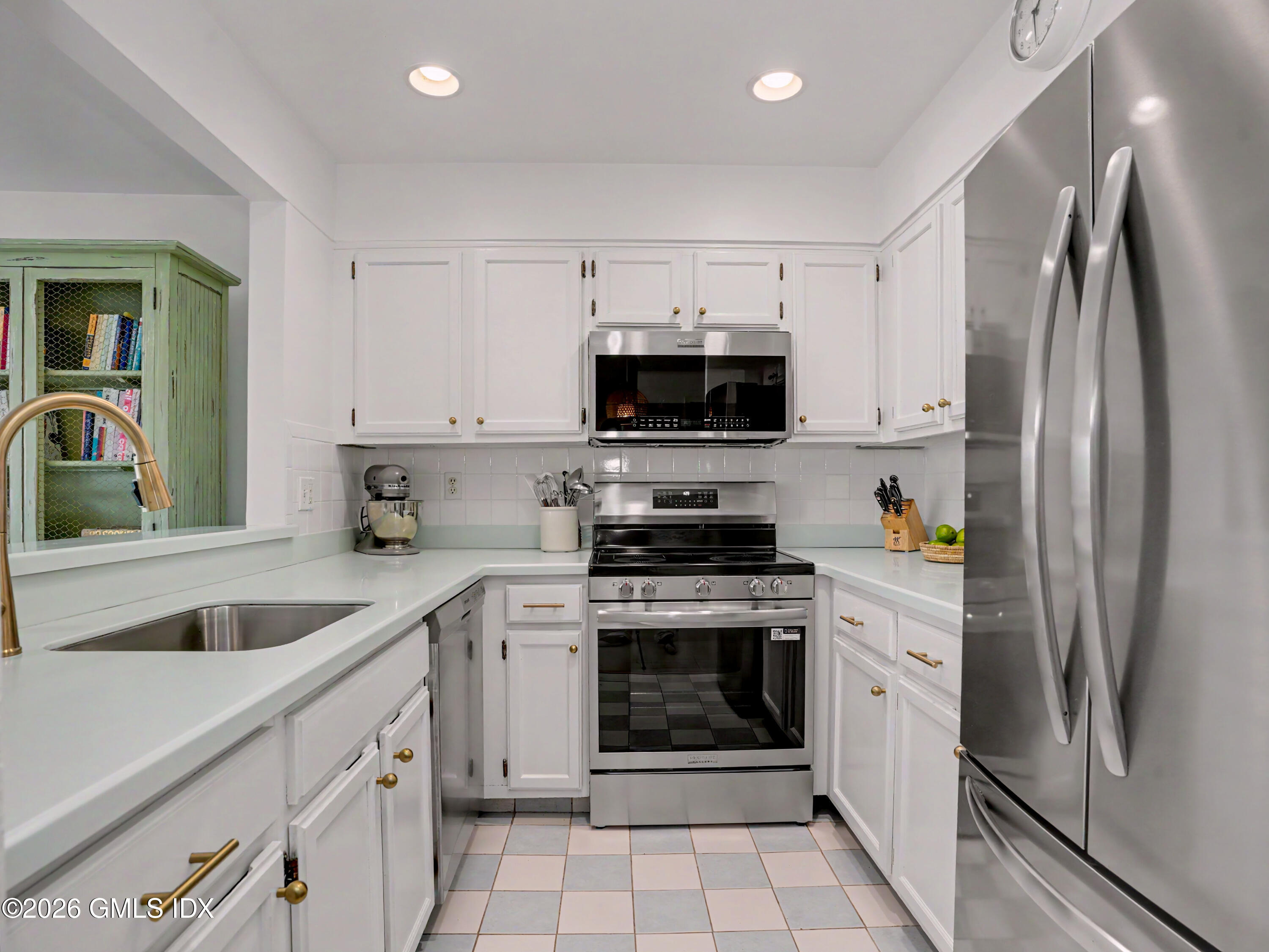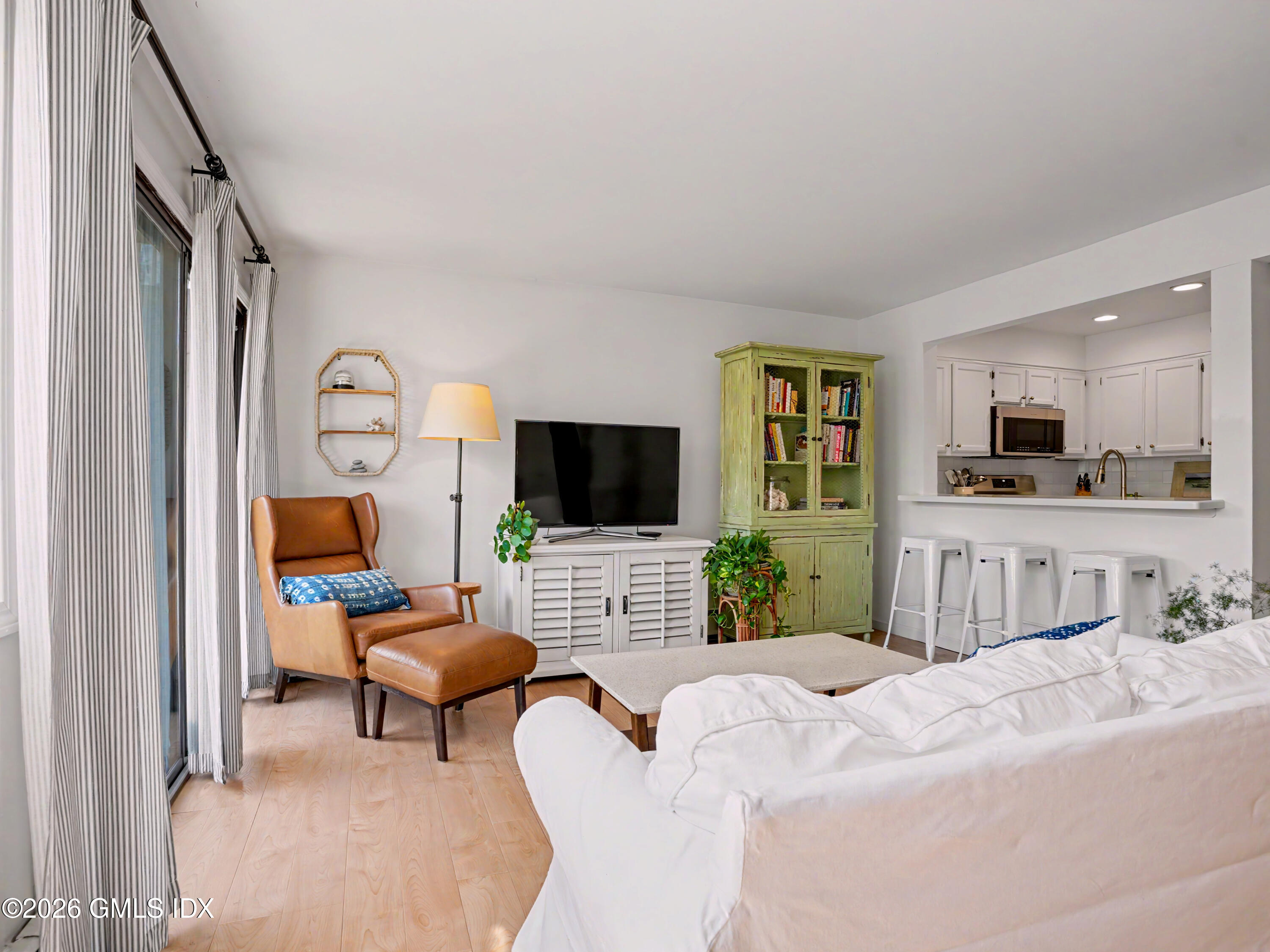 Don't miss the only unit available for sale in the Common in Old Greenwich. Refreshed one bedroom condo with plenty of natural light, ground floor, one level living. Enjoy your morning coffee on your private patio, accessed by large sliding doors from your living room. Move right into this adorable, spacious unit equipped with brand new appliances. Convenient to the train station, Greenwich Point Park beach (Tod's Point), the village of Old Greenwich, downtown Greenwich, restaurants, shops and everything that Greenwich has to offer.