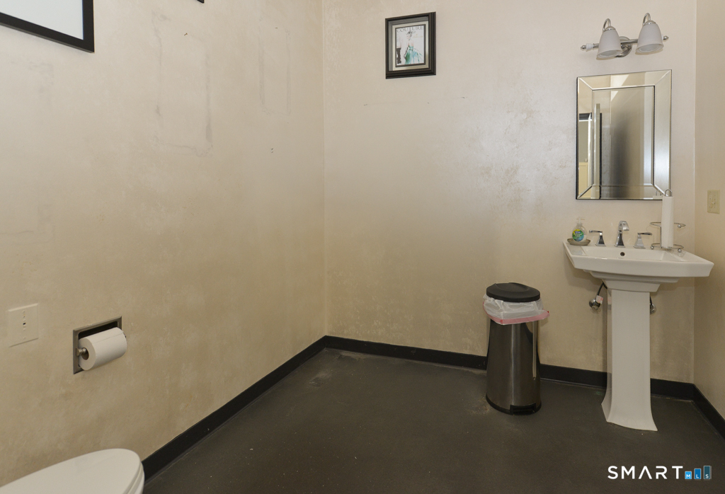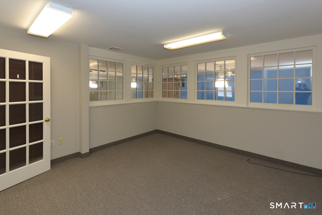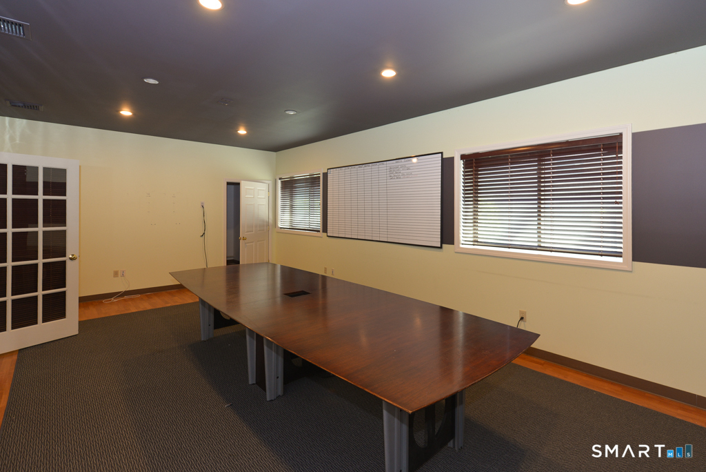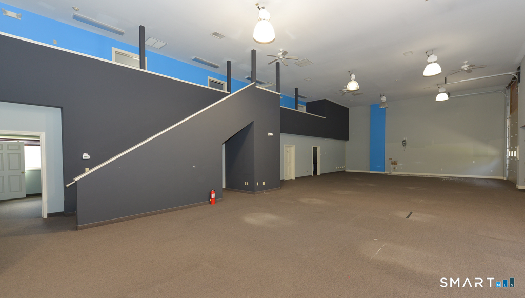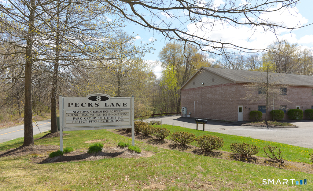 Very unique space that will accommodate a variety of uses. The two building light industrial complex is sited on 4.8 acres just off Route 25 in southern Newtown. One building houses a large gymnastic studio and training center. This space was most recently home to a marketing firm. It includes two 14ft roll-up doors and a main level space with 18 ft ceiling height of roughly 2000 sq/ft. The remainder of the main level contains 2 bathrooms and two offices. Up the stairs, the mezzanine level features a large conference room, 3 additional office and a kitchenette. The adjoining space of an additional 3000 sq/ft is also available and listed for $3000/month