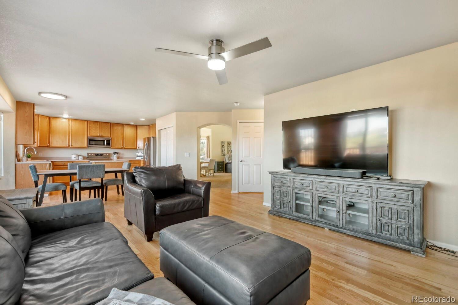 Imagine starting your mornings on the back deck, beverage in hand, watching the sunrise over the open space behind your home. That's right, no rear neighbors blocking your view. Perfectly positioned on a desirable corner lot in Brighton, this 4-bedroom, 2.5-bath home offers the blend of comfort, space, and everyday lifestyle buyers are searching for. From the moment you arrive, you'll appreciate the generous 3-car driveway, oversized 2-car garage, and the added privacy that comes with a corner homesite. Step inside to a welcoming sitting room that creates the perfect first impression, then flow naturally into the dining room, kitchen, and adjoining family room creating an inviting layout designed for both everyday living and entertaining. Freshly refinished hardwood floors add warmth and style throughout the main level, while thoughtful updates like new shower glass in the primary en suite bathroom bring a polished touch. Designed for modern living, the home is hardwired for ethernet which is ideal for remote work, gaming, streaming, or staying connected without compromise. Downstairs, the finished basement offers plenty of flexible space for a media room, workout area, playroom, office, or guest retreat, complete with brand-new carpet for a fresh and comfortable feel. Donaldson Park is just to the North with space for all your activities. Enjoy the convenience of King Soopers and other stores less than a mile away as well as easy access to Hwy 76 for commuting. With Brighton continuing to grow and new amenities coming to the area, this is more than a home; this is an opportunity to plant roots in a thriving community while still enjoying the comfort of a peaceful setting.