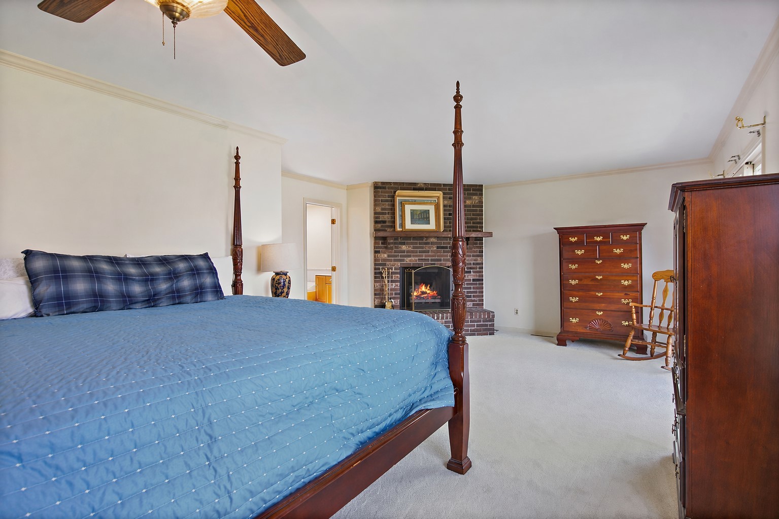 Enjoy space and privacy on this beautiful 1.33 acre lot featuring a deep backyard, lush lawn, and deck for outdoor entertaining. Inside, you'll find freshly painted interiors, all new carpet and generously sized rooms throughout offering comfortable living now with opportunity to add your own updates over time. Family room with built in shelving and fireplace. Master suite includes warming fireplace, private master bath, walk-in closet and a balcony overlooking the backyard. Minor exterior TLC will make this well cared for home truly shine. All mechanicals is good working order. Home is being sold AS-IS.