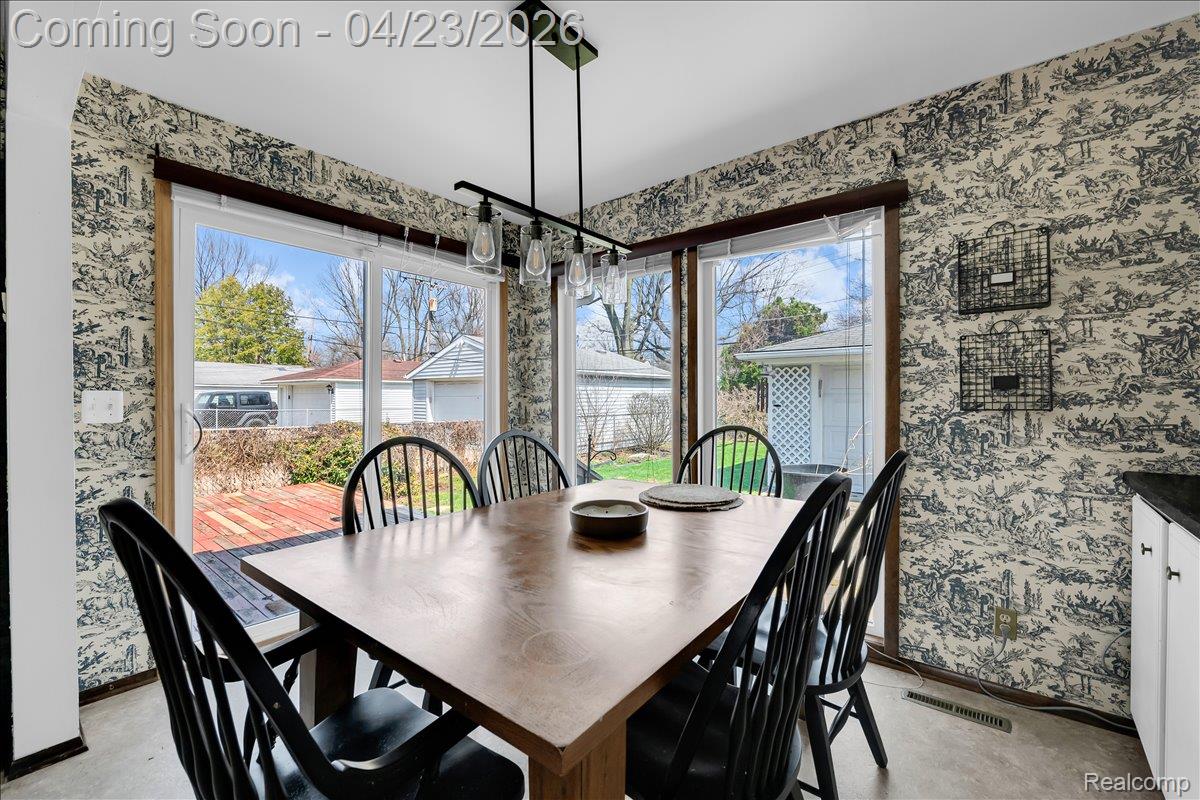 Set across from Polk Elementary and a wide open green space, this 3-bedroom Dearborn Heights ranch offers a setting that feels both connected and comfortable - an ideal place to start your next chapter. Inside, original wood floors bring warmth and character, while the open, flowing layout makes everyday living feel easy. The generously-sized kitchen stands out with plenty of storage and room to move, and a dining area comfortable to seat 6, and - whether you're cooking, hosting, or simply enjoying a quiet night in. The rear bedroom adds a unique touch, featuring a door wall that opens directly to the deck - perfect for stepping out to enjoy fresh air in the morning or winding down in the evening. Outside, you'll find a private yard, rear deck for entertaining, and a two-car garage that adds both convenience and value. A solid opportunity for an owner-occupant looking for space, function, and a location that keeps you close to what matters.