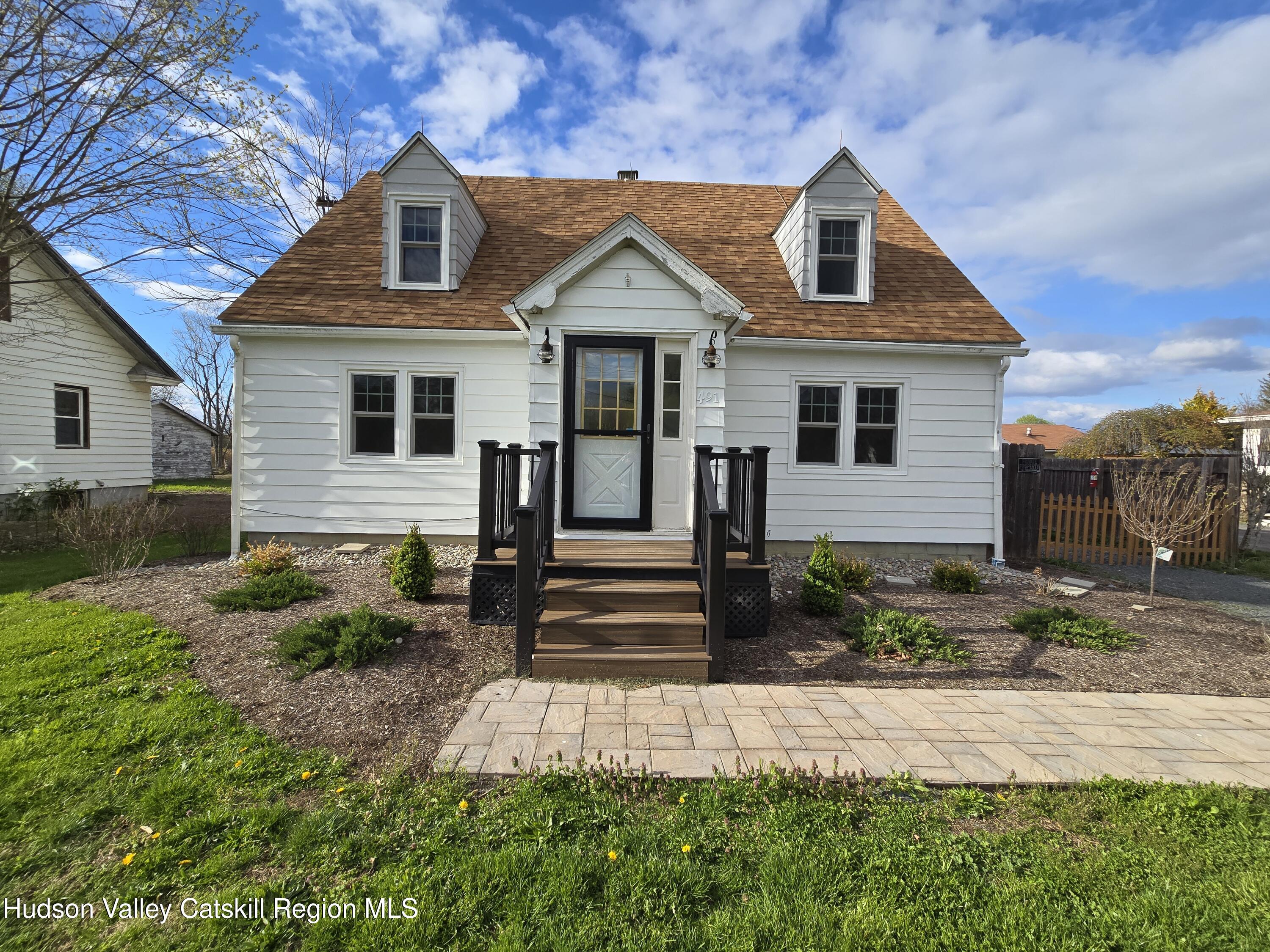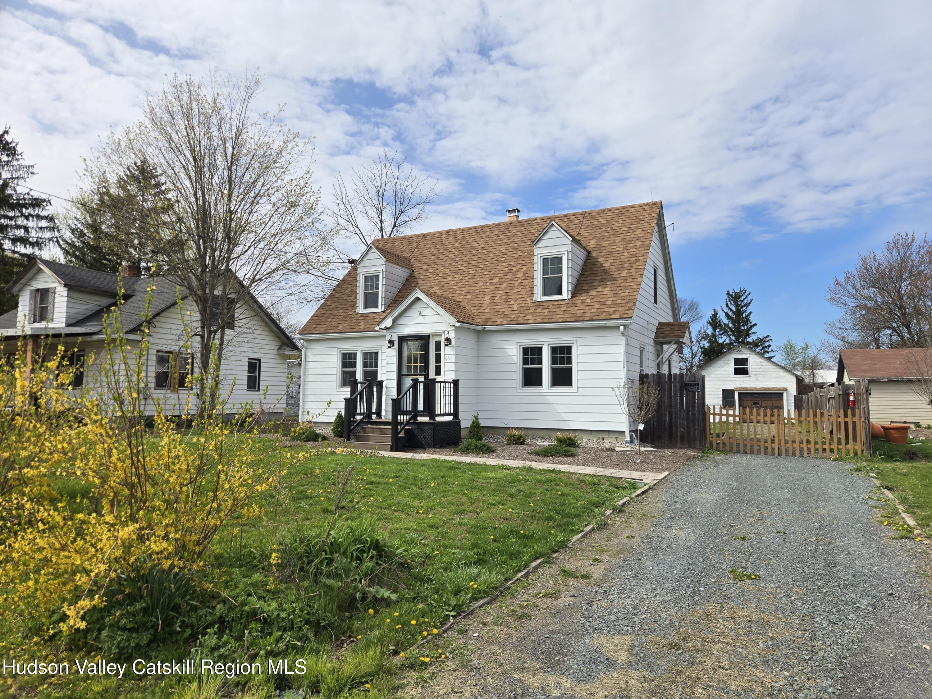Charming Cape in Stuyvesant - Ideal for Full-Time Living or a Hudson Valley Escape. A perfect blend of character and updates, this inviting Cape offers flexible living for full-time residents, weekend buyers, or short-term rental potential. Inside, you'll find hardwood floors throughout, an open living and dining area with built-in cabinetry, and a cozy eat-in kitchen. The first floor features a bedroom and an updated full bath, offering convenient one-level living. Upstairs, a bright and sunny second bedroom includes hardwood floors, ample closet space, and room to add a second bath. Recent improvements include a newer roof (2017), new windows (2025), freshly painted exterior (2025), underground drainage system (2025), new composite front porch and decking, new chimney liner, new refrigerator and clothes washer (2025). The home has also been professionally landscaped for strong curb appeal. Outside, enjoy a large fenced backyard--ideal for pets, gardening, or entertaining--plus a detached garage with a spacious loft for storage, studio, or creative use. Gravel driveway completes the package. Located just 10 minutes to Hudson, 30 minutes to Capital District, and 2.5 hours to NYC, this property is perfectly positioned for today's buyers seeking lifestyle, flexibility, and value in the Hudson Valley.