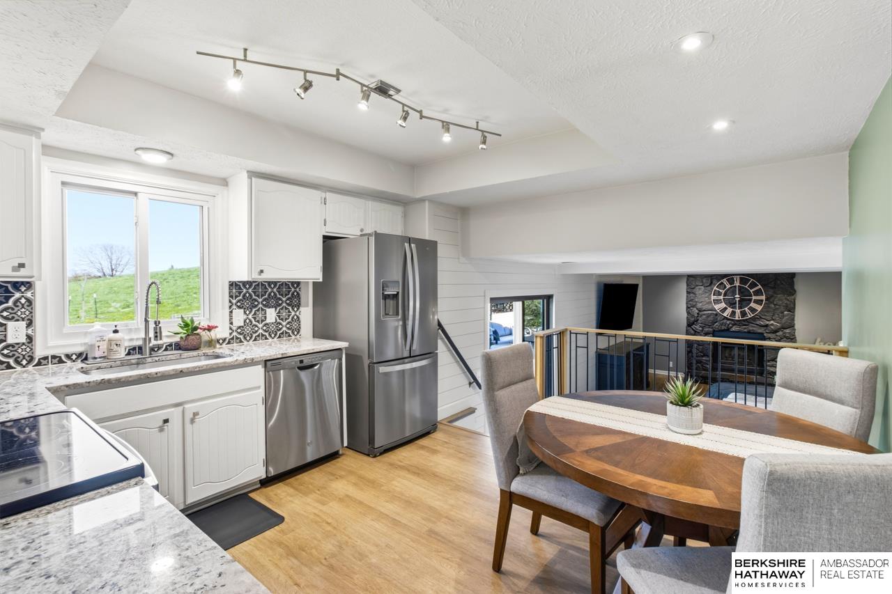 Situated on a large corner lot backing directly to Willow Wood Park, this inviting tri-level home offers space, style, and an unbeatable setting in a desirable Omaha neighborhood. Inside, you'll appreciate the updated interior with generous living spaces, including an updated kitchen and bathrooms that blend modern finishes with everyday comfort. The vaulted living and dining rooms create bright, open areas ideal for entertaining, while the family room with a fireplace adds warmth and character. Step outside to enjoy the deck and expansive yard with no backyard neighbors, making this home a standout opportunity in a highly sought-after location.
