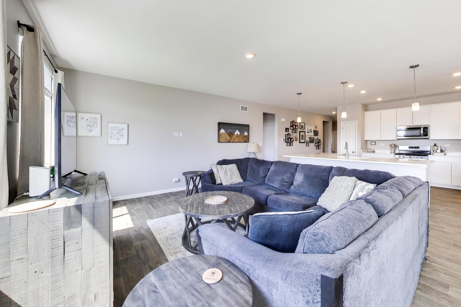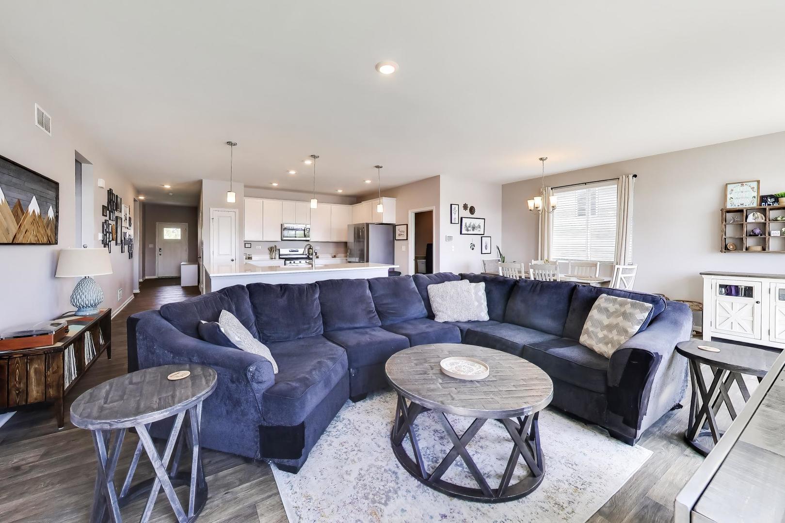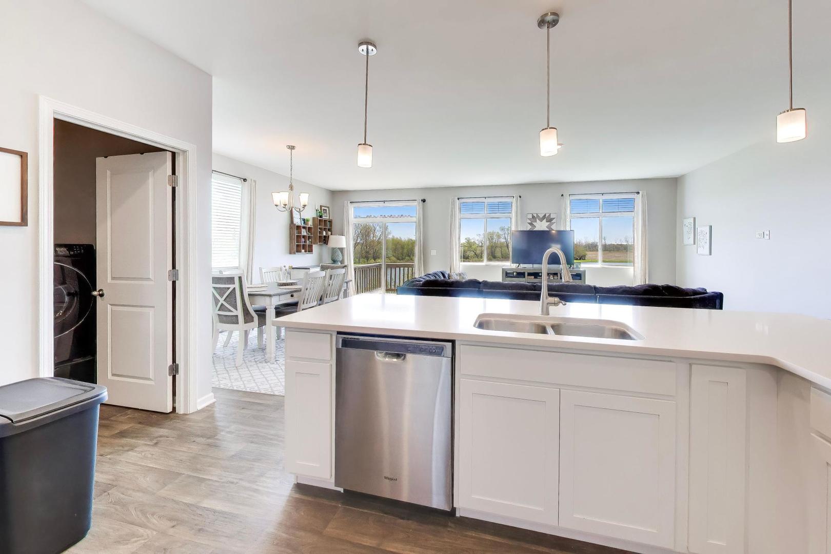 Experience serene pond front living in this immaculate, 5 year young Summerlin model in The Oaks at Irish Prairie. This 3 bedroom ranch shines like new, beginning with a versatile, oversized foyer perfect for a home office. The heart of the home is an expansive open concept layout featuring a gorgeous kitchen with Quartz countertops, a massive social island, and upgraded lighting. Sunlight floods the living area through large windows that frame breathtaking views of the natural landscape and a pond. Retreat to a luxurious primary suite boasting dual walk in closets, an ensuite bathroom, and peaceful water views. Outdoor living is a breeze with a private deck and a massive unfinished walkout basement-already stubbed for a half bath and offering endless potential. Complete with a 2 car garage and a convenient side service door, this home is the perfect blend of modern luxury and nature. Schedule your private tour today to experience these views in person before this gem is gone!