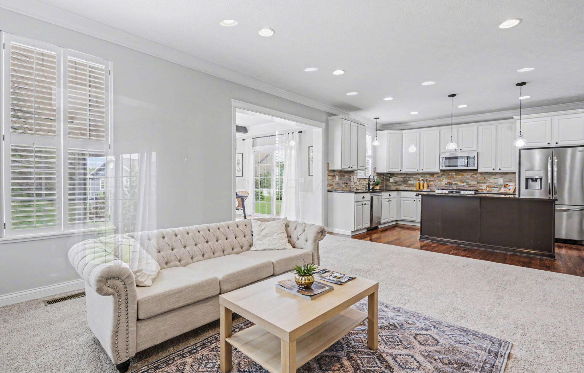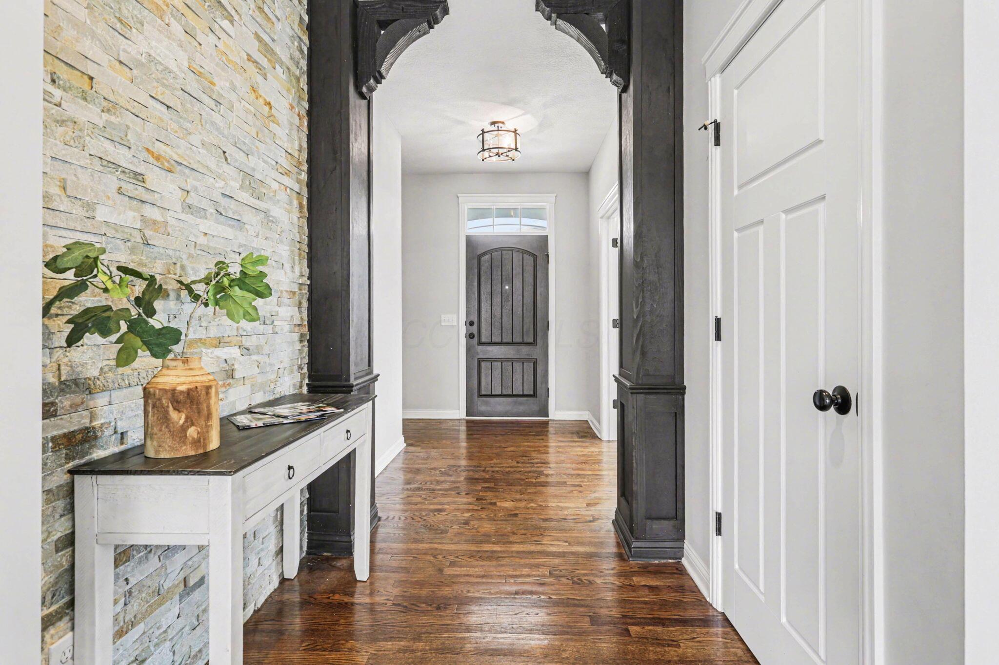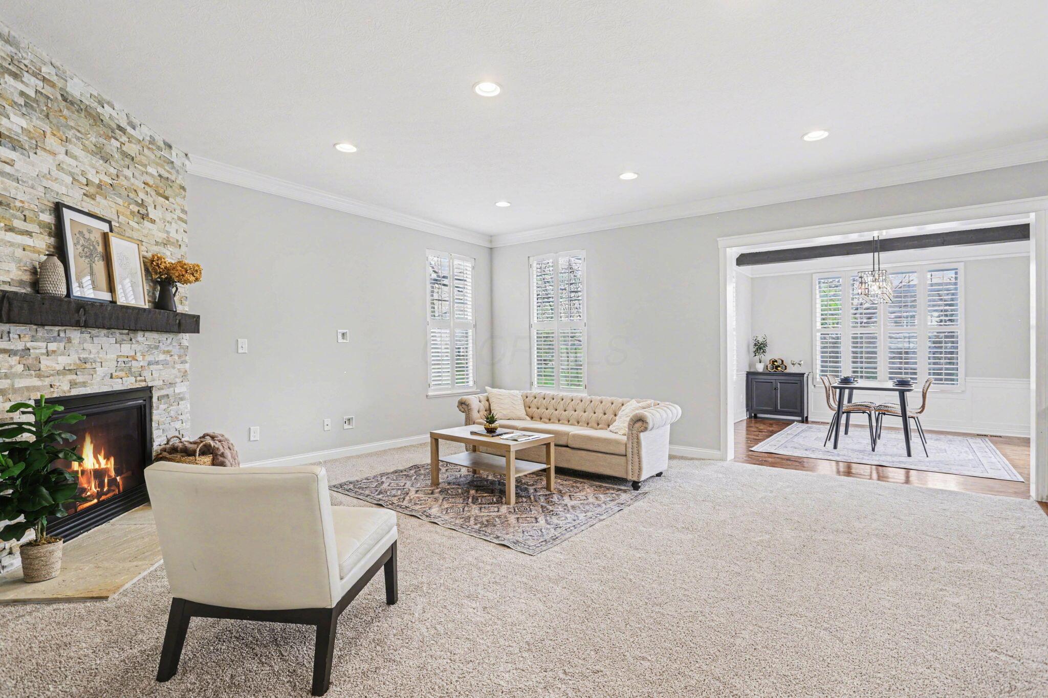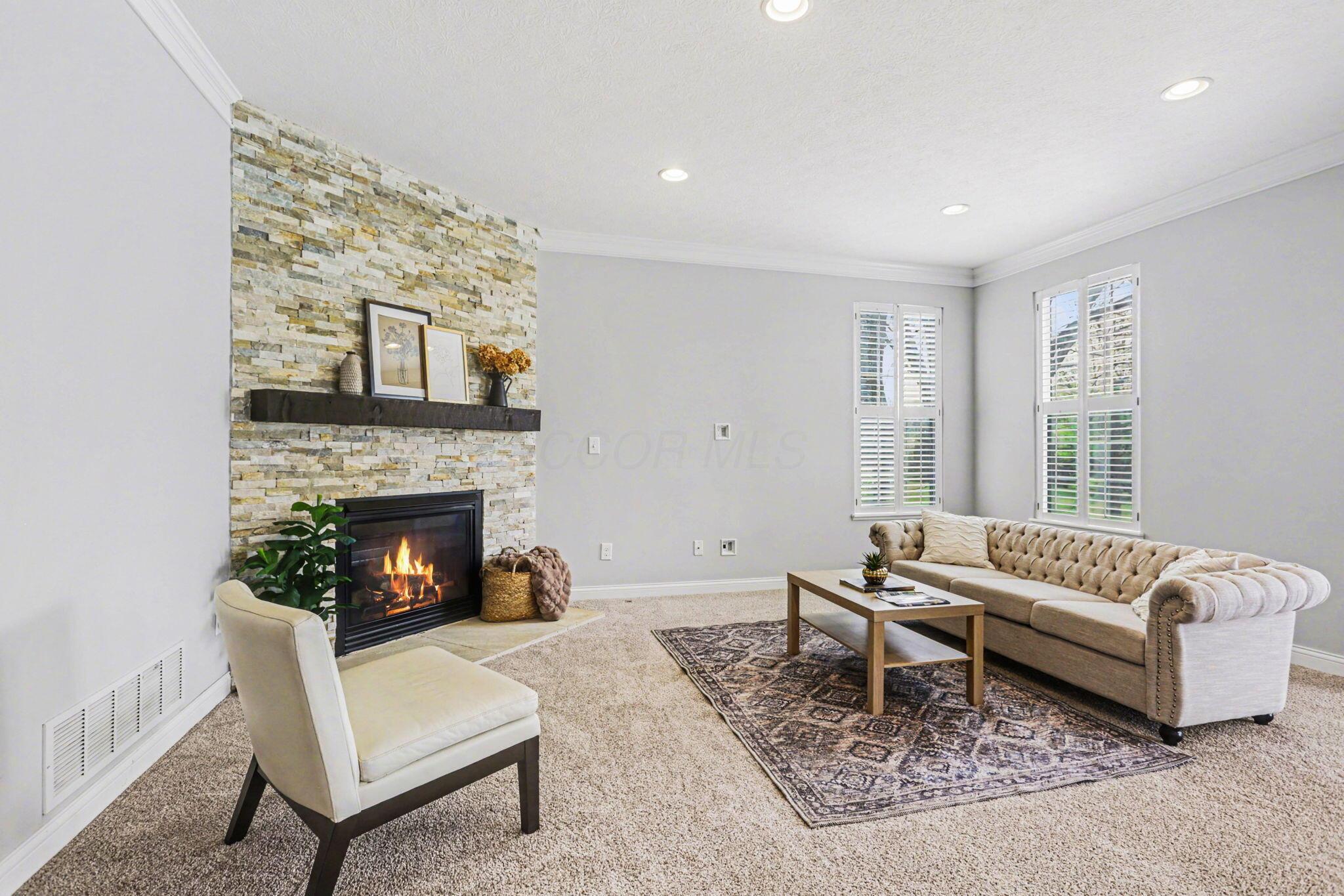 Open House 4/26 2-4 Location is everything--and this stunning two-story home in the Tartan Ridge community delivers. Premium 0.31 acre lot directly across from the neighborhood park, and just around the corner from Glacier Ridge Metro Park and Glacier Ridge Elementary School, this home offers the ideal balance of scenic surroundings and everyday convenience. From the moment you arrive, the charming brick front walk and inviting curb appeal set the tone. Inside, you'll find a thoughtfully designed, open-concept layout with sophisticated finishes and architectural details throughout. The main level features rich hardwood floors, a spacious den or home office with peaceful park views, and a bright dining room overlooking the expansive backyard. The beautifully appointed kitchen is the heart of the home, complete with a large island, granite countertops, stainless steel appliances, a walk-in pantry, and seamless flow into the cozy living room with a stacked stone fireplace. Everyday living is made easy with a functional mudroom off the foyer, featuring custom-built cubbies and direct access to the kitchen. Upstairs, the generously sized bedrooms provide comfort for all, while the owner's suite is a true retreat--updated to include a spa-like bath with a large walk-in shower, electric heated floors, and a spacious walk-in closet. The professionally finished lower level adds approximately 1,100 square feet of additional living space, offering incredible flexibility with a guest suite or fifth bedroom, a whimsical playroom, and bonus space perfect for a home gym, office, or hobby area. Step outside to enjoy the large backyard with a patio--ideal for relaxing or entertaining. Additional updates include new carpet on all 3 levels and fresh paint in many rooms, making this home truly move-in ready. This is more than a home--it's a lifestyle. With unmatched access to parks, top-rated schools, and a vibrant community, this Tartan Ridge gem is ready to welcome you home.