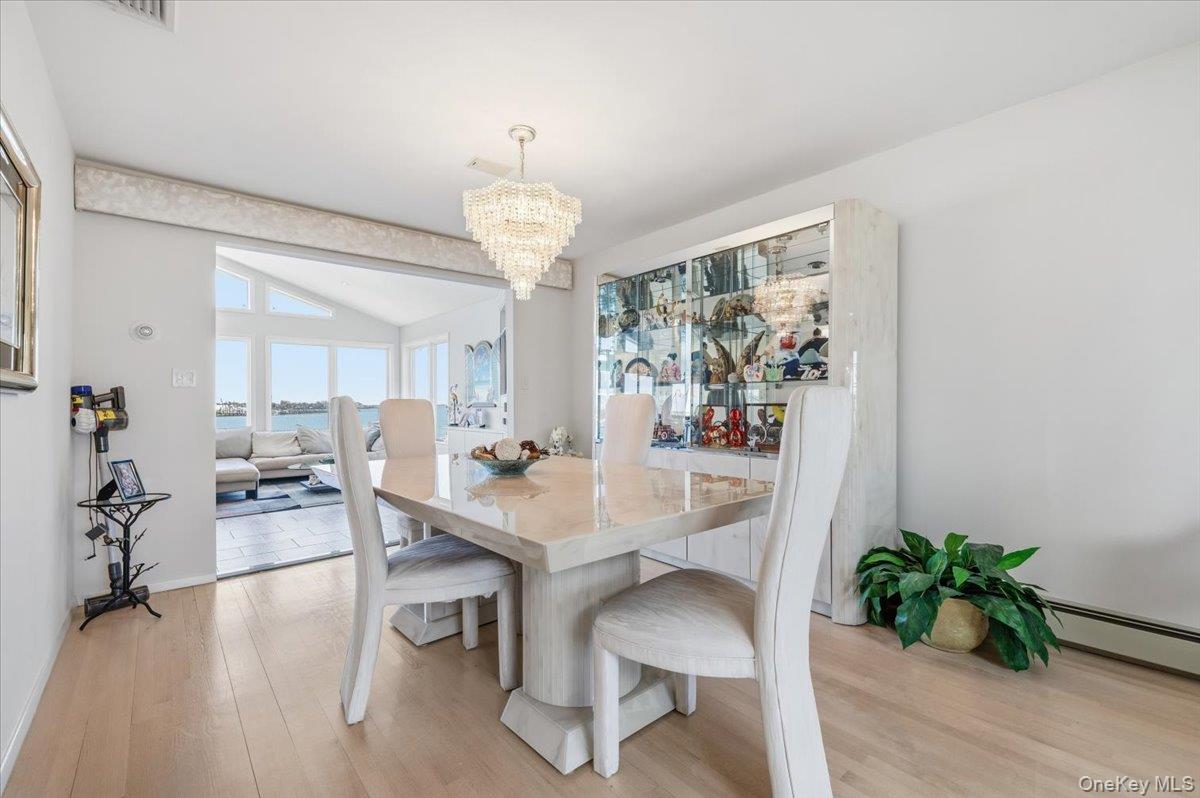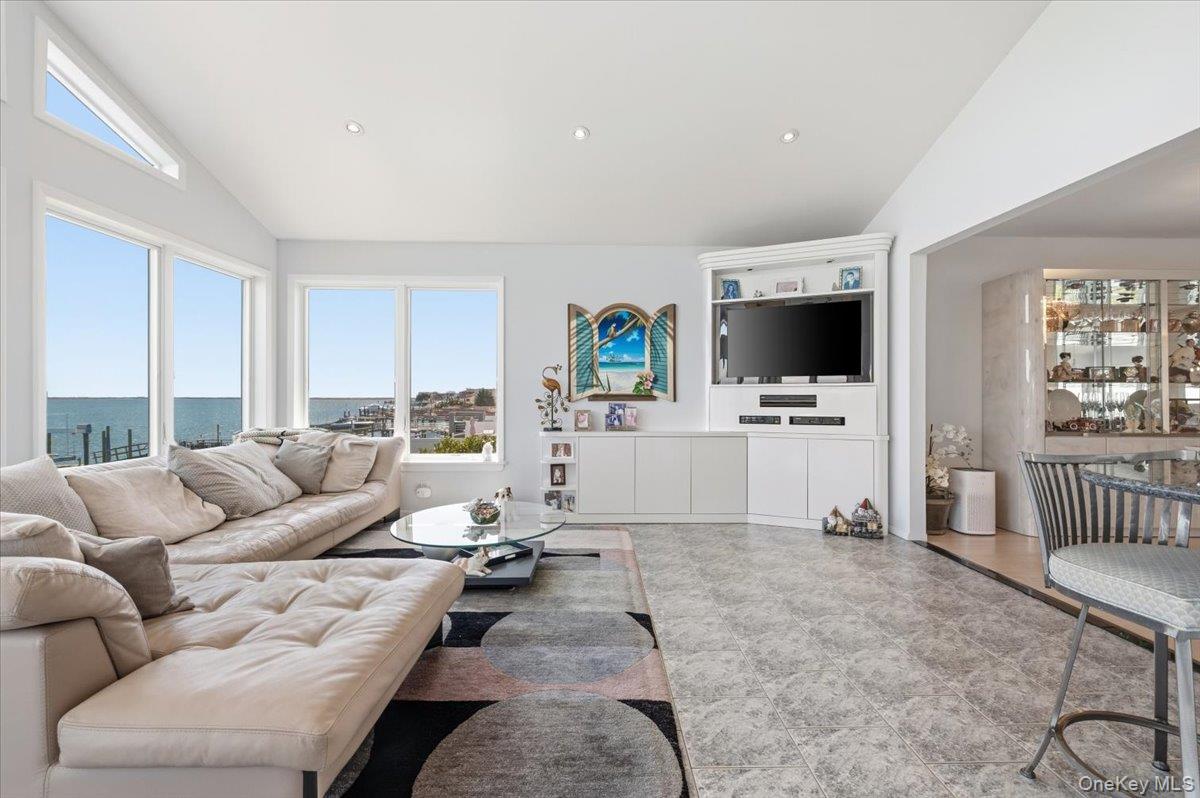 Experience the pinnacle of waterfront living at this spectacular Bayfront residence in the heart of Merrick Estates. Perfectly positioned along the bay, 2959 Shore Road offers an extraordinary lifestyle defined by panoramic water views, seamless indoor-outdoor living, and exceptional boating amenities. Set on a prime waterfront parcel, this meticulously maintained high ranch boasts approximately 3,400 square feet of living space, featuring 4 bedrooms and 3 full bathrooms. The home's thoughtful layout is designed for both everyday comfort and elevated entertaining. For boating enthusiasts, this property is unmatched, offering a 65-foot pier, boat lift, floating dock, and direct stair access to the beach - delivering the ultimate waterfront lifestyle. The main level welcomes you with a spacious family room highlighted by a gas fireplace, a full bathroom, dedicated office, bedroom, and laundry room. This level also provides direct access to a stunning indoor pool area, where glass sliding doors open to a beautifully designed paver patio - creating a private retreat that effortlessly blends indoor and outdoor living. Upstairs, the second level showcases an expansive and sun-drenched living space. A gracious living room, formal dining area, and large open-concept kitchen with breakfast area flow seamlessly into an additional family room. The entire rear of the home is framed by soaring ceilings and dramatic picture windows, capturing breathtaking, unobstructed views of the bay - truly priceless. A private balcony off the kitchen further enhances the experience, offering the perfect setting to enjoy morning coffee or evening sunsets over the water. The bedroom quarters include two additional bedrooms and a full bathroom, along with a luxurious primary suite featuring a spa-like bathroom complete with a jacuzzi tub. Additional highlights include a full-house gas generator and a garage ideal for storage. Ideally located in Prime Merrick Estates and just moments from the Merrick Estates Civic Association (MECA), residents enjoy access to a vibrant, members-only lifestyle featuring an Olympic-sized pool, diving board, kiddie pool, sports courts, beach volleyball, playground areas, and a full calendar of social events and activities, themed gatherings, and summer programs - all within a short walk from your front door. This is a rare opportunity to own a premier waterfront home offering luxury, lifestyle, and location in one of Merrick's most sought-after communities.