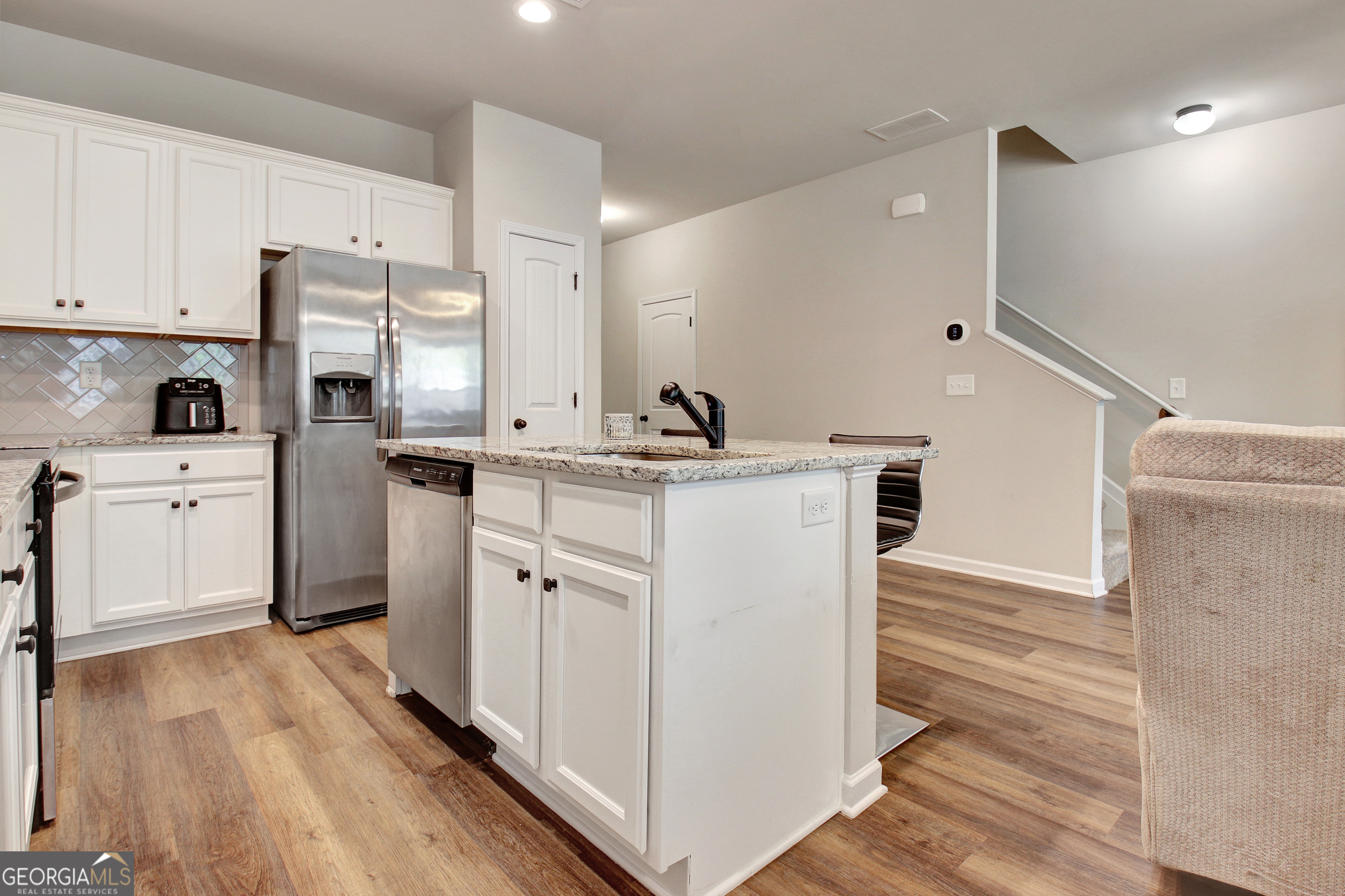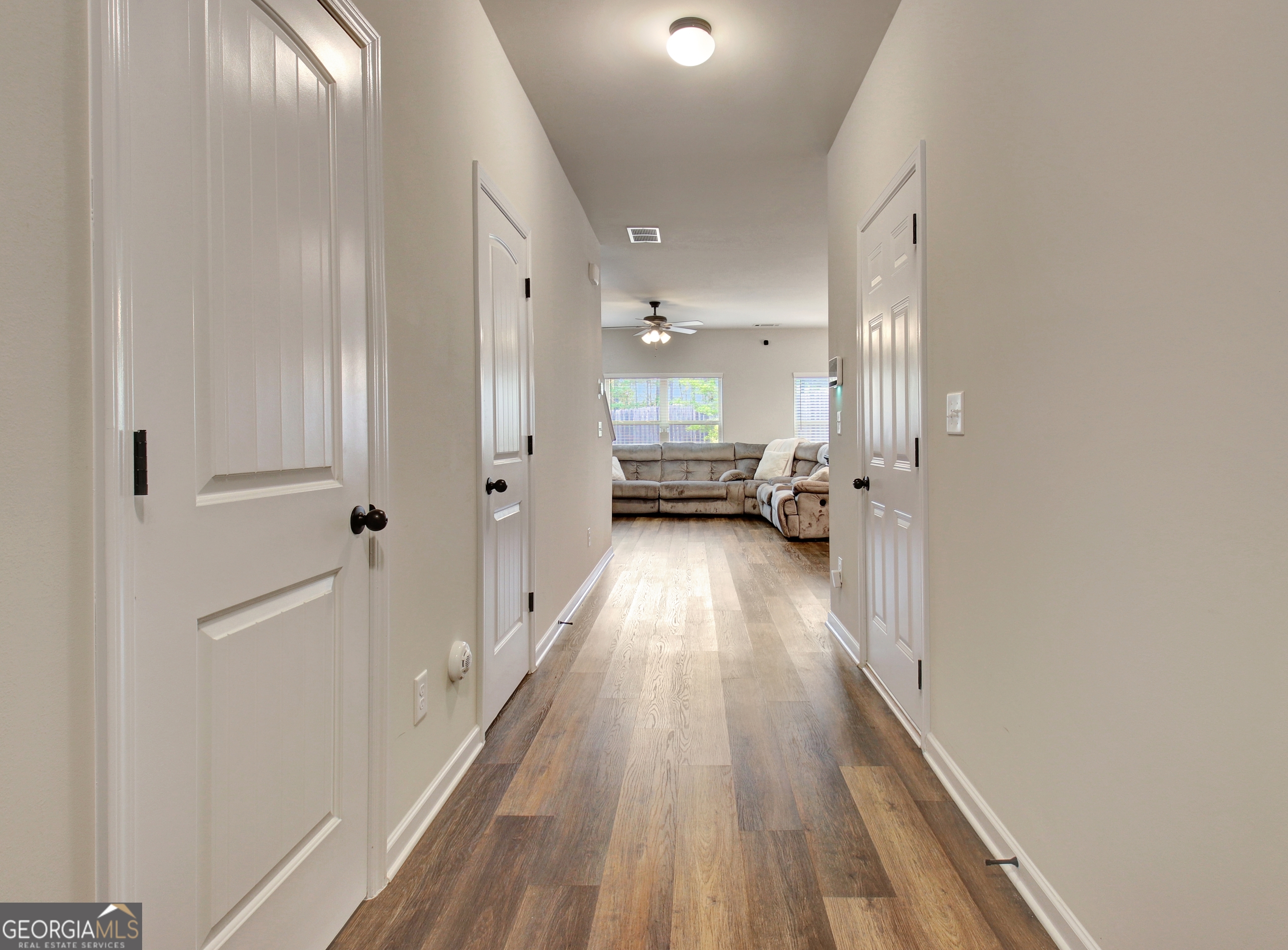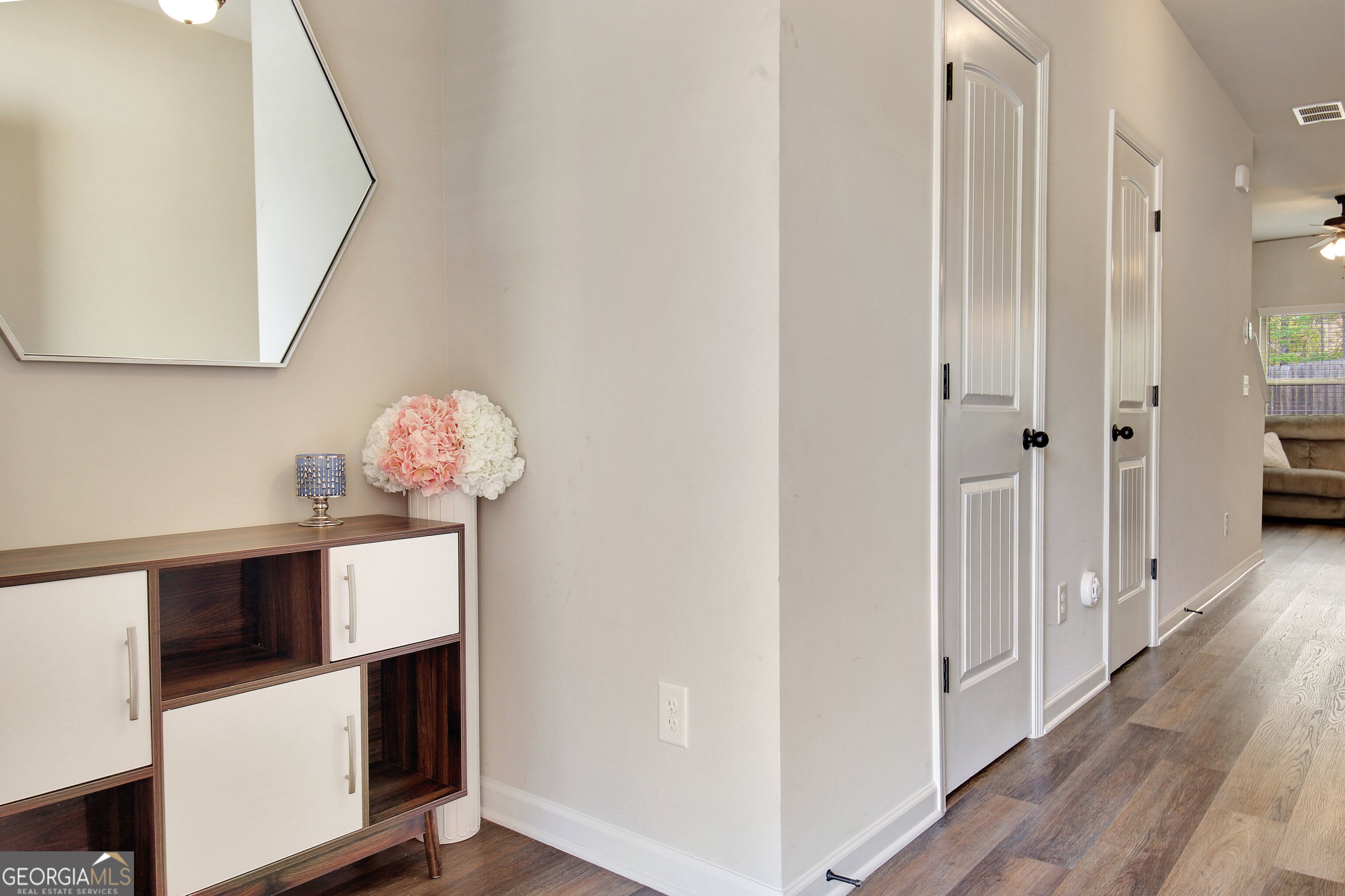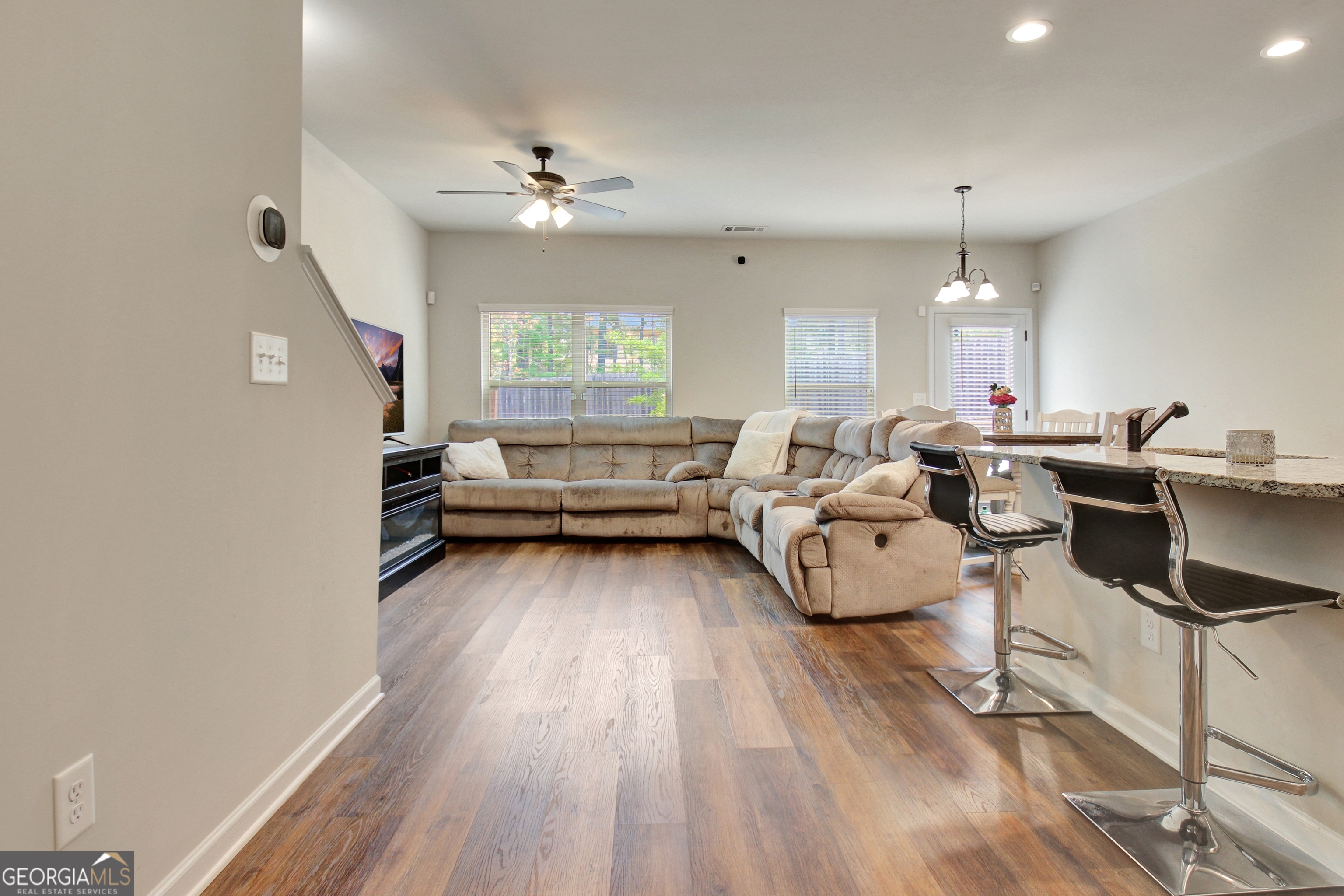 Tucked back in a gated community, just minutes from I-85, this well-kept END UNIT townhome is just what you've been looking for! Follow the beautiful wood-grained floors from the cozy foyer into a seamless layout of living, dining, and kitchen space, and unwind after a long day with everything at your fingertips! Its end unit location means a bigger green space for children and/or pets, and a little extra breathing room. Upstairs, you'll find a spacious primary suite & walk-in closet, along with 2 additional bedrooms, a second bathroom, and laundry room. Our seller has taken great care of this home and is looking forward to passing the keys along to its next owner. Schedule a showing and let's make it yours!