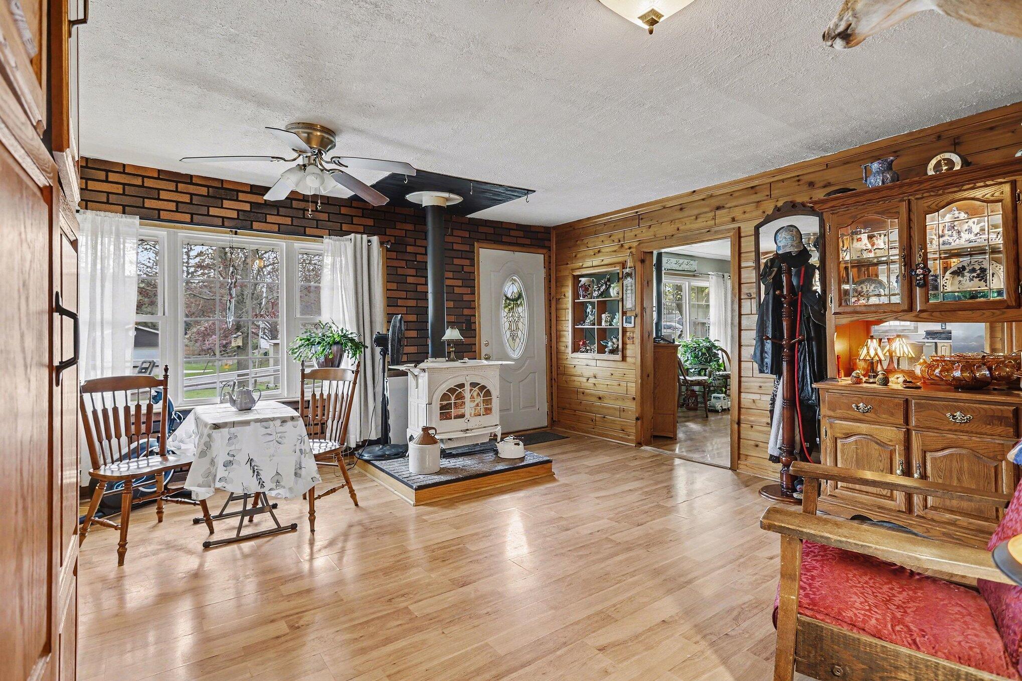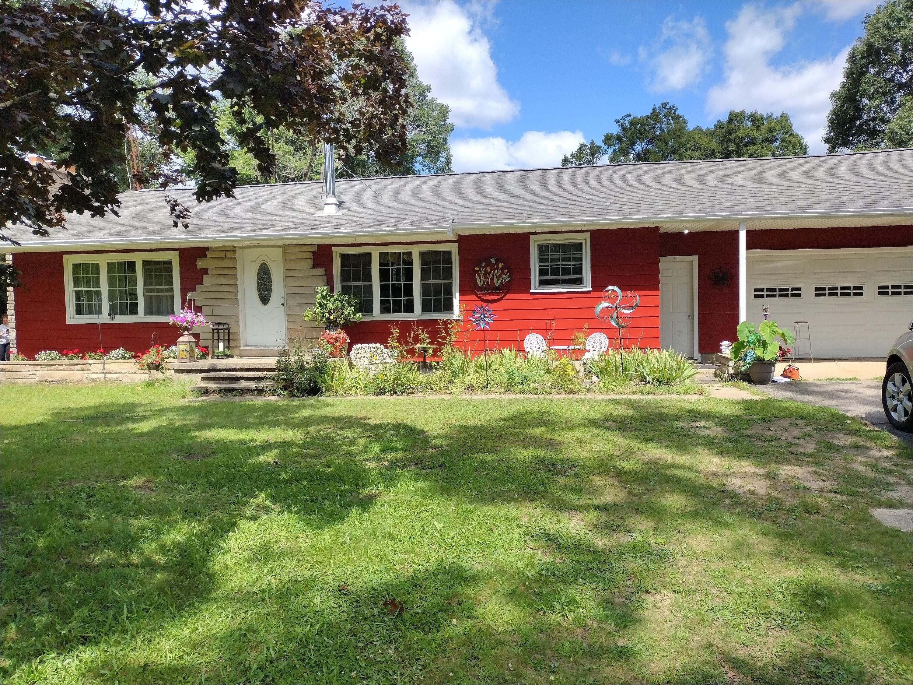 Welcome to your peaceful Homestead retreat! This charming 3-bedroom, 1 1/2 bath ranch sits on 1.8 acres offering the perfect blend of comfort & country living. Step inside to find warm,. inviting spaces highlighted by 2 beautiful sandstone fireplaces & a cozy wood burning stove in the dining room that's ideal for gathering on cooler evenings. The partially finished basement provides extra room for recreation, hobbies, and storage. Outside, the property really shines w/a large garden area ready for your homegrown harvest, plus a chicken coop complete with chickens, bringing the homestead lifestyle to life. Relax or entertain on the spacious 12x16 deck overlooking your private slice of nature. Amenities include: A 2-car garage, central air, handicap shower, new plumbing & roof in 2024, new furnace in 2021 & Harper Creek Schools. If you've been dreaming of space, charm, and a touch of rural living, this little Homestead is ready to welcome you home. Asking $255,000.