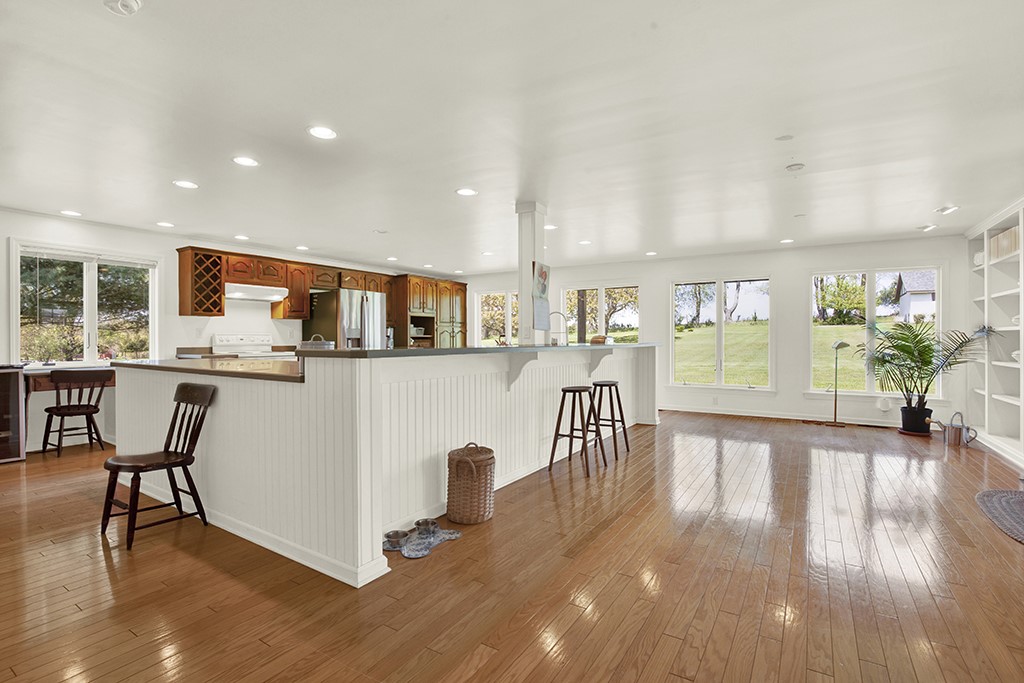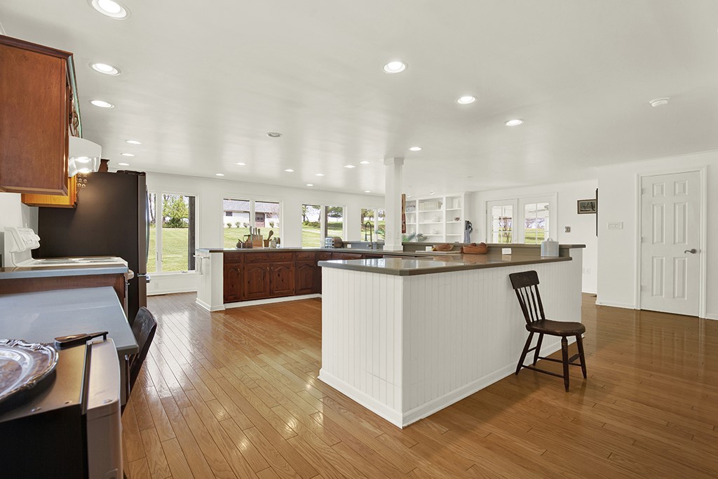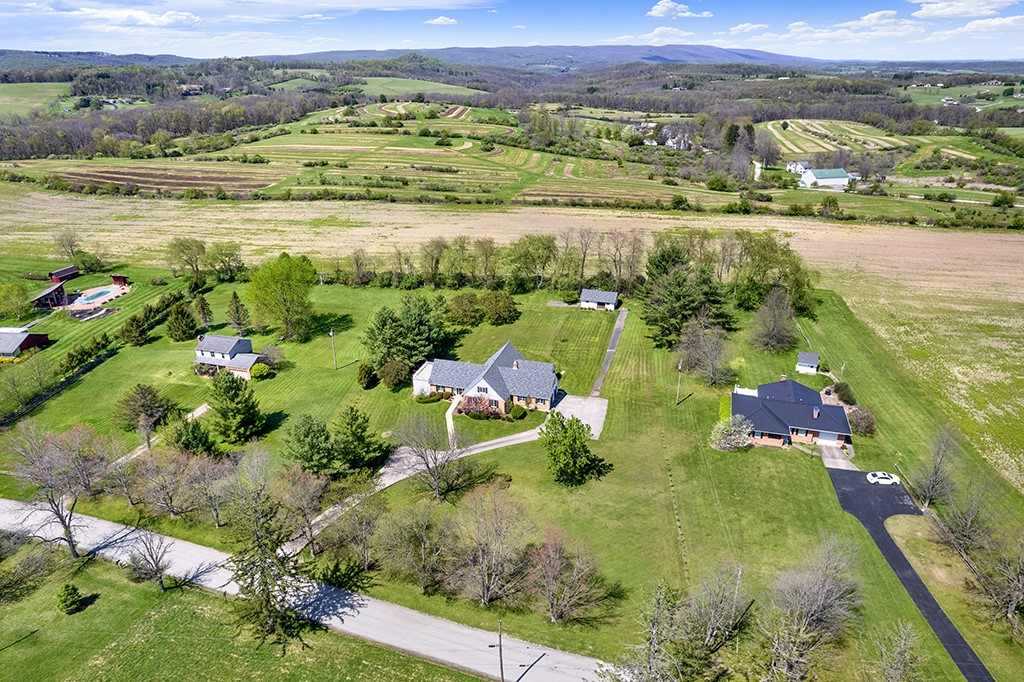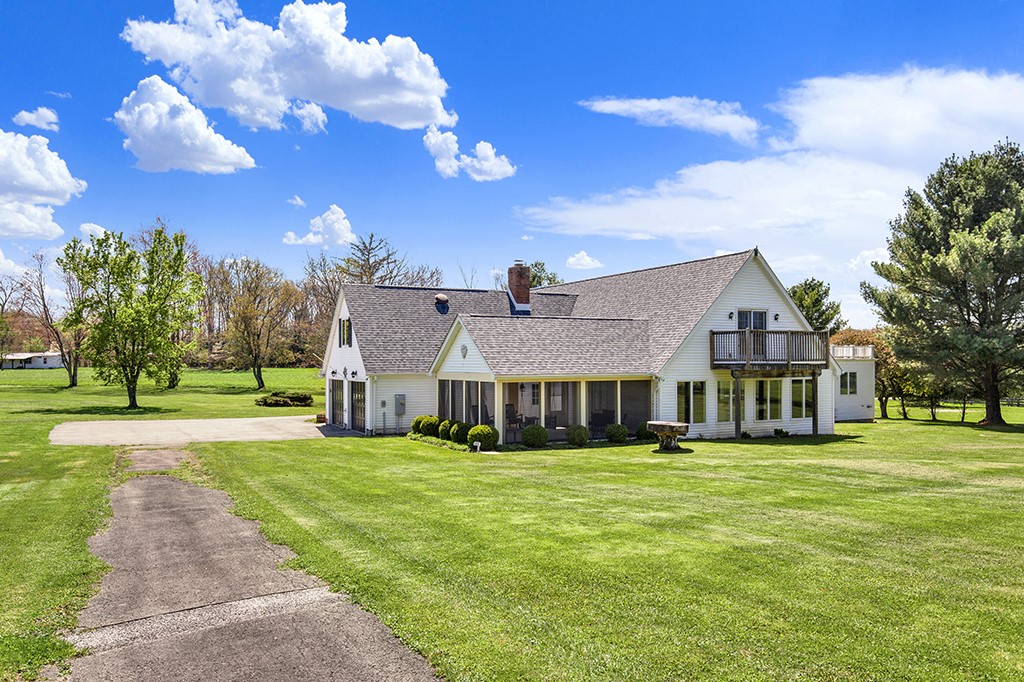 Absolutely beautiful home in a prime Ligonier location on 2 acres backing to protected Hodge's Farm. This 4-bedroom, 4.5-bath home offers an open-concept layout with a stunning kitchen featuring an oversized U-shaped island, perfect for entertaining and seamlessly open to the main living spaces. The living room showcases a beautiful stone hearth wood-burning fireplace and handsome wet bar. First-floor primary suite with updated bath and walk-in closet (currently used as a gym). Enjoy the large screened-in porch just off the kitchen, ideal for relaxing or hosting. Upstairs features 3 en-suite bedrooms, including one with a private balcony overlooking the level backyard and distant mountain views, plus a den/sitting area. Additional highlights include a spacious office with built-ins, main floor laundry, abundant natural light, ample storage, hardwood floors, oversized 2-car garage with workshop space, an additional detached garage and a brand new roof (2025). A rare opportunity to own a beautifully maintained home with comfortable, easy living, just minutes from the heart of Ligonier and all the amenities of the Laurel Highlands!