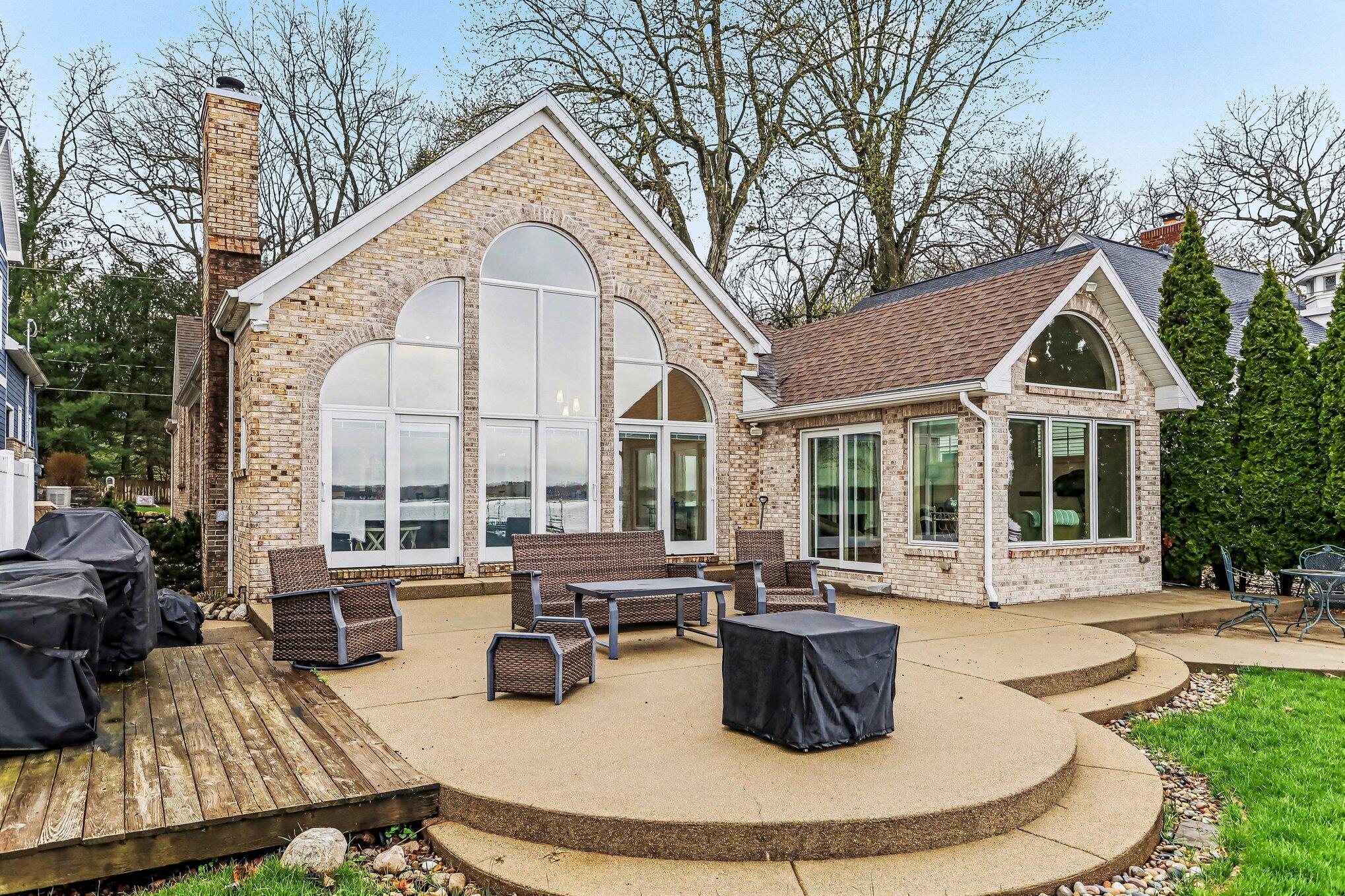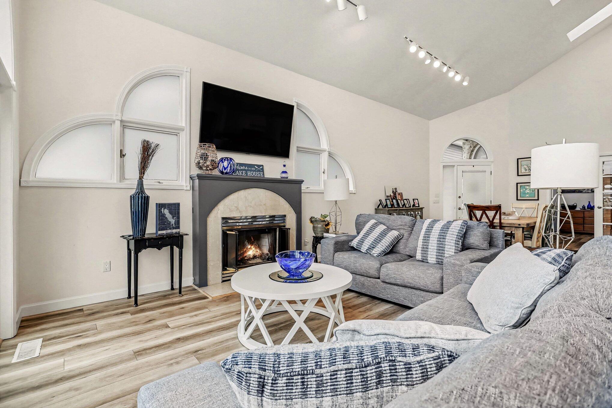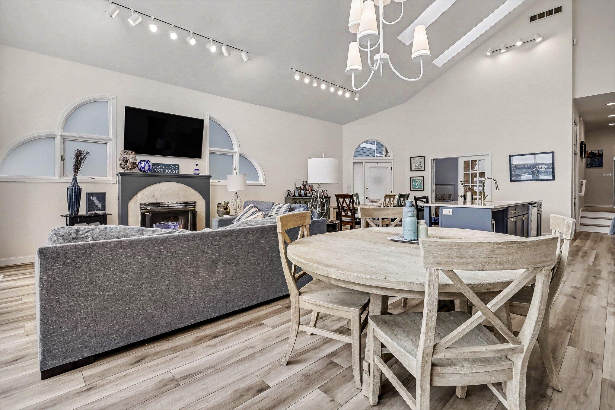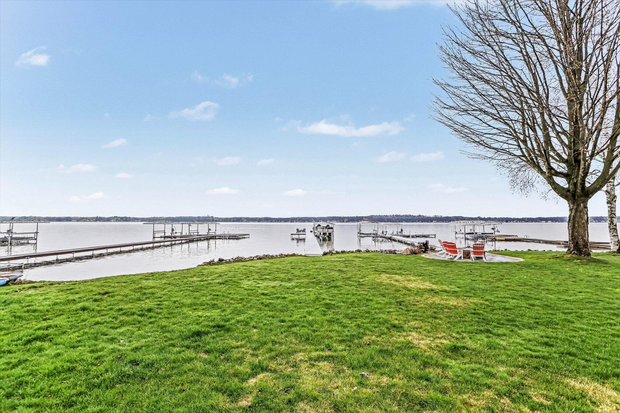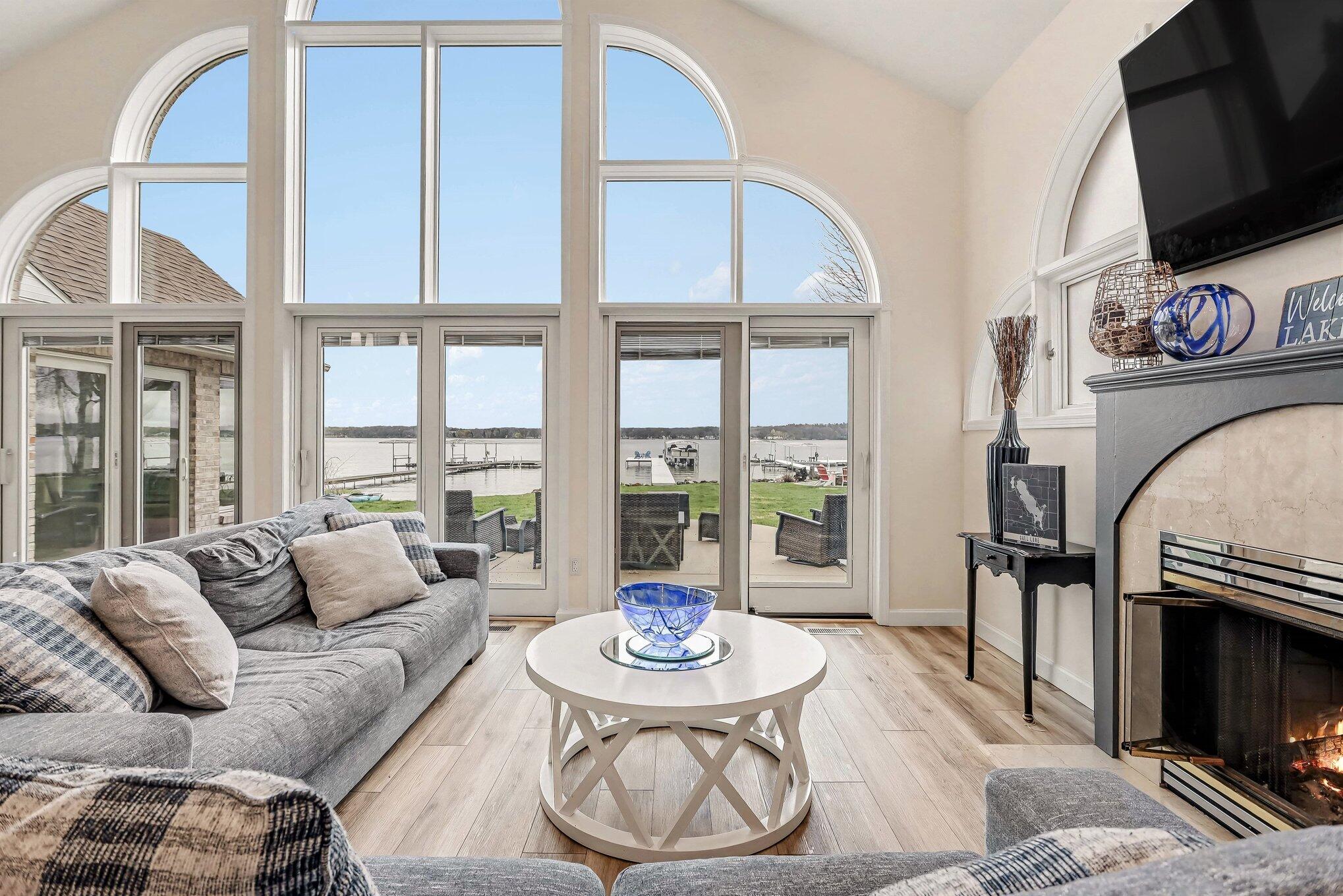 GULL LAKE - Experience true lakefront living in the desirable Idlewild neighborhood with private sandy frontage on crystal-clear Gull Lake and plenty of dock space for boats and water toys. This 3 bedroom, 2 full bath home offers a light and bright open floor plan featuring a HUGE living room with cathedral ceilings and fireplace, flowing into the dining area and updated kitchen with seating bar. The main floor includes a spacious primary suite with jetted tub, walk in closet, 2nd bedroom w walk in closet. an office currently used as a 4th bedroom, laundry, mud room, and a second full bath with convenient exterior access--perfect for lake days. Upstairs, you'll find a large bedrooms, with walk-in closets. Relax or entertain year-round in the inviting 4-season sunroom. Outside, enjoy a flat yard leading to your sandy beach, an expansive low-maintenance cement patio, whole-house generator, deep extra-wide 2-car garage, and ample parking. Private Gull Lake frontage--ready for summer.