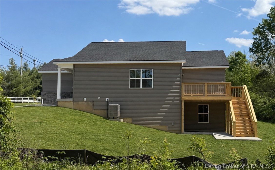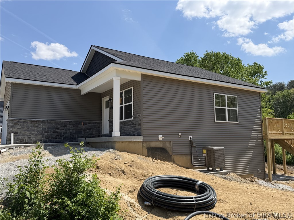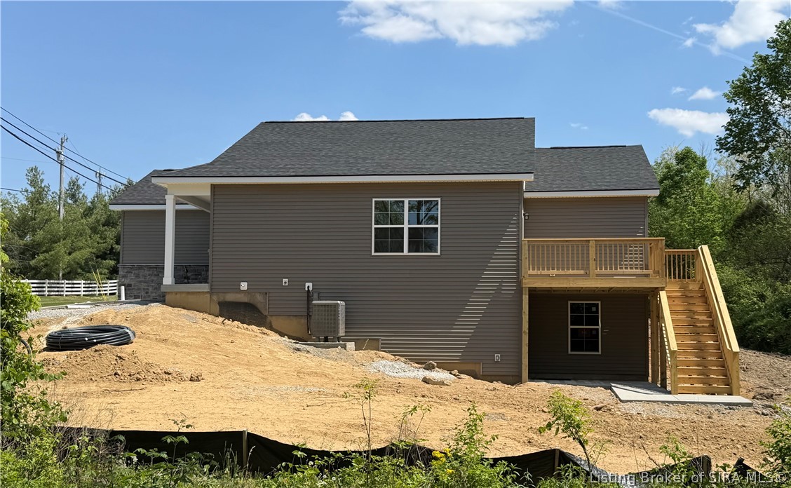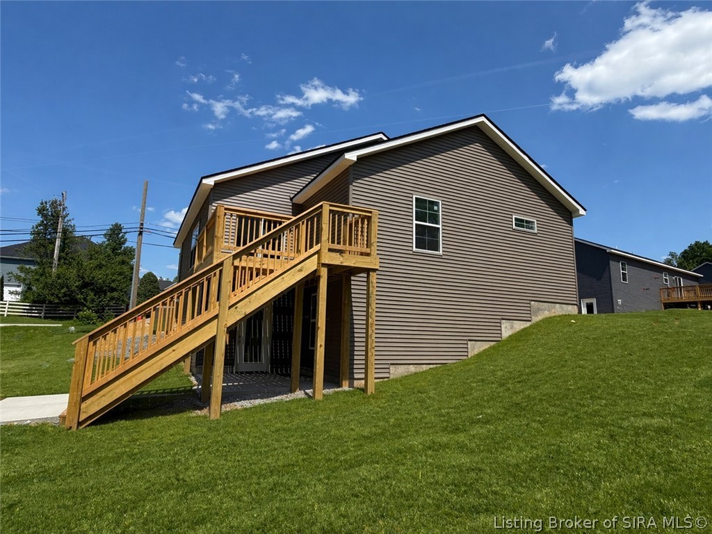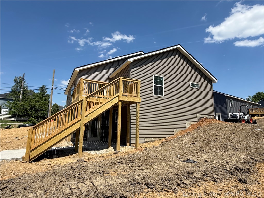Welcome to this beautifully designed new construction home in desirable Floyd County offering modern style, functional living, and room to grow! Featuring 3 bedrooms and 2 full bathrooms on the main level, this home showcases an open and inviting layout perfect for today's lifestyle. The vaulted ceiling living room creates a bright and spacious feel and flows seamlessly into the kitchen, complete with an oversized island with breakfast bar seating - ideal for entertaining or everyday living. The eat-in kitchen opens directly to the deck, providing the perfect space to enjoy outdoor gatherings. The primary suite offers a comfortable retreat with double closets and a private ensuite bathroom, while two additional bedrooms provide flexibility for guests, office space, or hobbies. The unfinished walkout basement with 9 foot ceilings offers incredible potential - easily finished to add a 4th bedroom, family room, or additional living space to suit your needs. Additional highlights include LVP flooring throughout the main level and a 2 car attached garage. Quality new construction with space to customize and grow - schedule your showing today!