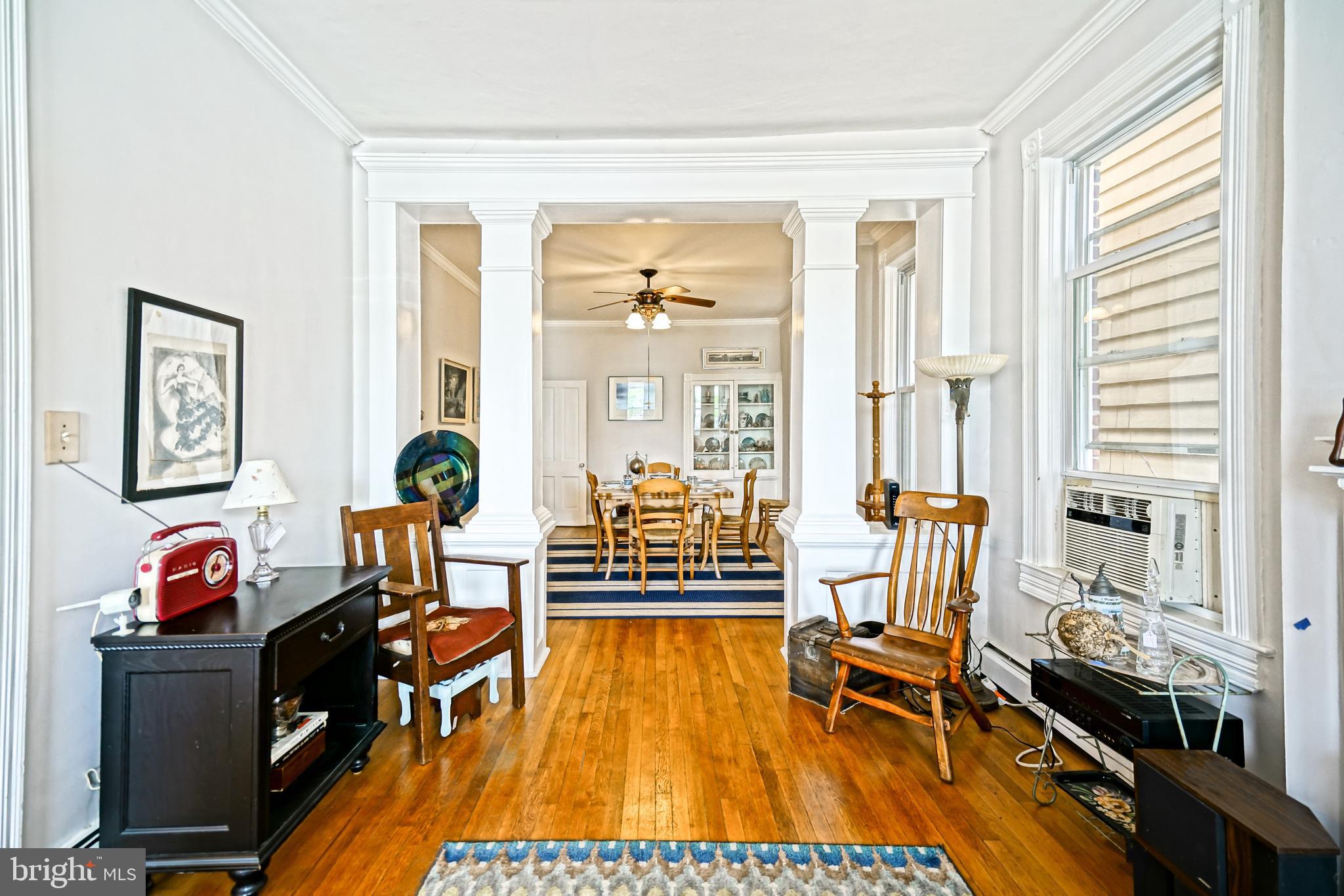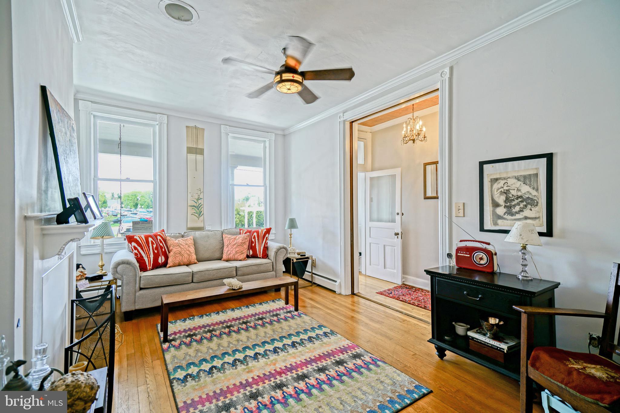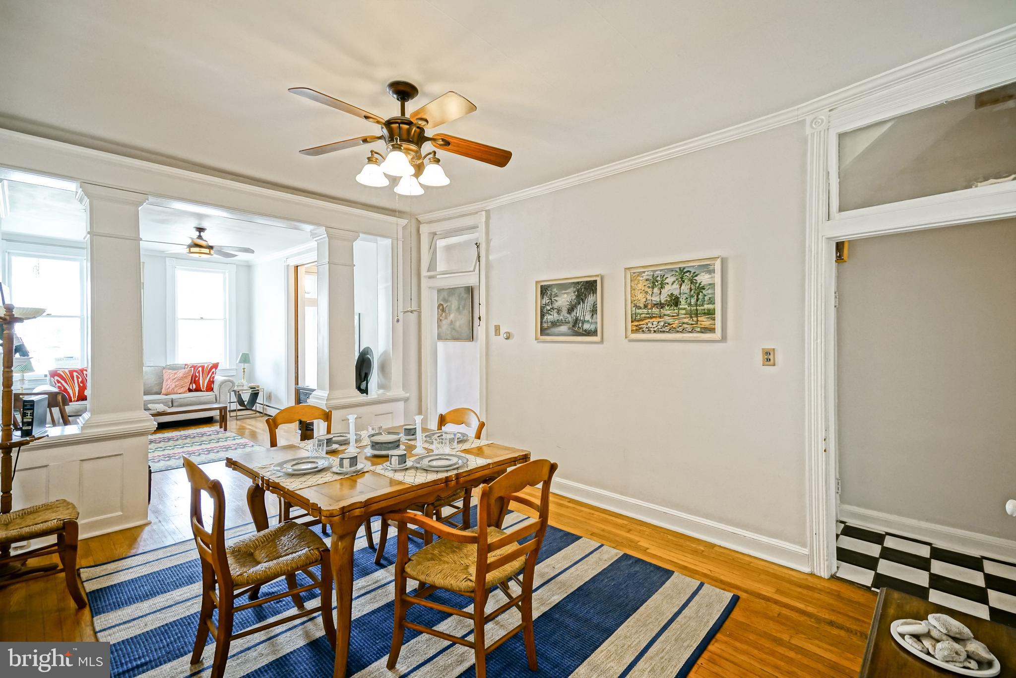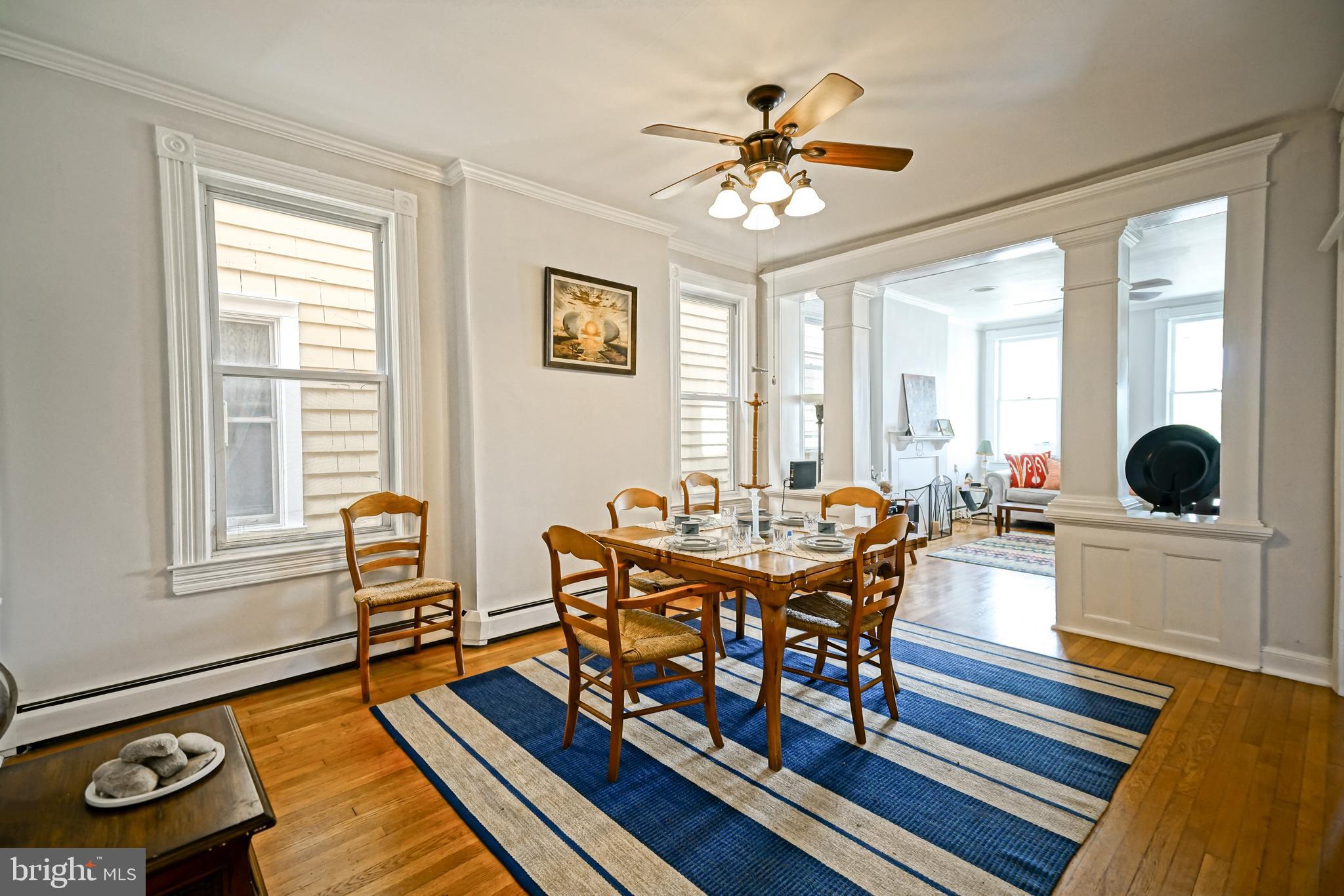 END UNIT TOWNHOUSE IN DOWNTOWN HISTORIC LEWES! 3-bedroom End Unit in Lewes Historic District. Discover timeless charm and coastal convenience in this beautifully preserved 3-bedroom, 1.5-bath end-unit townhome located in the highly sought-after downtown Lewes Historic District - less than one mile to Lewes Beach and just moments from boutique shopping, award-winning dining, marinas, and the Delaware shoreline. This historic Lewes home showcases rare original architectural details, including chestnut pocket doors, transom windows, graceful arches, and custom built-ins, seamlessly paired with modern livability. Inside, 10-foot ceilings, oak and heart pine hardwood floors, and abundant natural light create a warm, inviting atmosphere throughout. The main level features a spacious living room, a formal dining room with built-in cabinetry, and a character-rich eat-in kitchen with exposed brick, black-and-white checkerboard tile flooring, a stamped tin ceiling, and a sunlit window over the sink. A cozy sunroom offers the perfect space for morning coffee or quiet relaxation, while a convenient powder room completes the first floor. Upstairs, you'll find generously sized bedrooms with continued hardwood flooring and a full bath. A full unfinished walk-out basement provides excellent storage or future expansion potential. Outside, enjoy a charming English garden with Japanese hydrangea or unwind on the expansive covered front porch with classic columns. Located in Lewes, Delaware - known as The First Town in the First State - this home offers exceptional walkability to shops, restaurants, beaches, bike trails, and coastal attractions, and is just a short drive to Rehoboth Beach. A rare opportunity to own a historic downtown Lewes property ideal as a primary residence, vacation home, or investment. Don't miss this unique opportunity - schedule your showing TODAY!