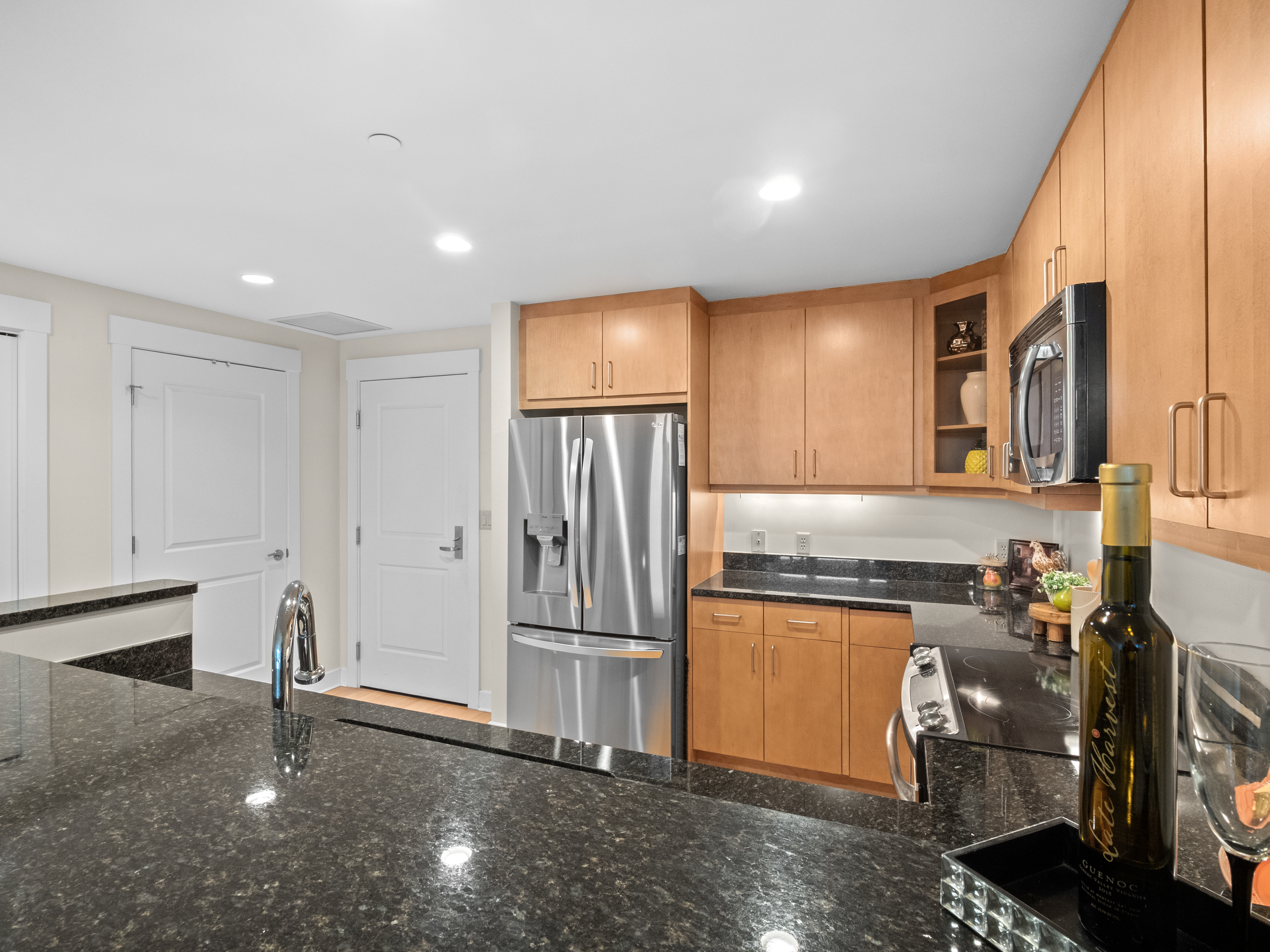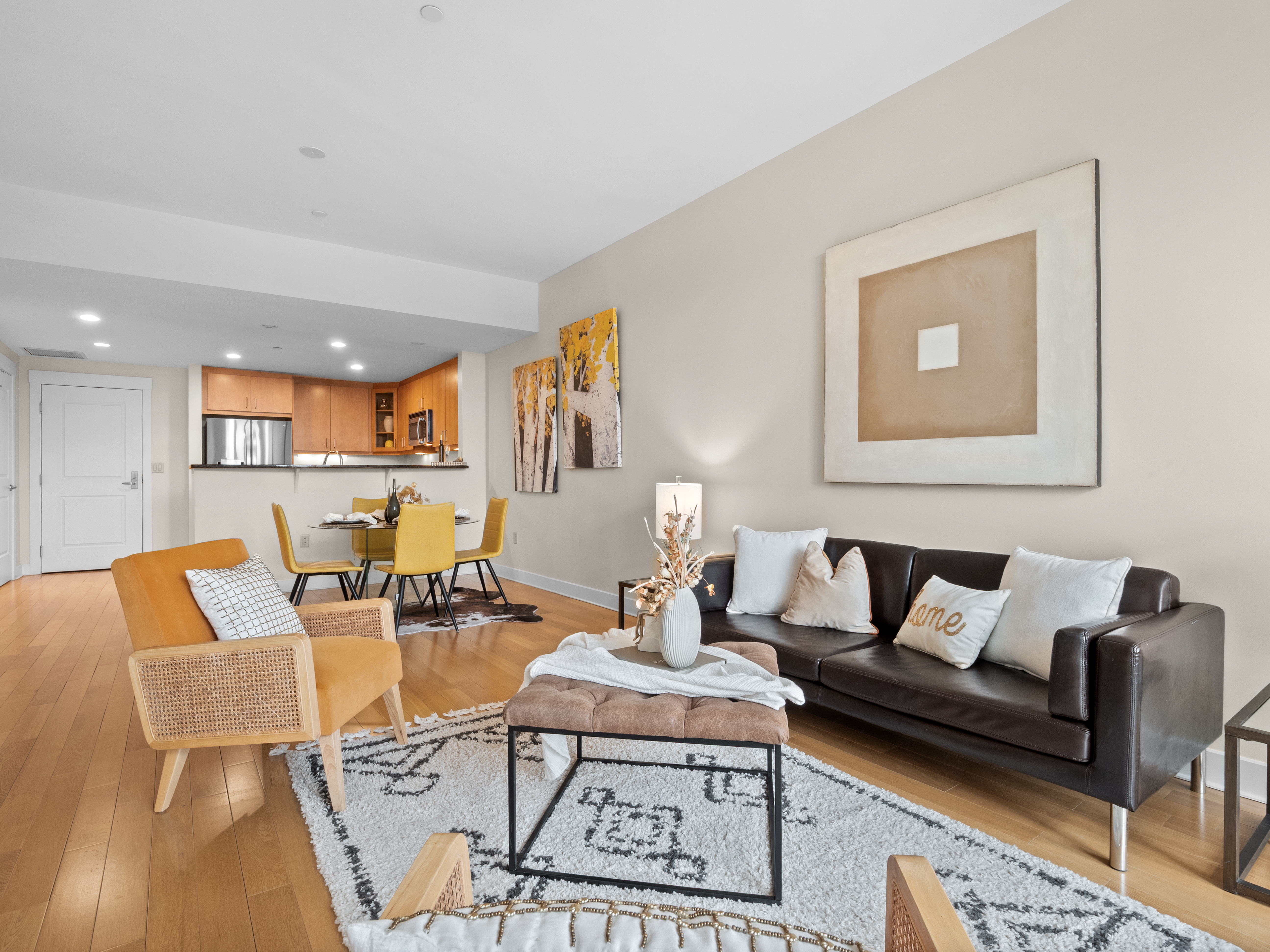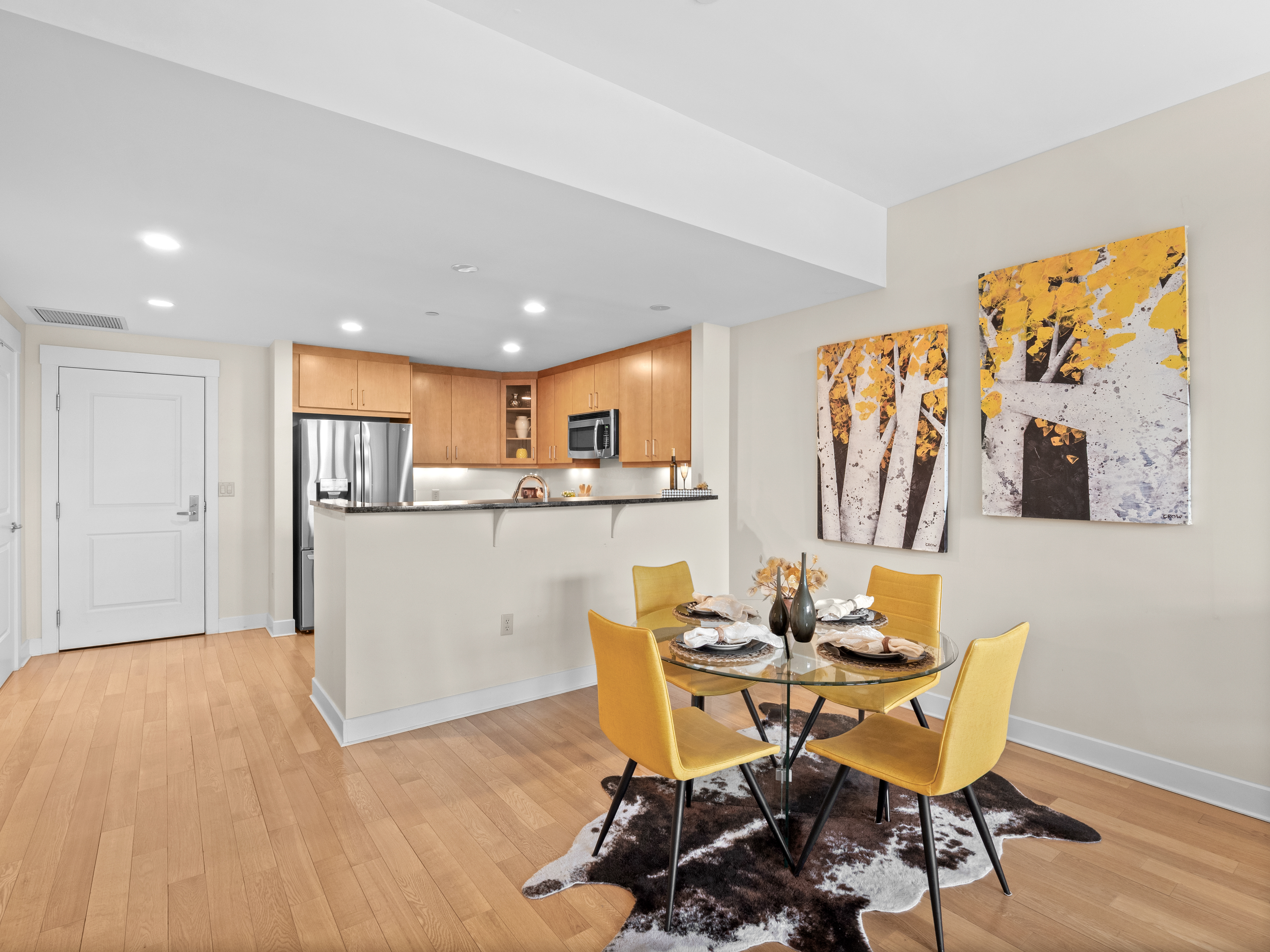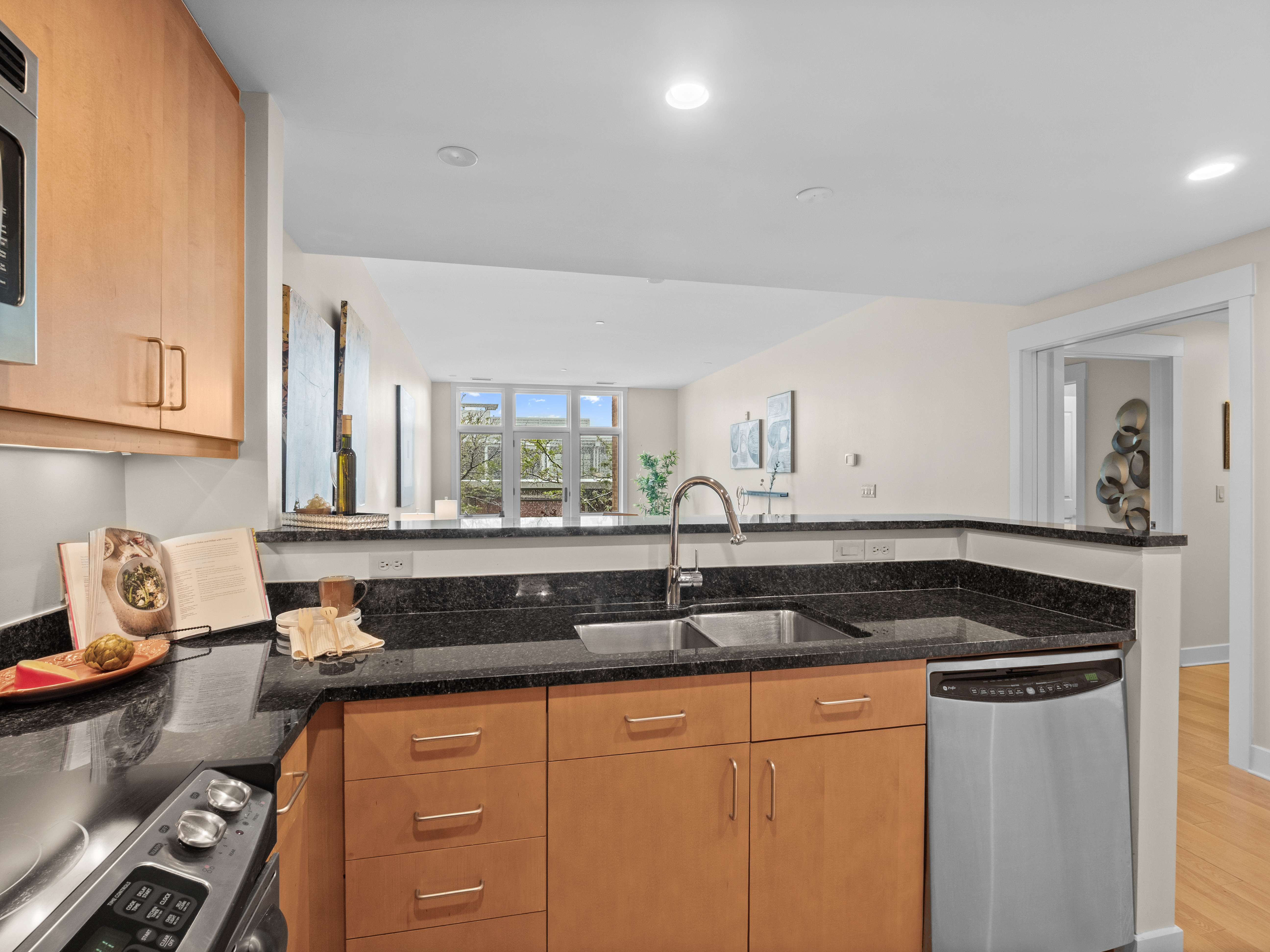 Perfectly positioned in the heart of Belmar’s vibrant downtown district, this residence offers a low maintenance, lock and leave lifestyle with nearly 1,200 square feet of open living space, a scale rarely found in a one bedroom home. Thoughtfully designed, the home features expansive windows, a Juliet balcony overlooking the plaza, and a generously sized primary suite with a walk in closet, complemented by a well-appointed 5 piece bathroom. Step outside and experience Lakewood’s premier destination for shopping, dining, and entertainment, with over 80 boutiques, restaurants, and year round events just moments from your door. Overlooking the plaza, the Juliet balcony provides a front row connection to the energy of the community while still offering a comfortable and private retreat above it all. Inside, the home immediately stands apart. The open concept layout creates a natural sense of space and flow, while expansive windows fill the living area with natural light and establish a seamless visual connection to the plaza below. The balcony extends that connection, offering a subtle outdoor element without compromising interior space. The kitchen is designed for both function and flow, anchored by slab granite countertops, stainless steel appliances, and an eat at peninsula that integrates effortlessly with the living and dining areas. The primary suite continues the theme of generous proportions, offering over 330 square feet of space, large enough to accommodate a flexible environment for seating or workspace. A walk in closet provides ample storage, while the five piece bathroom features a soaking tub, glass enclosed shower, and a dual sink vanity. Additional features include in unit laundry, elevator access, a deeded underground parking space, and a private storage locker. For buyers seeking space, simplicity, and a true urban lifestyle without the density of downtown, this residence offers a compelling opportunity in Lakewood’s most sought after location.