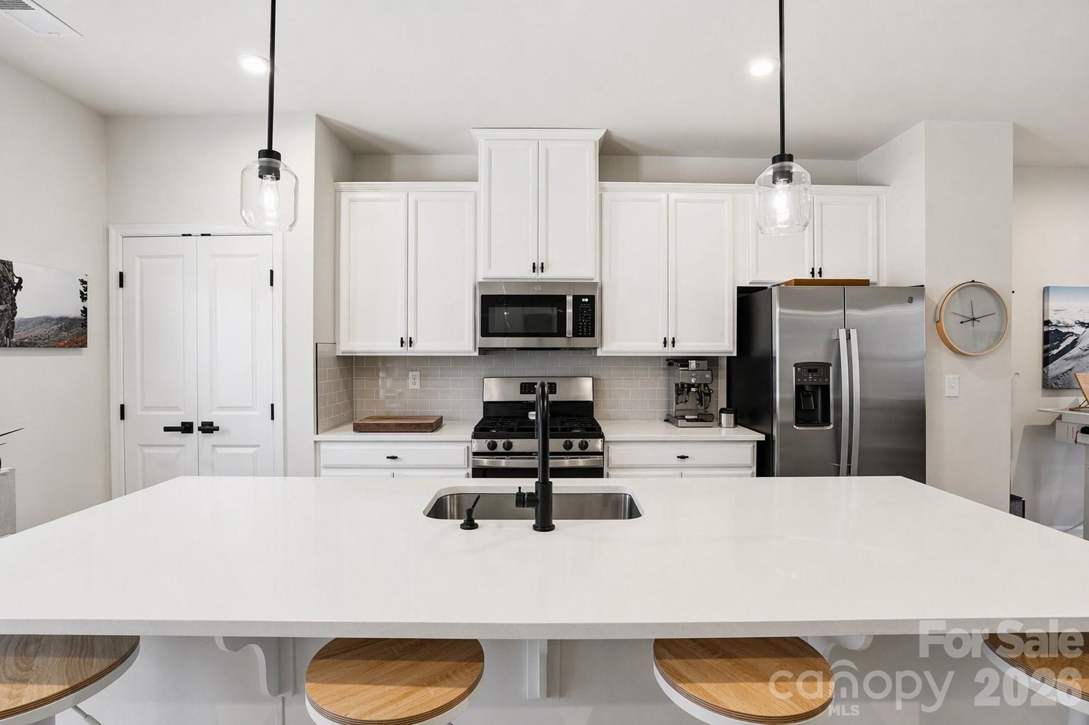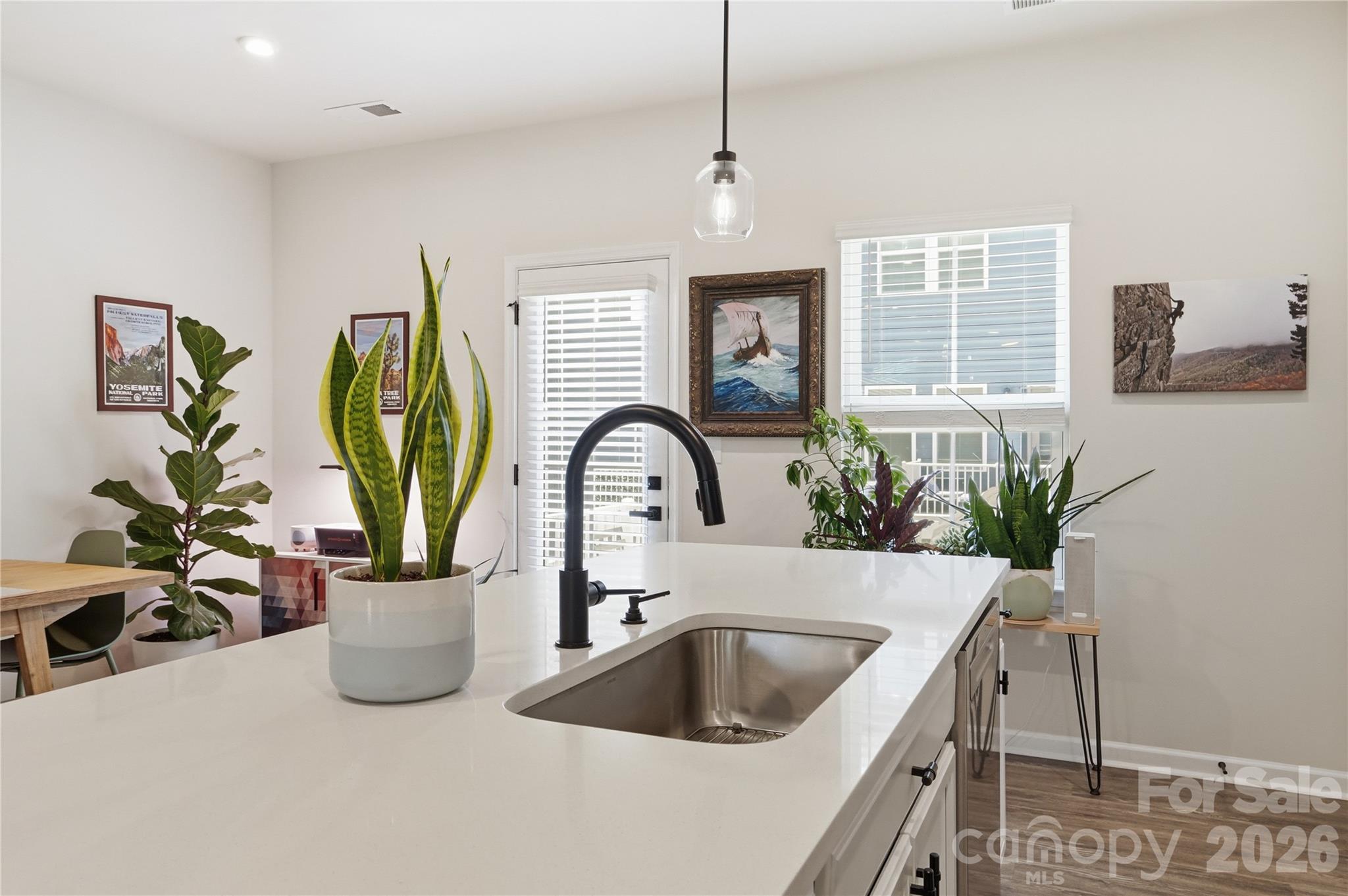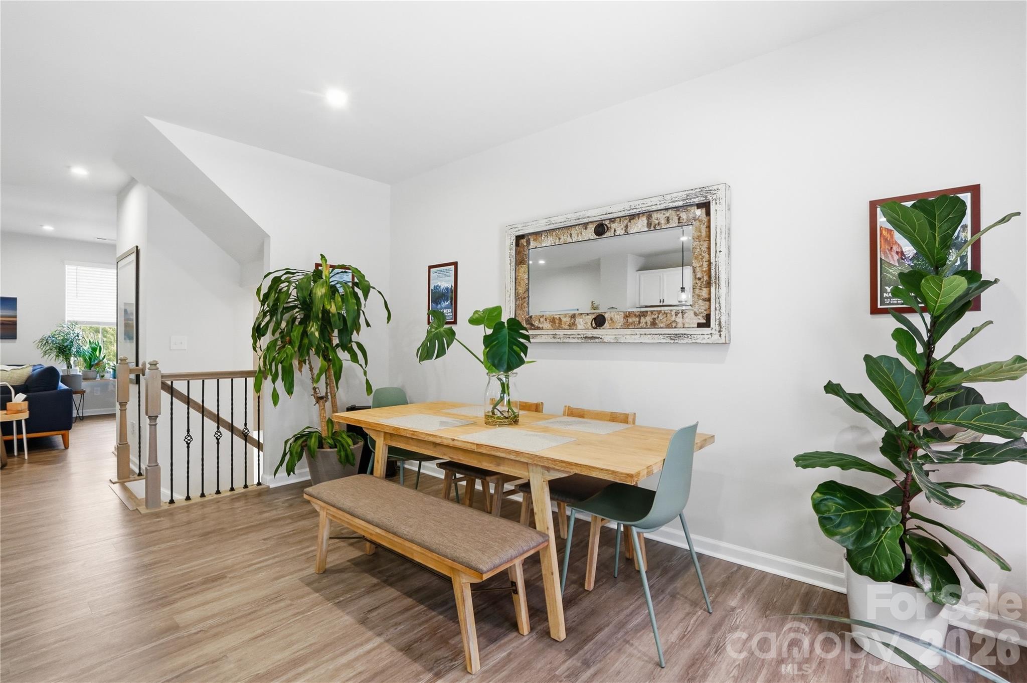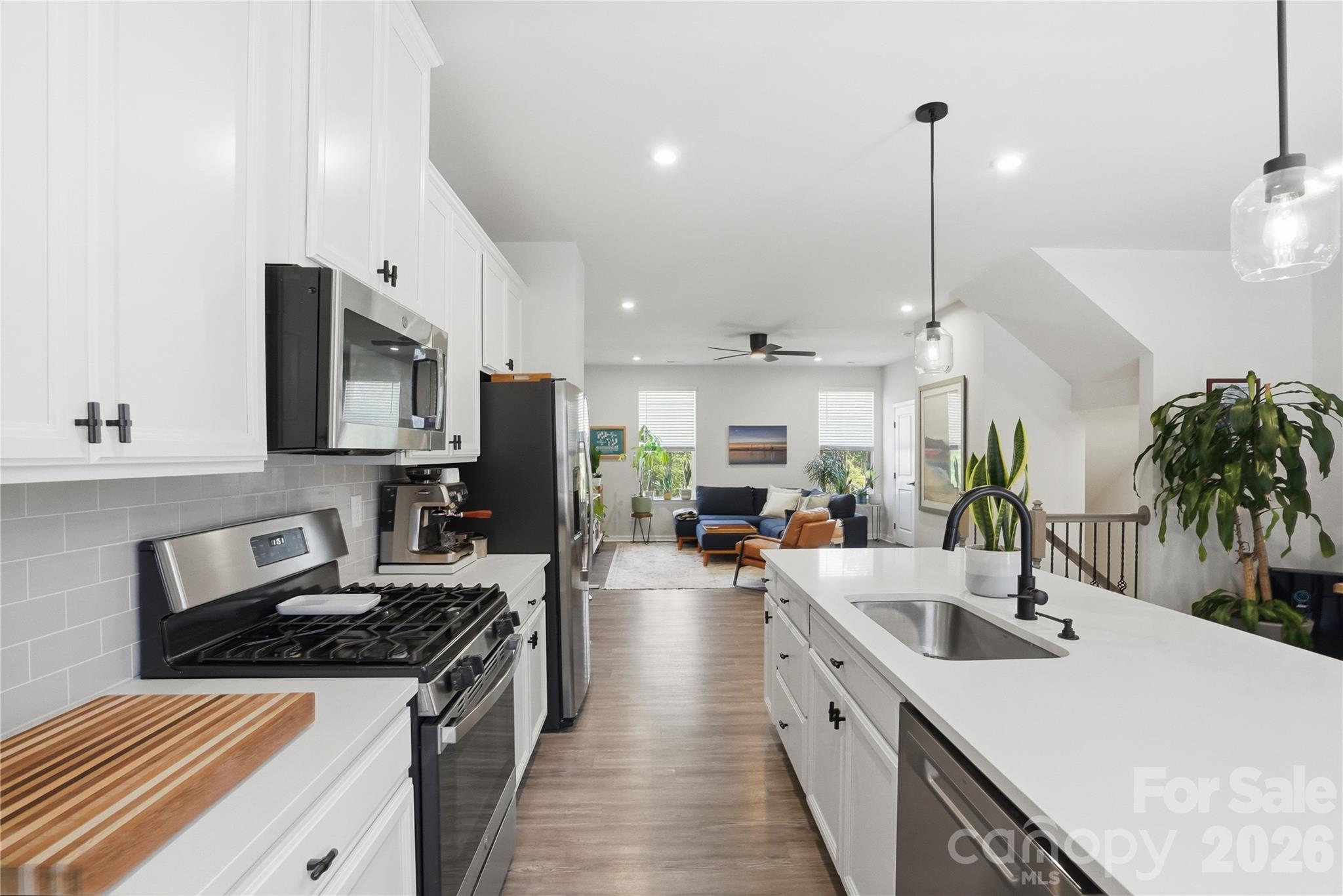 Bright and thoughtfully designed, this three-level townhome stands out with upgraded finishes, cohesive design, and functional living. Built in 2022 and well maintained, it offers modern comfort and everyday ease in Riverbend Towns. The entry level features a versatile flex space ideal for a home office, media room, or fitness area, along with a TWO CAR garage and a FULL driveway, offering parking flexibility not commonly found in similar townhomes! A 30 AMP outlet in the garage adds additional functionality. Great storage throughout includes two walk-in closets, a coat closet on the entry level, and a spacious linen closet in the third-level full bath. Wide-plank LVP flooring flows throughout the main and upper levels, complemented by natural oak stairs, blinds, and updated lighting for a clean, cohesive look. The upper level showcases open concept living with a spacious kitchen, dining, and living area filled with natural light and flowing seamlessly to a deck, creating an easy extension for indoor-outdoor living. The kitchen features frost white quartz countertops, matte black hardware, stainless steel appliances, a gas range, and a Delta Trinsic faucet. Refrigerator and washer/dryer convey. A tankless gas water heater adds efficiency. The primary suite features a tray ceiling, walk-in closet, and an upgraded bath with quartz countertops and a walk-in shower with dual showerheads and a glass barn-style door. Two additional bedrooms, a full bath, and a conveniently located laundry area complete the upper level. HOA-maintained landscaping supports a low-maintenance lifestyle. Convenient to Uptown Charlotte, Charlotte Douglas Airport, Huntersville, and Mountain Island Lake, with easy access to I-485 and NC-16. Move-in ready with thoughtful upgrades and modern finishes throughout, this townhome stands out as a rare opportunity in Riverbend Towns - combining elevated design, functional living, and a location that truly delivers!