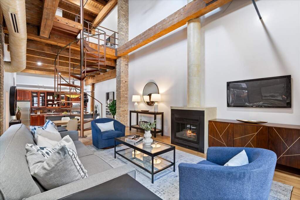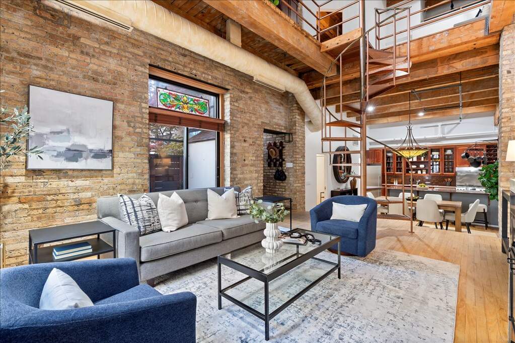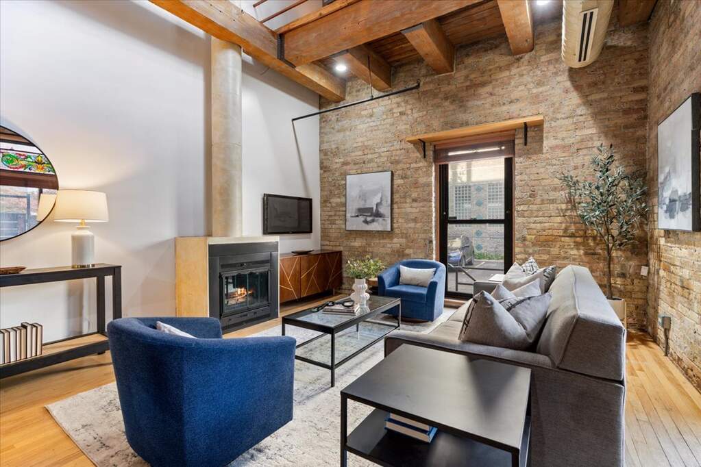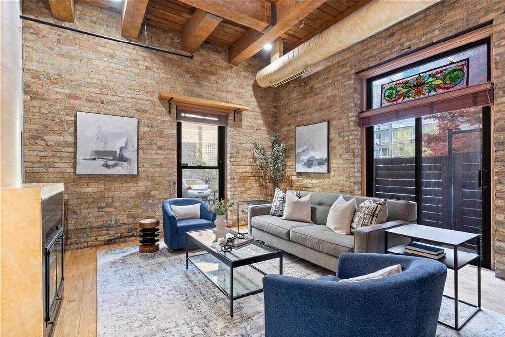 Lincoln Park Timber Loft- A rare opportunity to own one of the most unique properties in all of Chicago! From the main level living room, LOOK UP! At the heart of the home is a dramatic two-story living space connected by a staircase and defined by soaring 28-foot timber ceilings, oversized windows, exposed brick and an interior balcony surround! The second-level balcony overlooks the entire space below, creating a dramatic, open layout that feels both expansive and architecturally unique. There is nothing like it! Spanning approximately 1,750 square feet, this 2-bedroom + den home lives like a single-family residence, with hardwood flooring, and curated lighting and art throughout. A private entrance and secluded patio create a rare indoor-outdoor experience-completely removed from the street. The chef's kitchen is thoughtfully designed with cherry cabinetry, granite countertops, and professional stainless steel appliances. It flows seamlessly into expansive living and dining areas ideal for both entertaining and everyday living. The first bedroom and bath are on the main level for convenient access. Head up to the second floor where you will find an open second living room, and a wide interior balcony that surrounds the perimeter of the living room below. There is plenty of space in this area for work stations, a library or an art studio. The primary suite features a spa bath with a massaging whirlpool tub, alongside two fully organized walk-in closets, laundry and abundant additional storage. Tucked away within the architecturally rich Surrey Court, this extraordinary duplex offers the perfect balance of design, volume, and privacy. This boutique 22-unit warehouse-to-condo conversion preserved the industrial character, but added modern functionality-offering a quiet, open setting just moments from DePaul University, Lake Shore Athletic Club, Midtown, shops, and cafes. Experience unmatched convenience with a Starbucks just across the street and the Fullerton CTA Station only three blocks away-servicing the Red, Brown, and Purple lines-plus immediate access to the lakefront. Enjoy being near to the world's best dining and cafes. Located within the highly sought-after Oscar Mayer Elementary School and Lincoln Park High School districts. Deeded parking included. A truly one-of-a-kind home in one of Chicago's most sought-after locations!!
