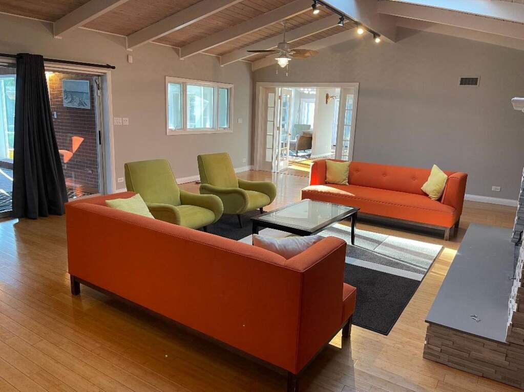 Set on an exceptional 1.38-acre parcel, fully fenced in sought-after Lake Forest, this spectacular ranch offers a rare blend of privacy, space, and resort-style living with convenient access to the scenic trails at Middlefork Savanna Forest Preserve and Elawa Farm. Thoughtfully updated, the home spans over 5,000 square feet of living space, designed for both comfortable everyday living and effortless entertaining with wonderful natural light in every room. A gracious foyer opens to expansive dining room and living rooms, each anchored by a fireplace and filled with natural light, volume ceilings and skylights. The gourmet kitchen features high-end appliances, an island, and generous table space, also flowing seamlessly into a welcoming family room and sunroom with sweeping views of the beautiful grounds. One of the home's most distinctive features is the indoor pool, with large deck area, with a dedicated dressing area/full bath. The dramatic views and multiple doors on each side of the pool opens to the deck and gardens-creating a true year-round oasis. The private primary suite offers a serene escape with sweeping views of gardens, large primary bath and ample closet space. The home complemented by three additional large bedrooms and two well-appointed hall baths on the main level. Additional highlights include cathedral ceilings, skylights, hardwood floors, a finished lower level with recreation and game space, two powder rooms, and workshop area accessed through the two car garage. Recent improvements include a new roof (2020) and interior repainting (2026). Ideally located within the highly regarded Lake Forest Community High School District 115 and Lake Forest School District 67, this property presents a unique opportunity to own a sprawling ranch in one of the North Shore's most desirable settings.