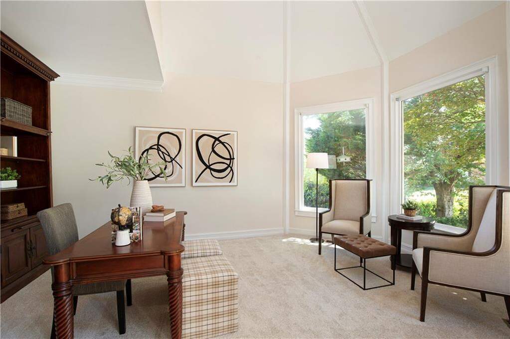 A rare opportunity to secure an exceptional value in one of Alpharetta's most sought-after communities, where updated homes command prices in the high $1.2M range. Welcome to 4235 Park Brooke Trace a light-filled residence offering timeless scale and incredible potential to personalize. Freshly painted throughout with all-new carpet, the home presents a true blank canvas. A dramatic two-story foyer sets the tone, enhanced by a new chandelier and flanked by a refined office with a distinctive turret-style ceiling and a generously sized dining room designed for elegant entertaining. The main living space unfolds into a stunning two-story great room, where floor-to-ceiling windows frame serene, tree-lined views and flood the home with natural light. A central fireplace anchors the space, creating a warm yet sophisticated gathering area. The open-concept layout flows seamlessly into the kitchen, featuring a breakfast bar, casual dining area, stainless-steel appliances, and an inviting keeping room. A main-level guest suite offers comfort and privacy, complemented by a beautifully renovated bath with a custom vanity and designer tile shower. Upstairs, the primary suite is a true retreat, offering tranquil wooded views and ample space for a sitting area, perfect for quiet mornings or unwinding at day's end. The spa-like bath includes dual vanities, a walk-in shower, soaking tub, and a spacious walk-in closet. Additional bedrooms are well-appointed, including two sharing a Jack-and-Jill bath and a third with its own ensuite, ideal for guests. The terrace level is designed for entertaining, featuring a custom bar, expansive recreation space for billiards or media, plus a dedicated workout room, storage, and an additional guest suite with full bath. Outdoor living is equally compelling with two elevated decks. One, just off the kitchen, is ideal for dining and grilling, while the second is an expansive entertaining space complete with a gazebo, custom bar, grilling island, and a new hot tub. For those seeking more lawn space, the layout offers flexibility to reimagine the backyard into a level, landscaped oasis. Set within the vibrant Park Brooke community, known for its tree-lined streets, sidewalks, and active lifestyle amenities including swim, tennis, clubhouse, and direct access to the Big Creek Greenway, this home combines location, lifestyle, and long-term value. Opportunities at this price point in Park Brooke are increasingly rare and fleeting. This is your moment to create something truly special.