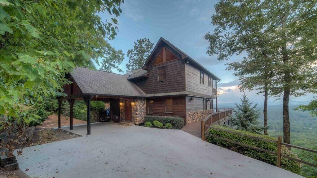 Welcome to Blue Mist Heaven, a spectacular 4BR/3BA luxury mountain cabin offering breathtaking 180 panoramic mountain views, exceptional outdoor living, and strong appeal as both a high-performing vacation rental and private retreat-just 10 minutes from downtown Blue Ridge. This beautifully designed tri-level showplace sleeps up to 12 guests and features soaring floor-to-cathedral-ceiling windows, two impressive river rock gas fireplaces, and upscale mountain-modern finishes throughout. The spacious great room is the heart of the home, perfect for entertaining or relaxing beside the fire while taking in the incredible views. The gourmet kitchen is a chef's dream with dual ovens, granite countertops, premium appliances, bread-warmer drawer, and generous seating including dining table, island seating, and additional breakfast space-ideal for hosting large gatherings. The upper-level owner's suite offers a private sanctuary complete with vaulted ceilings, screened-in porch, electric fireplace, Jacuzzi tub, custom river rock shower, and dual granite vessel sinks. King suites on multiple levels open directly to the expansive wraparound deck, maximizing indoor/outdoor mountain living. Designed for entertaining and guest enjoyment, the terrace level features a theater room with 82" screen, recliners, wet bar, ect, Outdoor amenities truly set this property apart: Covered outdoor fireplace ,Wraparound decks with panoramic views, Screened-in porch retreat Large level backyard (rare for mountain homes)Lighted gazebo with bench swings, Rock fire pit gathering area, Playground set with slides & swings, Picnic and lounge deck spaces, Ample paved parking. Additional features include high-speed internet, multiple entertainment spaces, library/loft flex area, laundry facilities, and dog-friendly setup. Whether you're searching for a luxury full-time residence, turnkey mountain getaway, or income-producing investment property, this exceeds expectations!