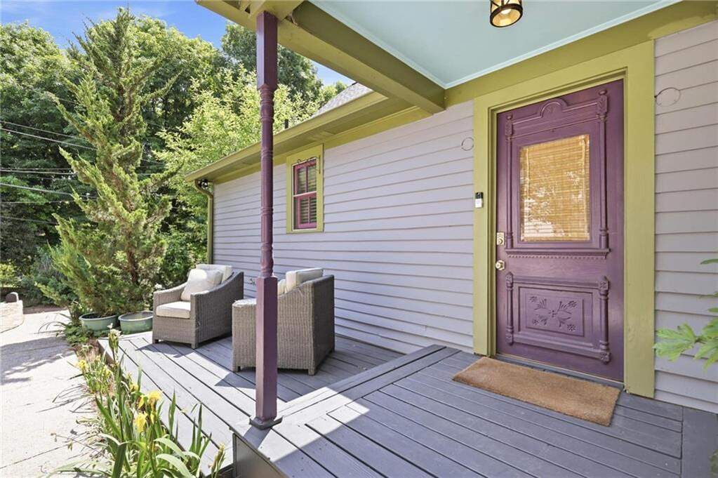 A true rarity in Cabbagetown- 1920's charm, off-street parking, a great yard, 12-foot ceilings, and an unbeatable spot right across from Cabbagetown Park. Painted in Cabbagetown's signature purple with green trim, 213 Tye Street is character-filled and recognizable by anyone walking through Cabbagetown Park. Inside, you'll find two spacious bedrooms, each with its own ensuite bath, plus a powder room for guests- an easy, functional layout for everyday living or hosting. The open living space is bright and inviting, flowing into a large kitchen with a breakfast bar that's ideal for entertaining. Out back, the yard feels like your own private retreat lush and thoughtfully designed with a paver patio, workshop shed, and a sweet little greenhouse. A detached accessory structure adds incredible flexibility perfect for a studio, gym, or workspace. It's the kind of space you'll actually use, whether you're hosting friends or unwinding at the end of the day. The location truly speaks for itself- steps to the park and just a short walk to Carroll Street, the Atlanta BeltLine, and local favorites like Petit Chou, Grindhouse Killer Burgers, and The Eastern. A perfect blend of historic charm and modern livability. Own the home where everyone wants to hang out and the go-to host for Chomp & Stomp. Don't miss your chance to call this incredible home yours!