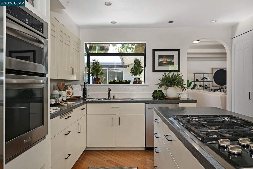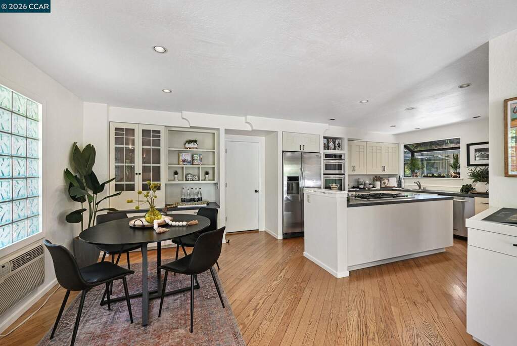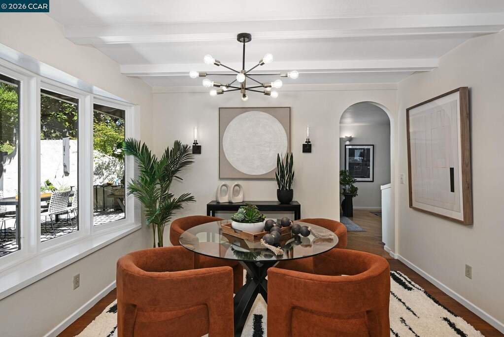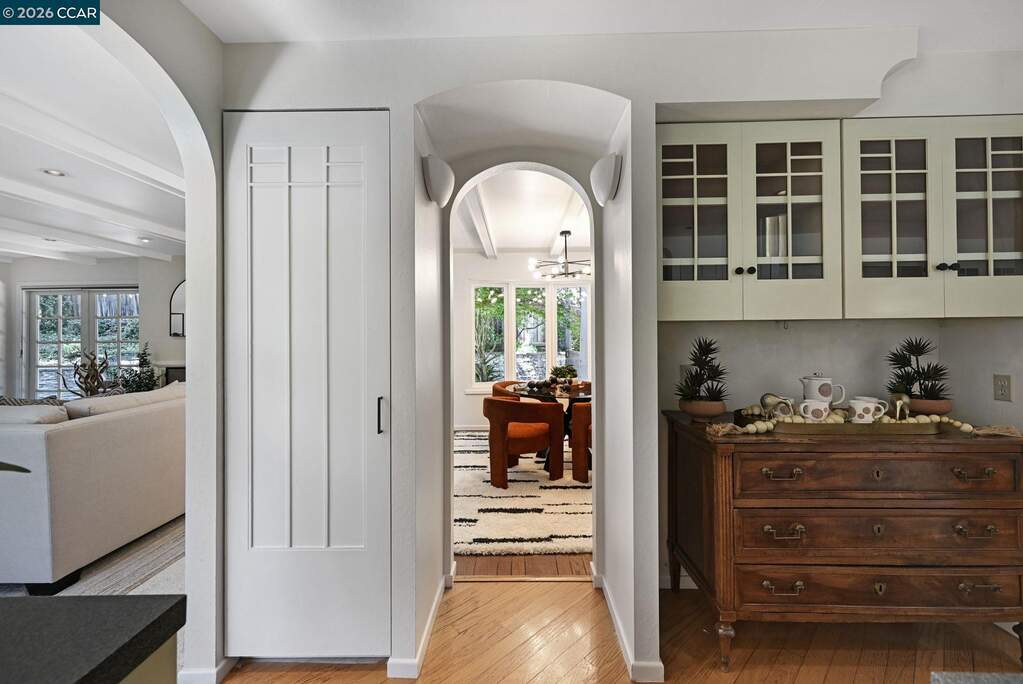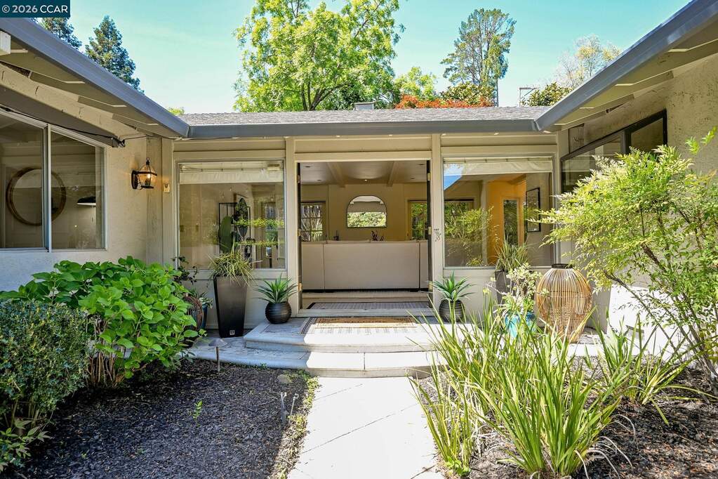 SNEAK PEEK! Join me for an enchanted Twilight Tour, Friday, 4/24/26 from 5:30 PM-7:30PM. This single-story mid-century rancher captures the essence of timeless California living. Nestled in Lafayette's coveted Burton Valley, this 4-bedroom, 2-bath home spans approximately 2,009 square feet on a serene & private .25-acre corner lot, directly across from Burton Valley Elementary. A gated courtyard opens to a double door entry welcoming you into the expansive living room w/ fireplace & two sets of French doors. The dining room w/ archways & curved bay window overlooks the zen backyard. The floor plan is flowing & flexible offering everyone a place to relax & create. Inside, freshly painted interiors, rich hardwood flooring, new carpeting & new light fixtures create a warm, inviting backdrop, while expansive windows and French doors blur the line between indoors & out-welcoming in soft natural light & garden views from nearly every room. The thoughtfully updated kitchen features premium Thermador stainless appliances, custom cabinetry, & an effortless flow into the main living spaces, adjacent family room & casual dining-perfect for both quiet evenings & lively gatherings. Step outside and the home truly comes alive. Mature trees sway gently in the breeze, their canopy creating a peaceful, almost storybook setting. Dappled light filtering across the landscape evoke the feeling of a hidden retreat in Carmel. A charming courtyard strung with twinkle lights offers an intimate escape, while the backyard deck invites al fresco dining, slow mornings, and relaxed evenings under the stars. Each spacious bedroom offers views to the outdoors. Both the primary & hall bath have been refreshed. Additional features include an attached two-car garage, newer HVAC, and lush, thoughtfully maintained grounds that reflect true pride of ownership and timeless curb appeal. This is more than a home-it's a rare opportunity to own a tranquil sanctuary in one of Lafayette's most beloved neighborhoods.