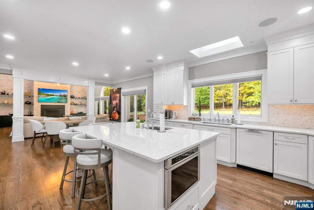 Spectacular custom estate in ultra-desirable Upper Saddle River. Thoughtfully designed for luxurious living at every turn. A grand two-story entry foyer introduces formal living and dining rooms, seamlessly flowing into a spectacular two-story great room with a dramatic wall of windows, custom built-ins, and a fireplace. The open-concept layout continues into a designer chefaEURs kitchen featuring top-of-the-line appliances, custom cabinetry, quartz countertops, an oversized center island, and a sunlit breakfast area overlooking the backyard oasis. A fully outfitted pantry, mudroom, powder room, and a first-floor en-suite bedroom complete the main level. Upstairs, the primary suite offers a true retreat with its own fireplace, dual walk-in closets, and a spa-like bath with radiant heated floors, an oversized shower, and a soaking tub. Three additional spacious bedrooms, including one en-suite, along with a full hall bath and laundry room, complete the second level. The fully finished lower level extends the living space with porcelain floors, a temperature-controlled wine room, private office, homework area, expansive recreation room with custom built-ins, gym, wet bar with dual refrigerators and dishwasher, and a custom playhouse. Designed for seamless indoor-outdoor living, the backyard is an entertaineraEURs dream, featuring a pizza oven, built-in BBQ, heated pergola, and a large seated island. Custom window treatments and light fixtures are included in the sale.