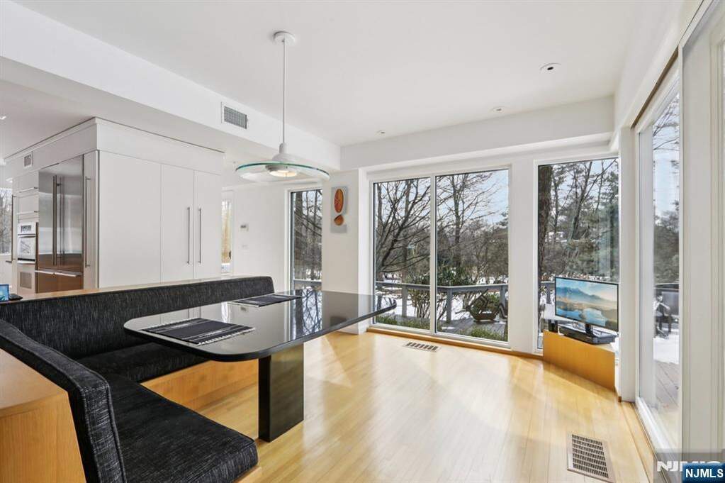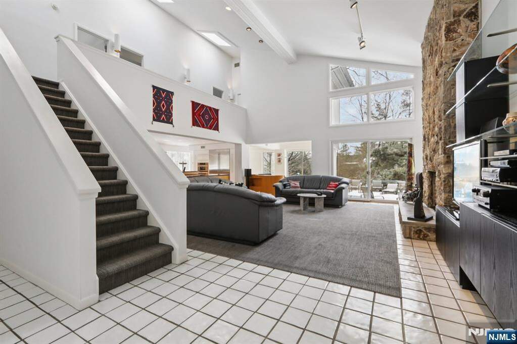 Set in a premier Upper Saddle River location, this custom home offers exceptional craftsmanship, comfort, and timeless appeal. Cathedral ceilings, large sun-filled windows, and elegant custom details create a warm yet sophisticated atmosphere throughout. The custom kitchen features oak cabinetry, an induction cooktop, Sub-Zero refrigerator, KitchenAid microwave/oven, built-in breakfast nook, and adjoining laundry/mudroom. Multiple sliding glass doors lead to an expansive deck and serene koi pond, creating an effortless indoor-outdoor flow for entertaining. The first-floor primary suite includes a beautifully appointed bath with double vanities and an oversized dual-outlet shower. Additional highlights include a three-floor elevator, three fireplaces, custom built-ins, and an integrated entertainment center. Upstairs, a library with built-in bookshelves and a dedicated office with custom workstations add charm and functionality. A full unfinished basement with built-in workbench, second washer/dryer, and a three-car garage complete this distinctive offering. Designed for both elegant entertaining and everyday ease, this is a home that feels as remarkable as it looks; warm, refined, and ready to be experienced in person.