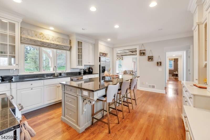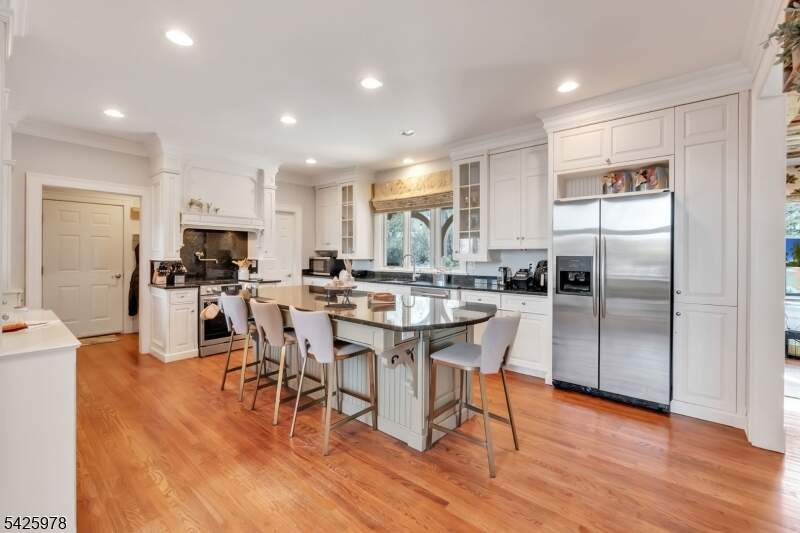Welcome to this stunning custom home thoughtfully designed & beautifully maintained, this residence offers a seamless blend of warmth, character, & modern functionality. Step inside to find an inviting living room highlighted by a cozy wood-burning stove & a striking reclaimed wood ceiling, creating a perfect balance of rustic charm & comfort. The spacious kitchen is a true centerpiece, featuring custom cabinetry, granite countertops, a large center island, pantry, & a butler?s pantry?ideal for both everyday living and entertaining. The kitchen opens to a dramatic two-story dining room with a wall of windows that flood the space with natural light. An open second-floor hallway overlooks the dining area, enhancing the home?s airy & architectural appeal. All four bedrooms feature soaring ceilings, including a luxurious primary suite complete with a floor-to-ceiling fireplace, ample closet space, & a spa-inspired bath.The third level offers a dedicated office along with easily accessible storage?no pull-down attic stairs required. The finished basement expands your living space with a media room & a bar area with room for a pool table, perfect for entertaining or relaxing at home. Outside, enjoy beautifully landscaped grounds with mature trees, landscape lighting, & a serene patio setting?ideal for gatherings or quiet evenings surrounded by nature. A truly one-of-a-kind property offering custom craftsmanship and exceptional living.