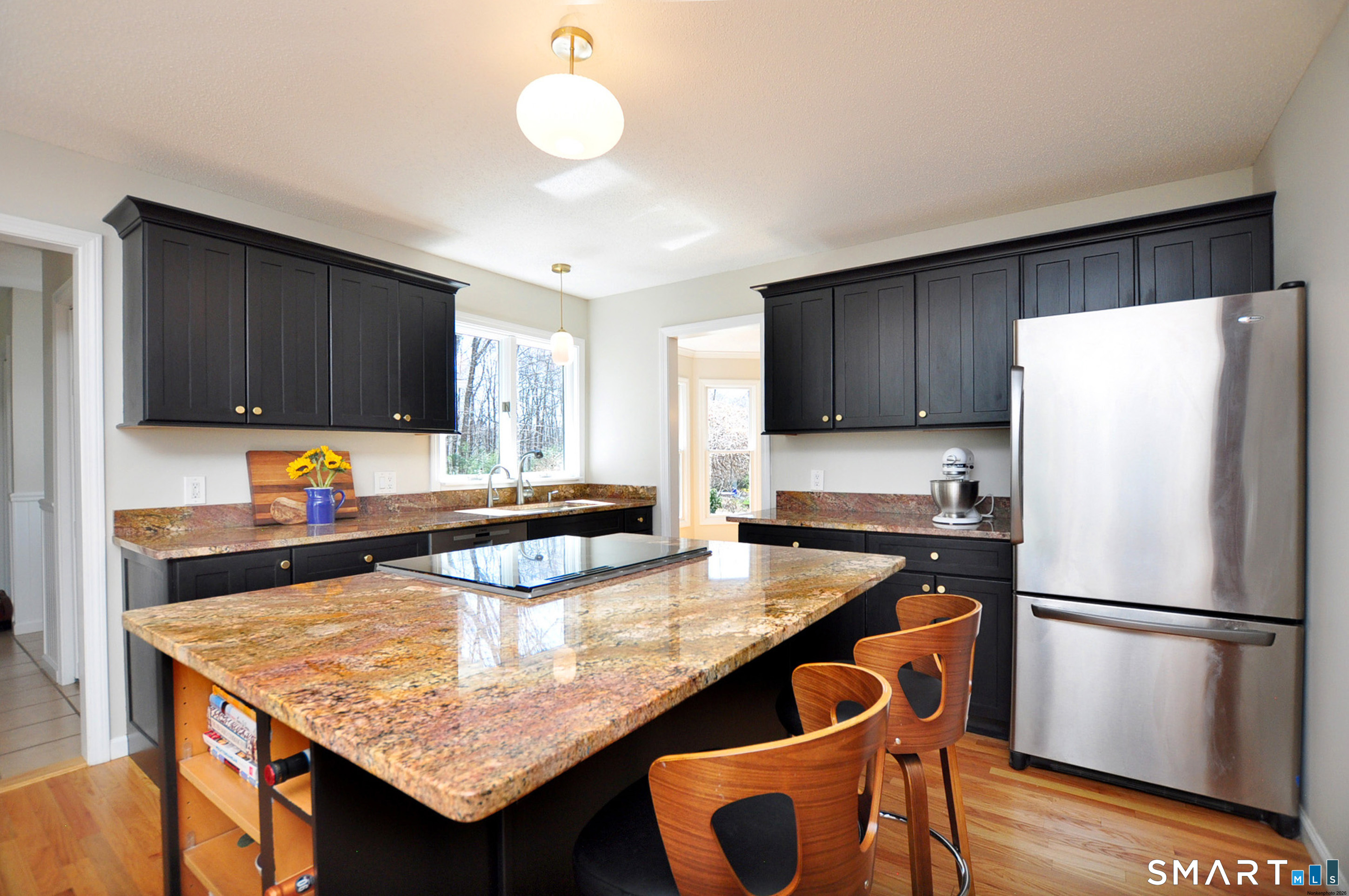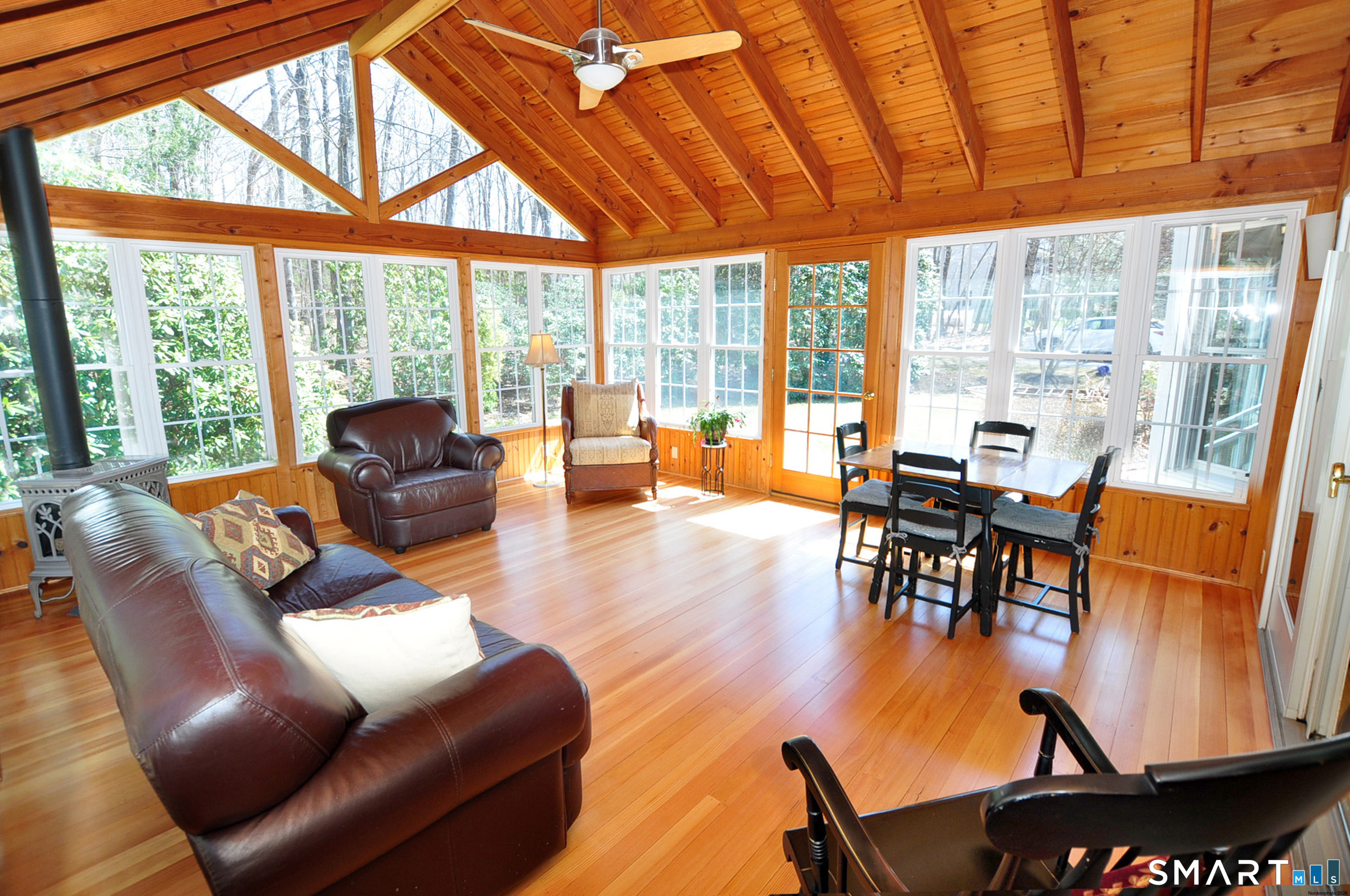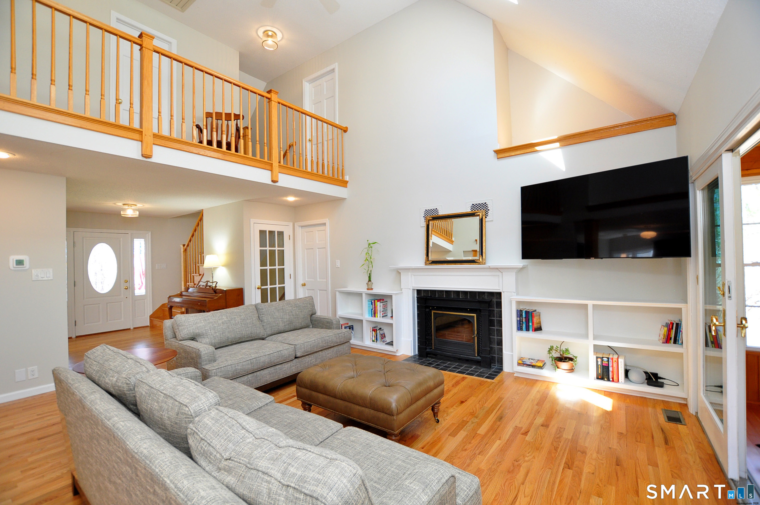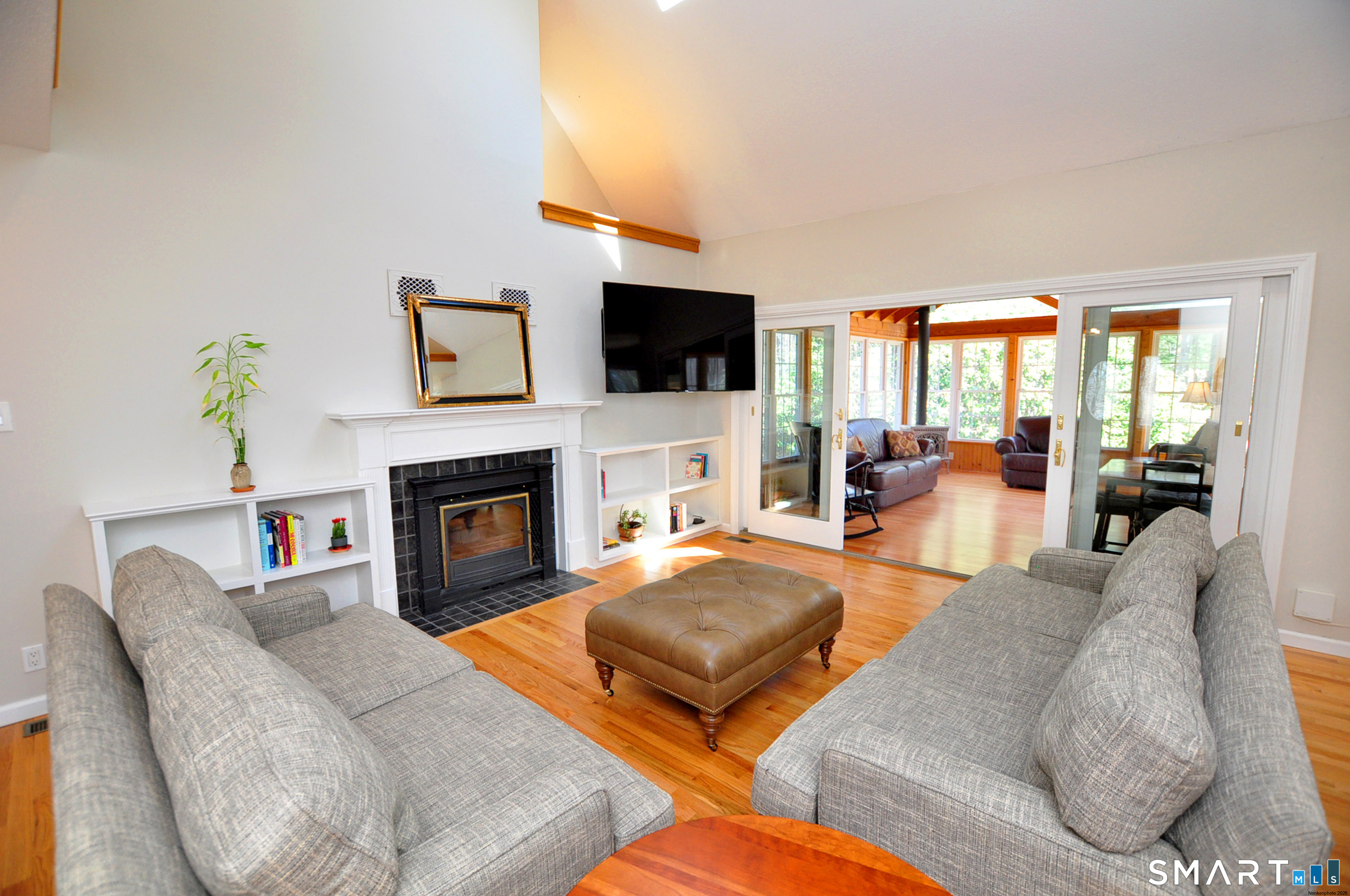 Nestled in a sought-after Canton neighborhood, this beautifully maintained oversized Cape offers over 3,400 square feet of living space, including a finished lower level. Thoughtful care & attention are evident throughout, complemented by wonderful curb appeal & a welcoming setting set back from the road. A charming walkway leads to the front door & covered porch, inviting you into this warm & spacious home. Inside, the open floor plan is ideal for both everyday living & entertaining. The first-floor primary suite features hardwood flooring, a walk-in closet, & a full bath with shower & whirlpool tub. The impressive great room showcases gleaming hardwood floors, vaulted ceilings, skylights, built-ins, & a fireplace, with atrium slider doors opening to an inviting sunroom with cathedral ceiling, cherry hardwood floors, & a propane stove. The eat-in granite kitchen offers abundant cabinetry with pull-outs, a center island, & stainless steel appliances, & flows seamlessly into the large dining room with crown molding & hardwood floors. A mudroom, laundry area, & half bath add convenience, while stairs off the mudroom lead to a spacious bonus room perfect for a home office, guest space, or possible fourth bedroom. Upstairs you'll find two generously sized bedrooms with refinished hardwood floors, walk-in closets, a loft area, & a beautifully remodeled full bath with granite and double sinks. The finished lower level provides additional flexible living space along with ample